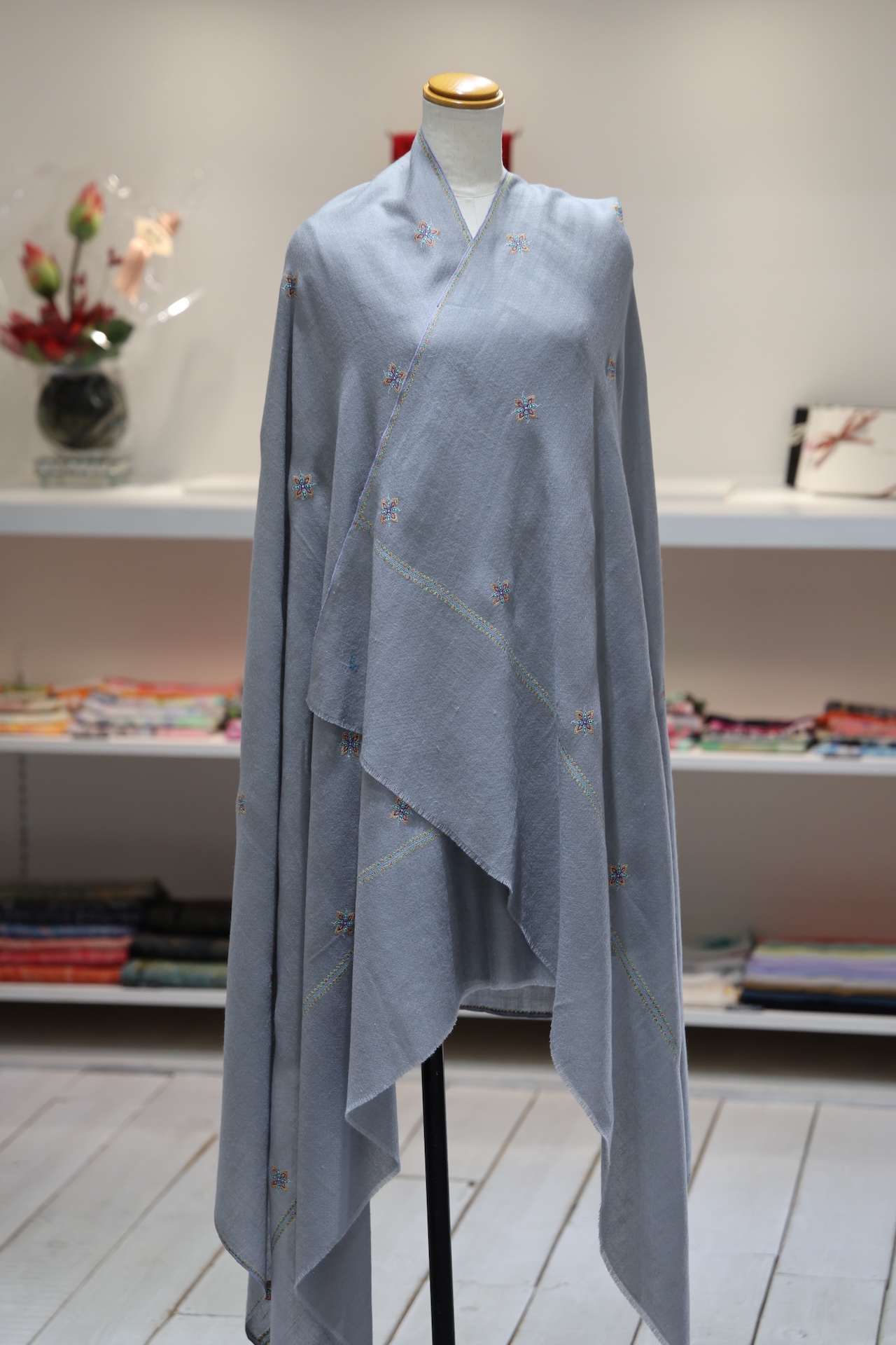 また今回と同様に手仕事のカシミヤ手刺繍ストールや手刺繍ショールもすでにご購入いただいたこともあります。