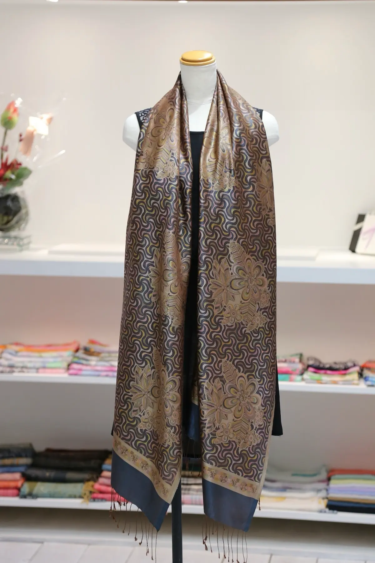 珍しく冒頭から早速写真を載せましたが、こちらは新作のシルクジャカード織ストールです。