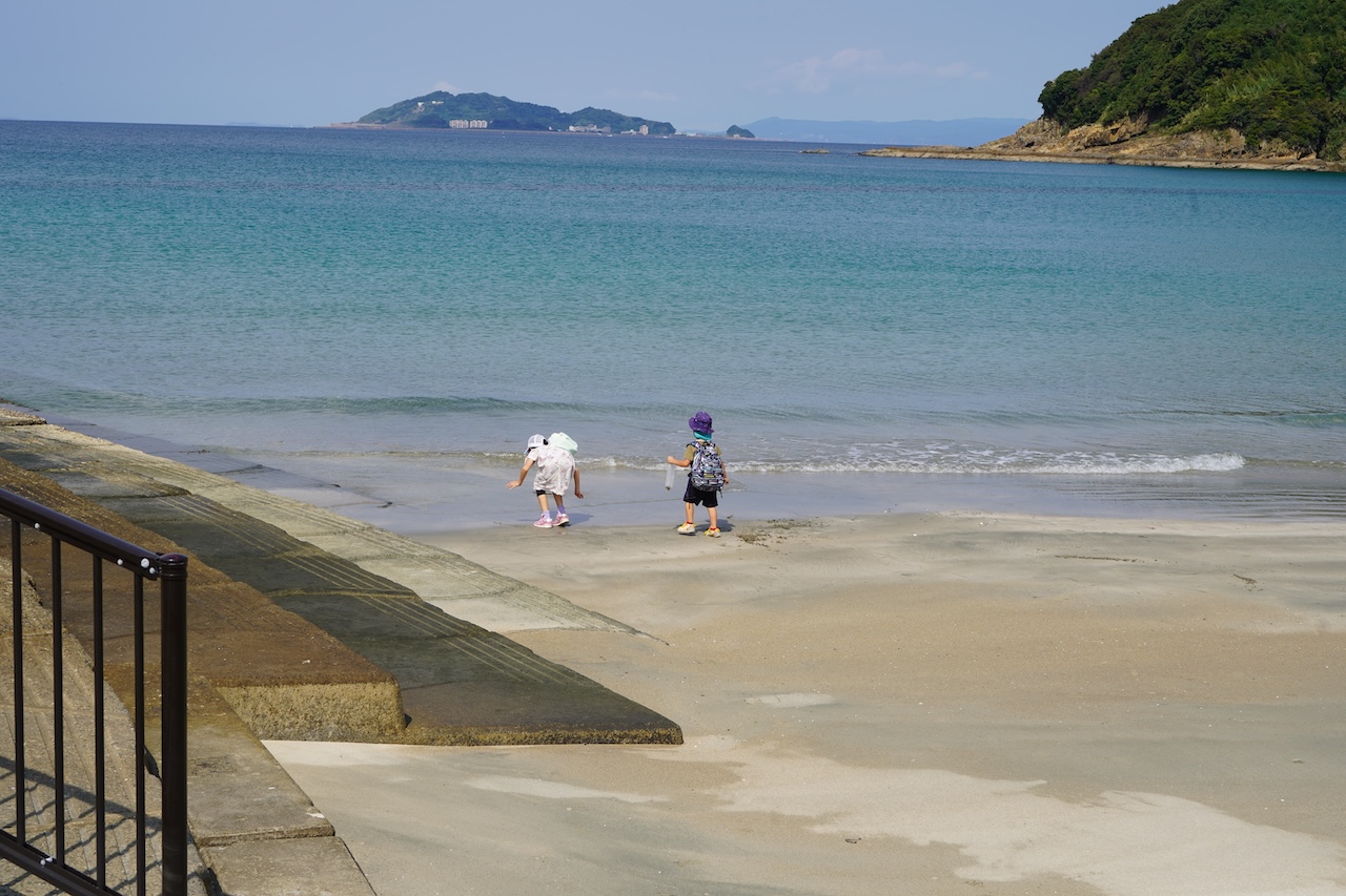 このブログは資料館から移動し、長崎の南に位置する伊王島の海岸から書いているのですが、子供たちはここにきてからずっと海岸で貝探しに夢中になっています。