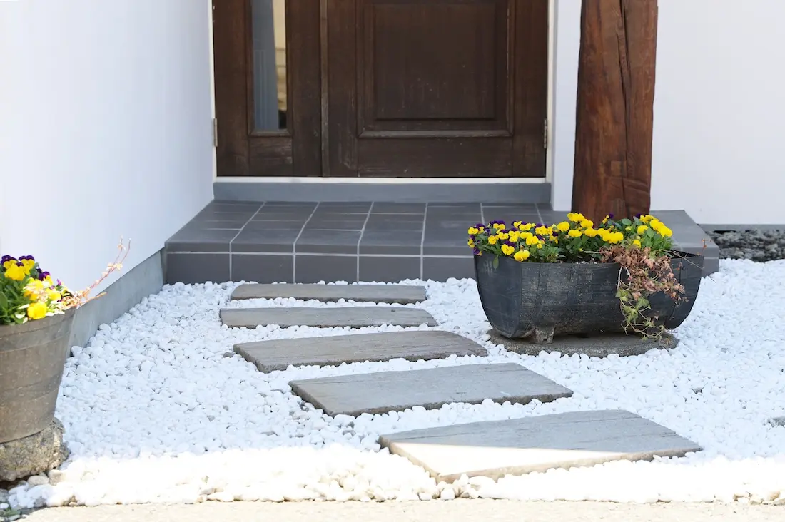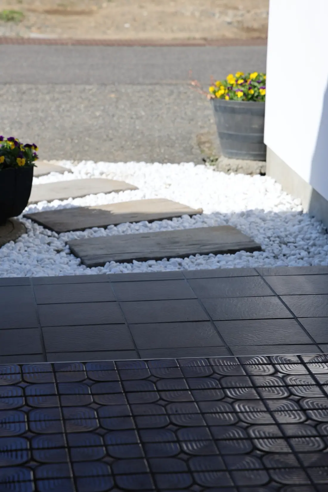 また、雨が降った時や冬場の雪が降った時に滑ってしまうものだと安全面で不安が残るのでここも確実に滑りにくいタイプの石がよかったんです。