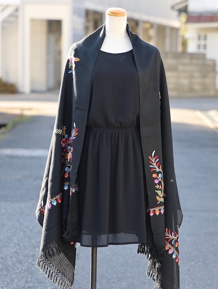 そして、この写真だけでは伝わらないかもしれませんが、このストールはこれだけの手刺繍が施されているのにも関わらず、物凄く軽い質感に仕上がっています。