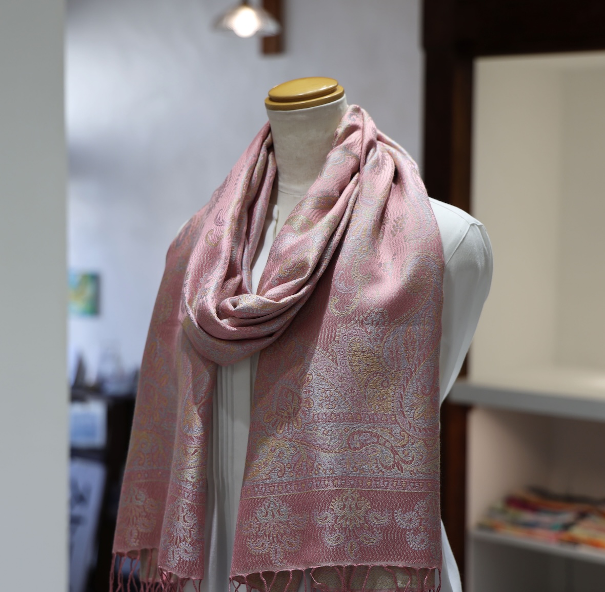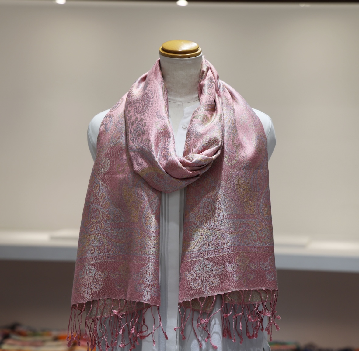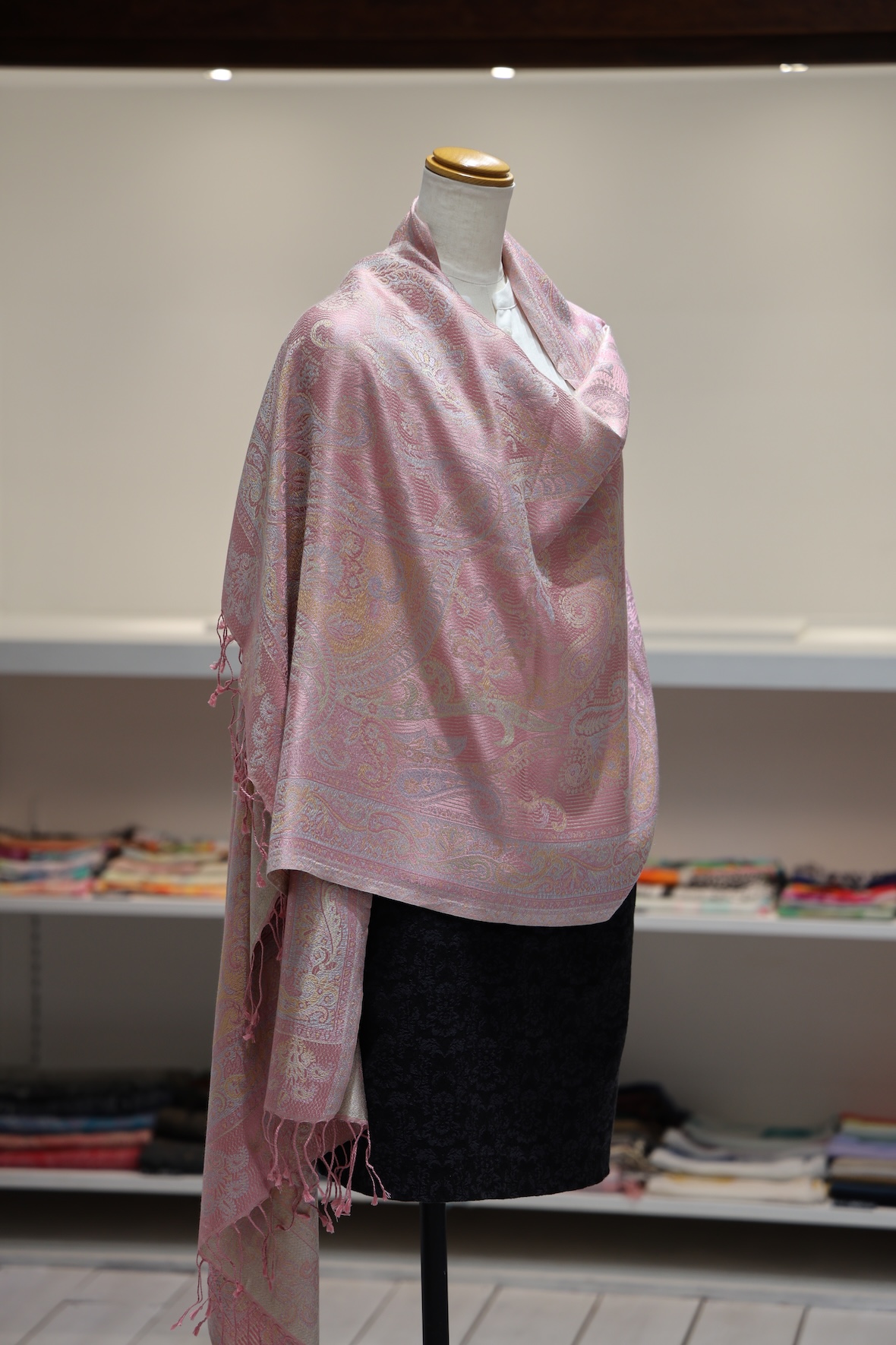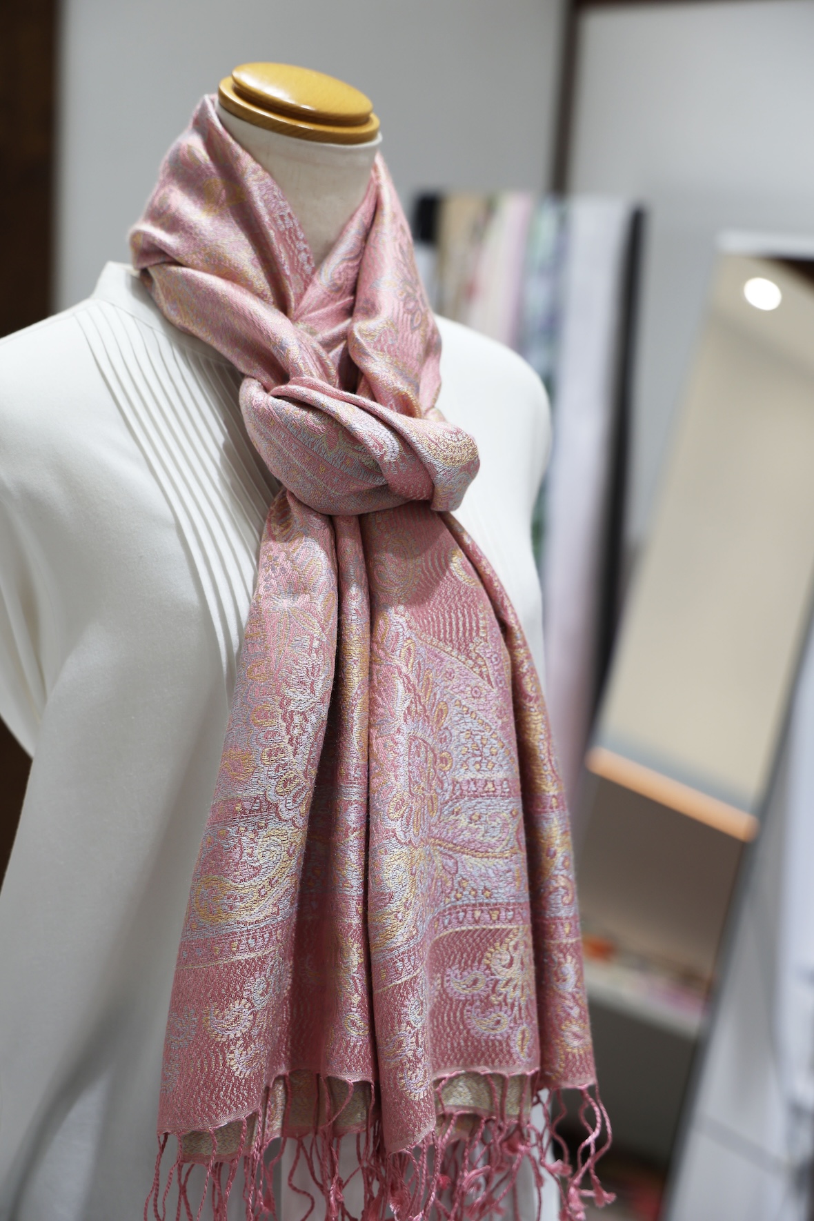 特に今日ご紹介するストールは使われている色糸のコンビネーションが美しく、シルクの特性をより引き出してくれるような色使いに仕上がっています。