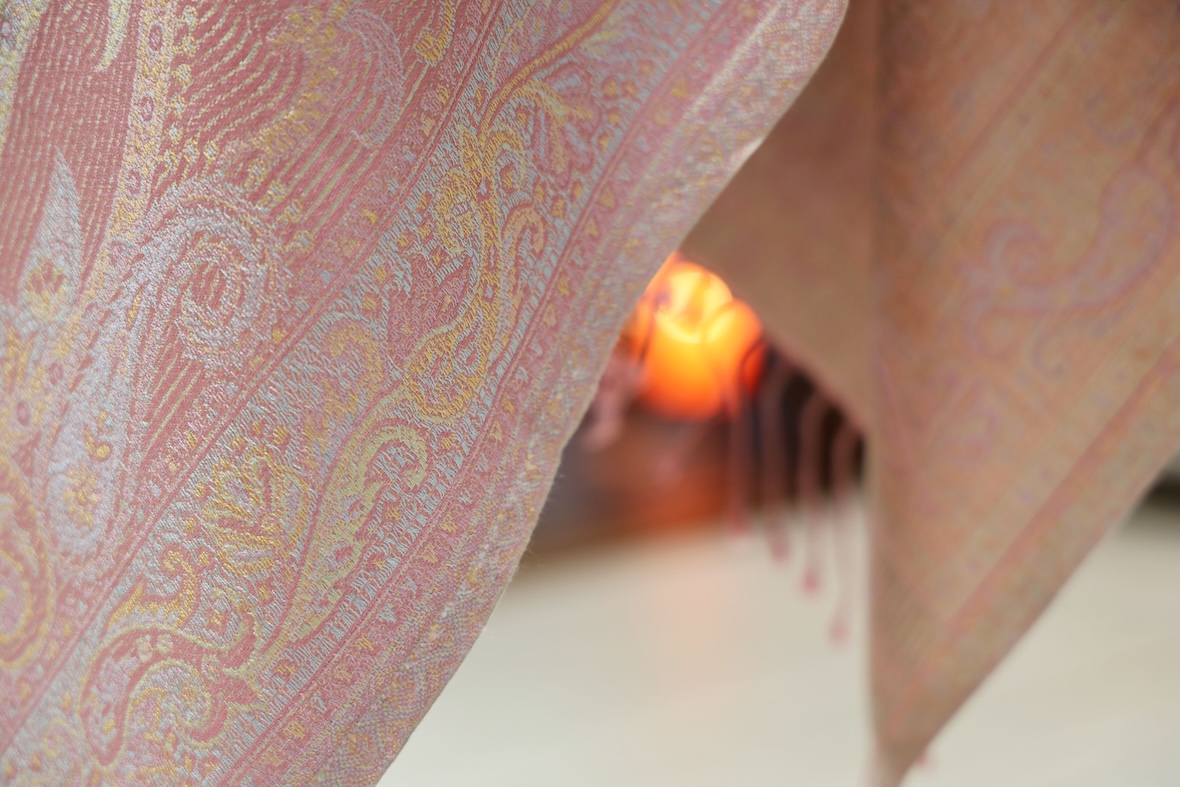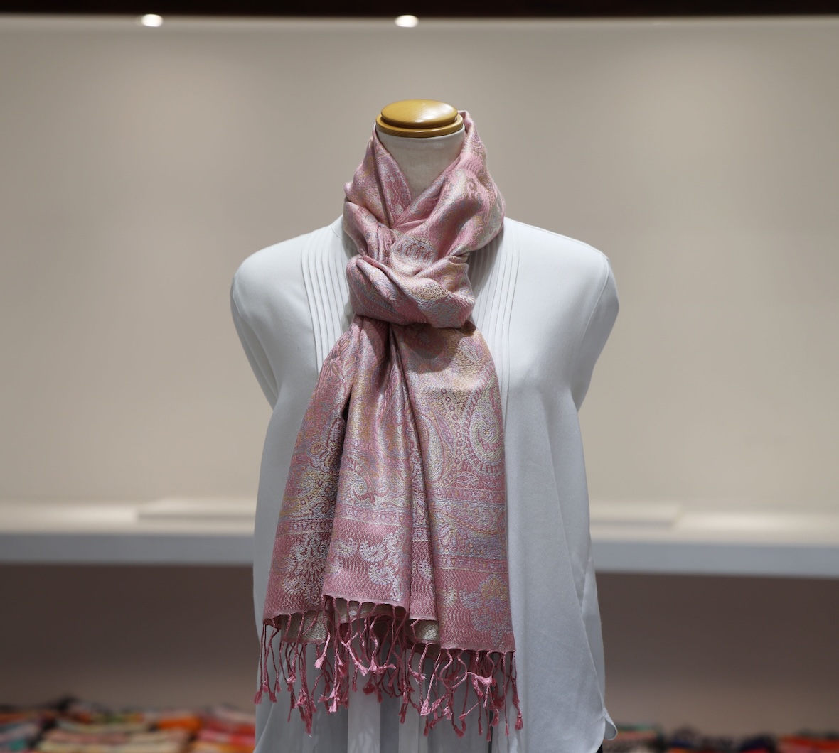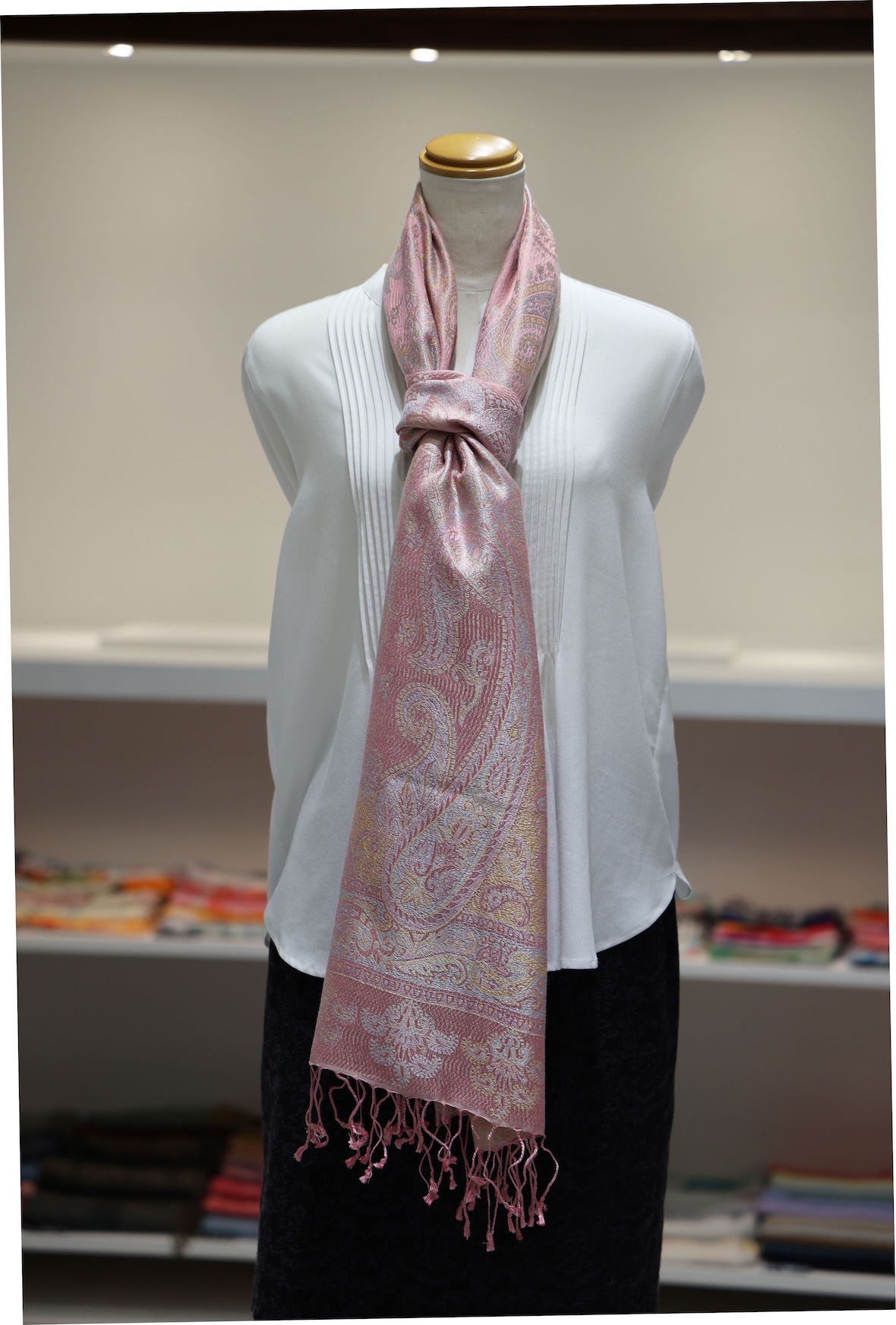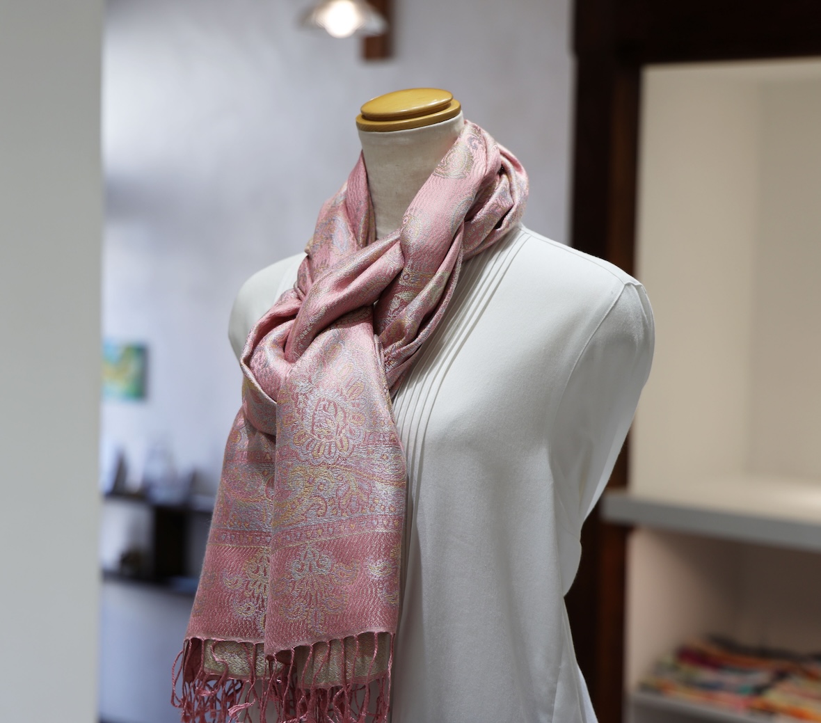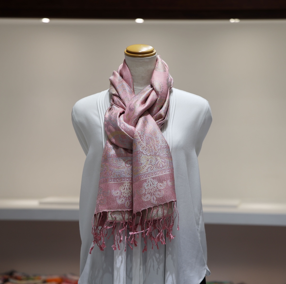 特に今日ご紹介するストールは使われている色糸のコンビネーションが美しく、シルクの特性をより引き出してくれるような色使いに仕上がっています。