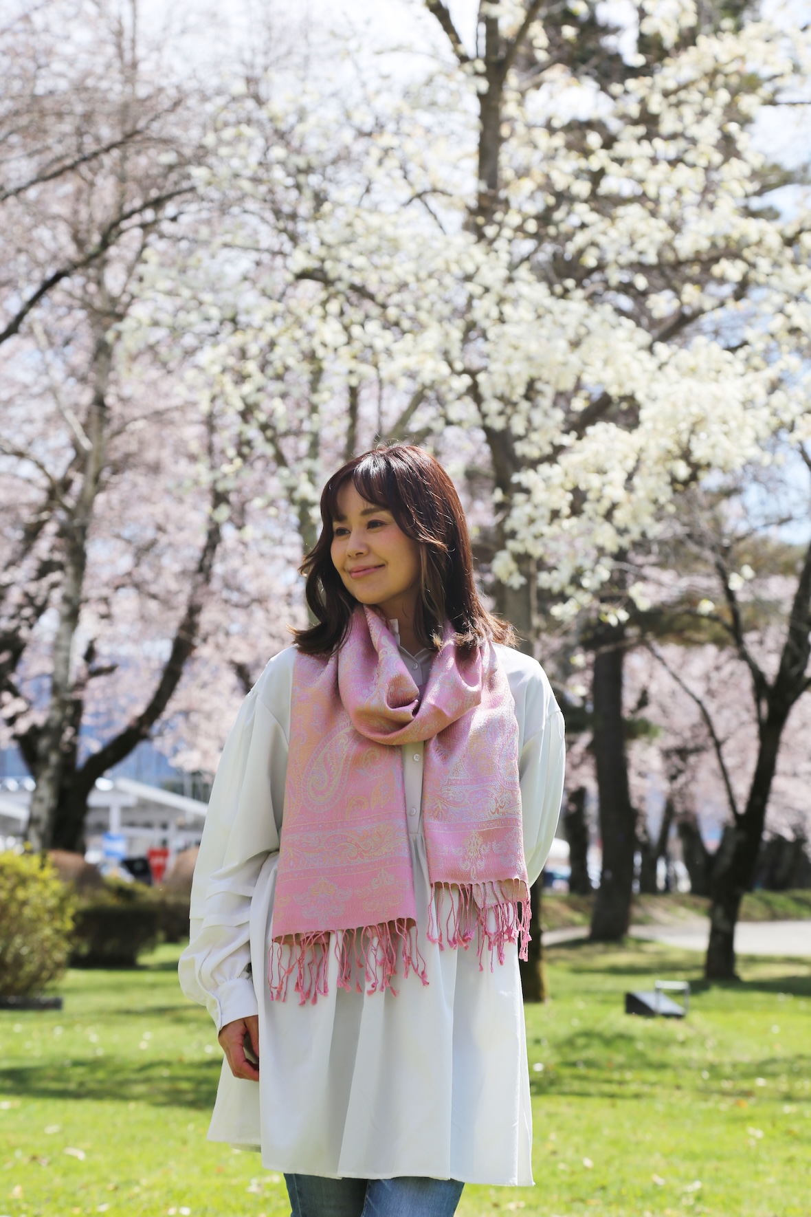 これからの春めく季節、ぜひこのストールと一緒に足取り軽く、色々な場所に出かけていただきたい!
