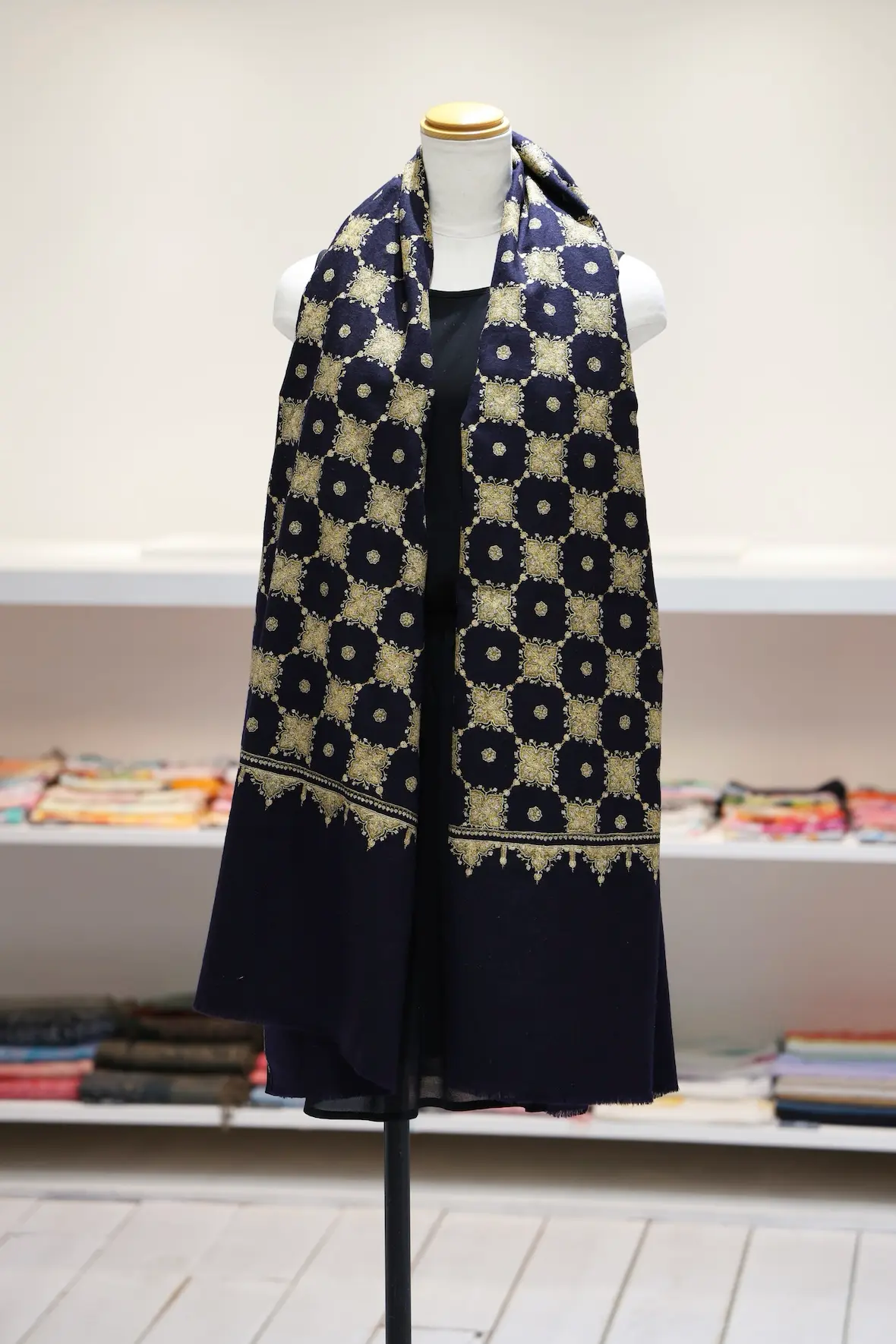 去年3枚入手できたうちの2枚はすでにもうお客さんの元に嫁入りしてしまったのですが、まだこのショールだけは手元に残っていました。