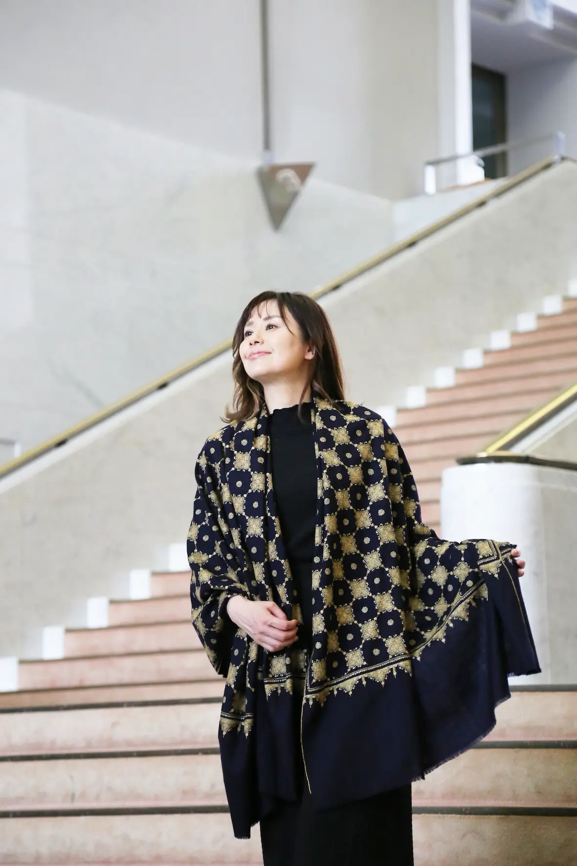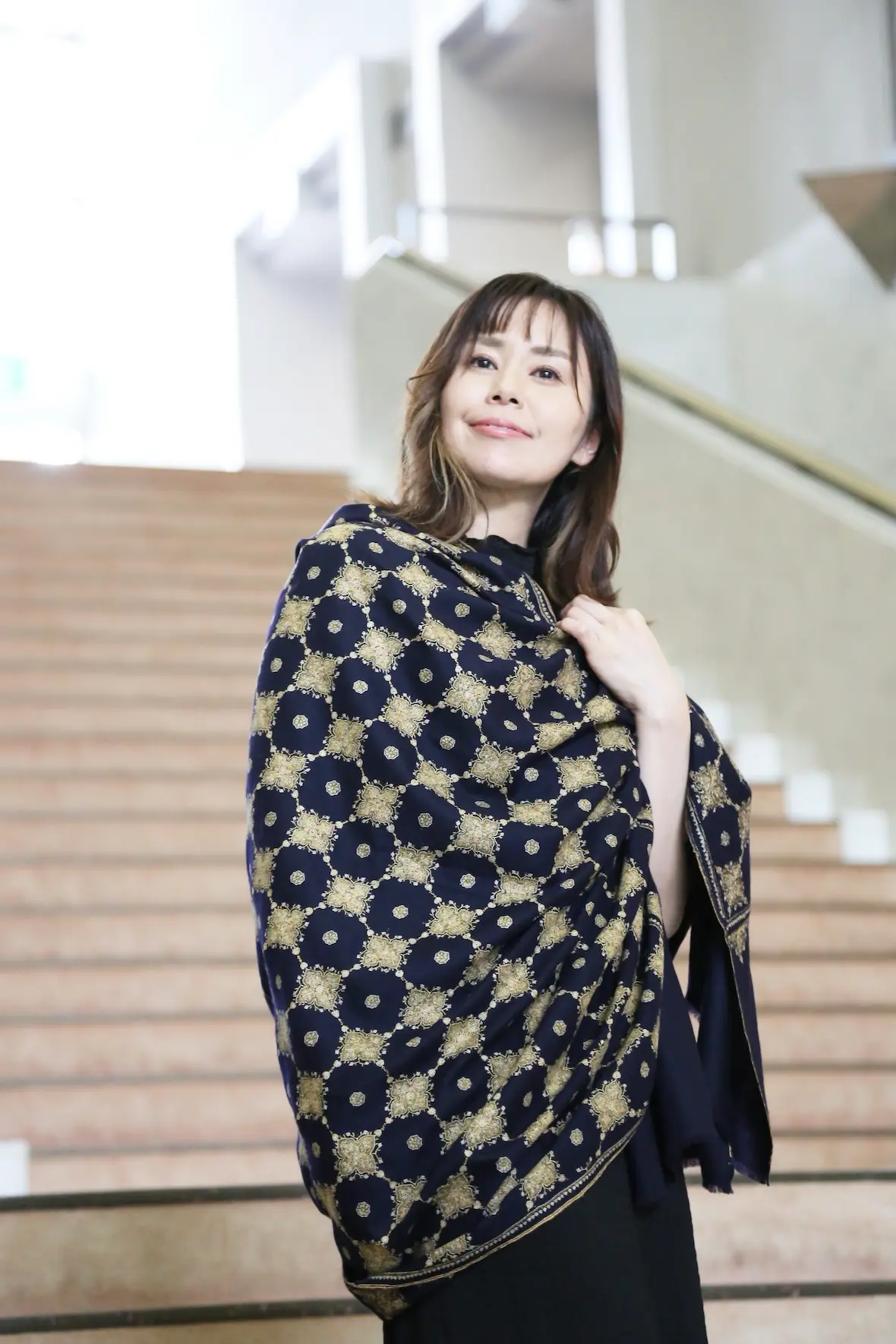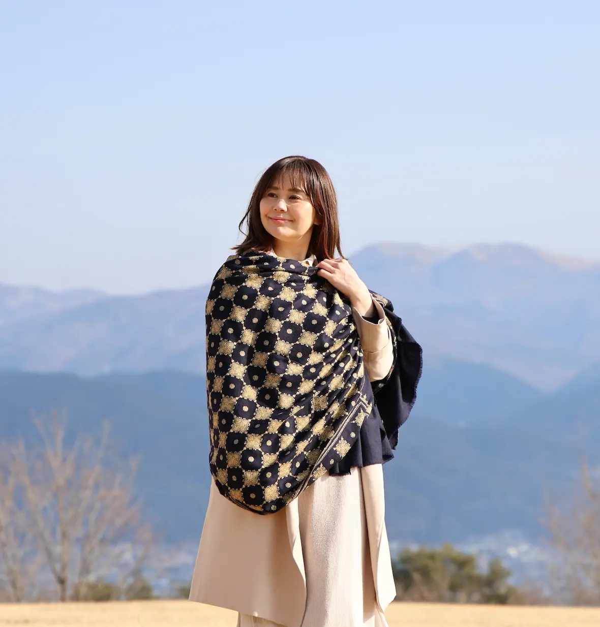 ストールはもちろんですが、ショールサイズは面積も大きいので全体の印象を本当に大きく変えてくれます。