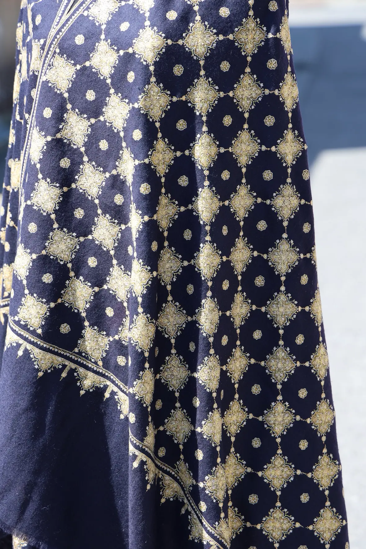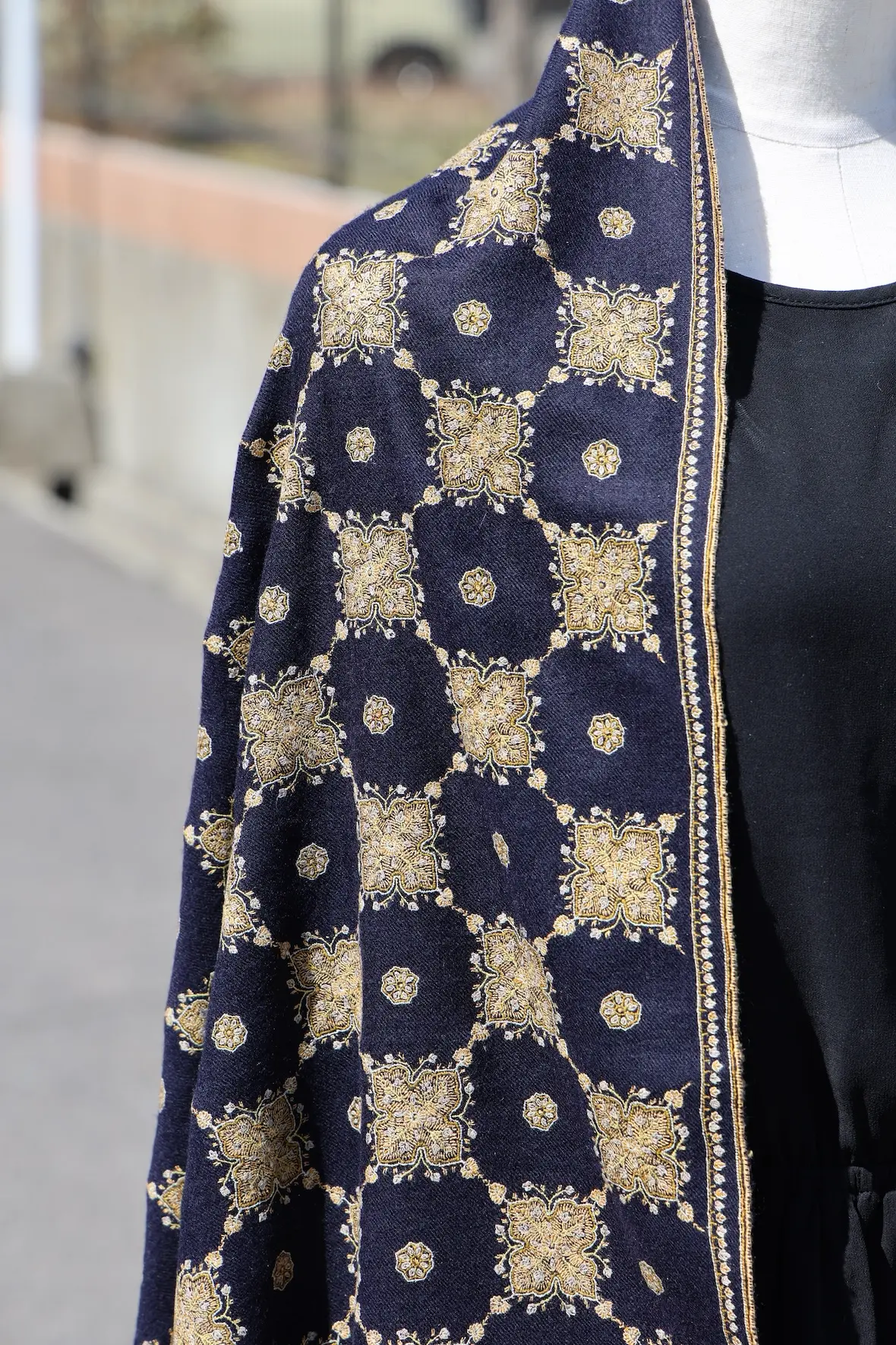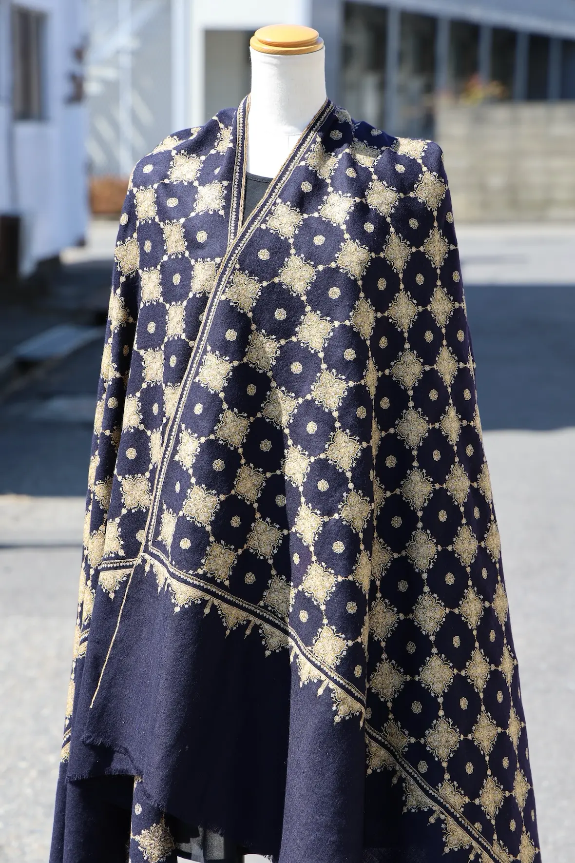 そして、野外ではさらにこのショールの美しさとディティールの緻密さが強調されます。
