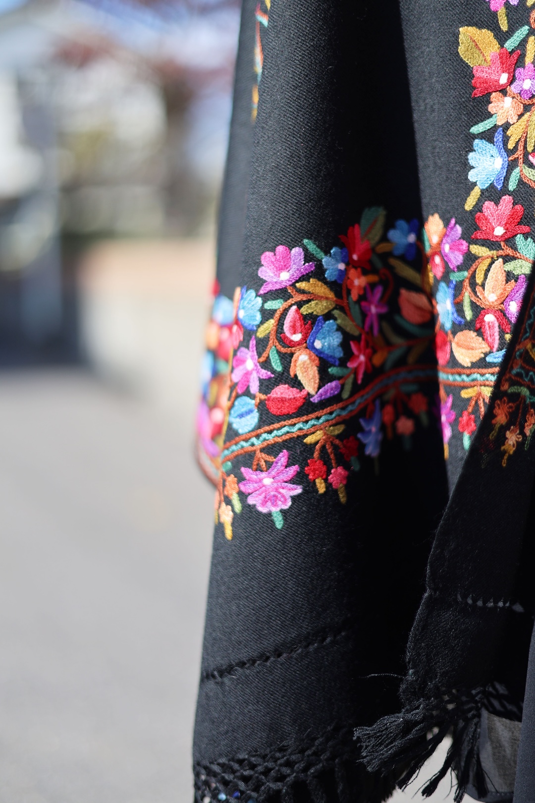 その中でも代表的な素材の一つがウールですが、最近はそのウールストールの中でも特に人気のあるアーリ刺繍ストールを選んでいただくことも多くなっています。