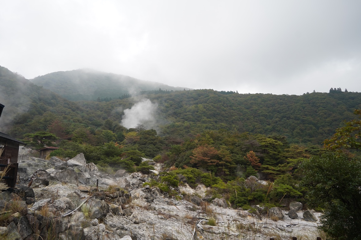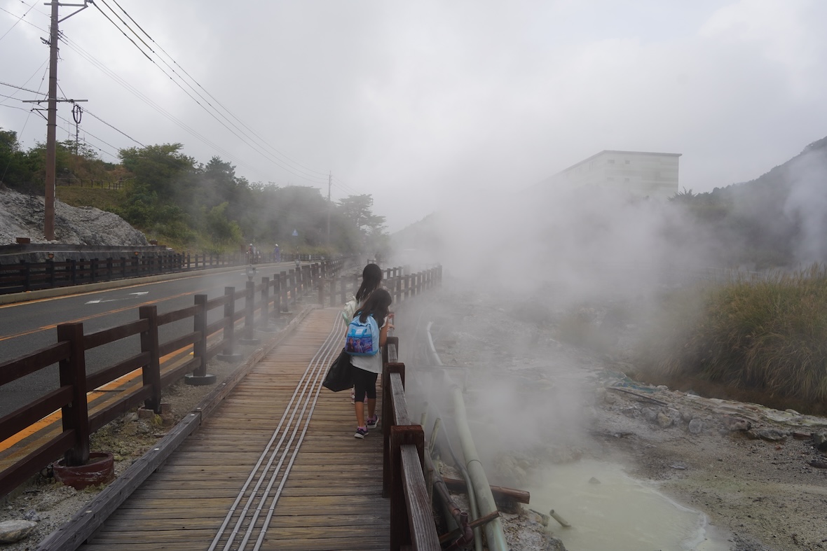場所によっては前が曇って見えないほど湯煙がもうもうと立っていて。