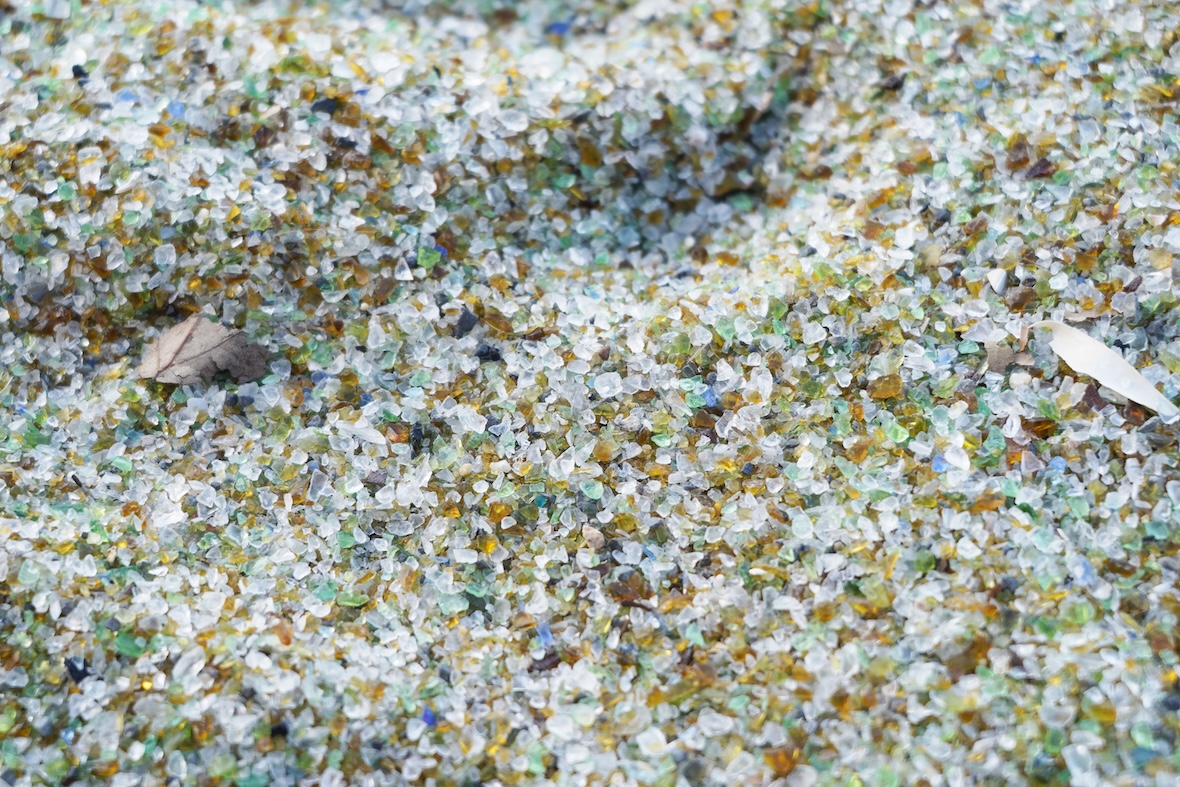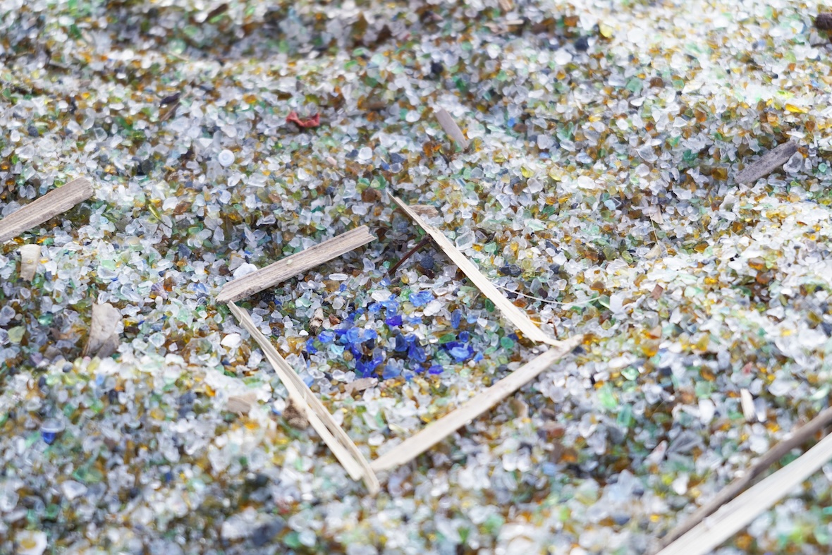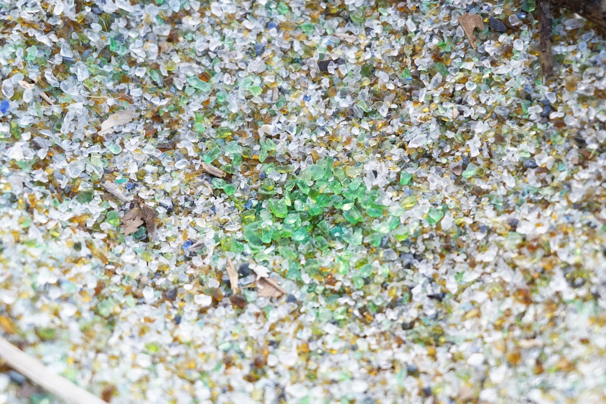 遠目から見ると普通の浜辺に見えますが、よくよく見ると色々な色のガラスでできています。