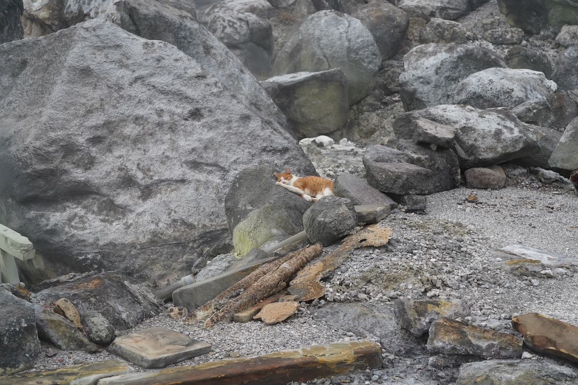 岩盤が暖かいらしく、至る所に昼寝をする猫ちゃんがいました 笑