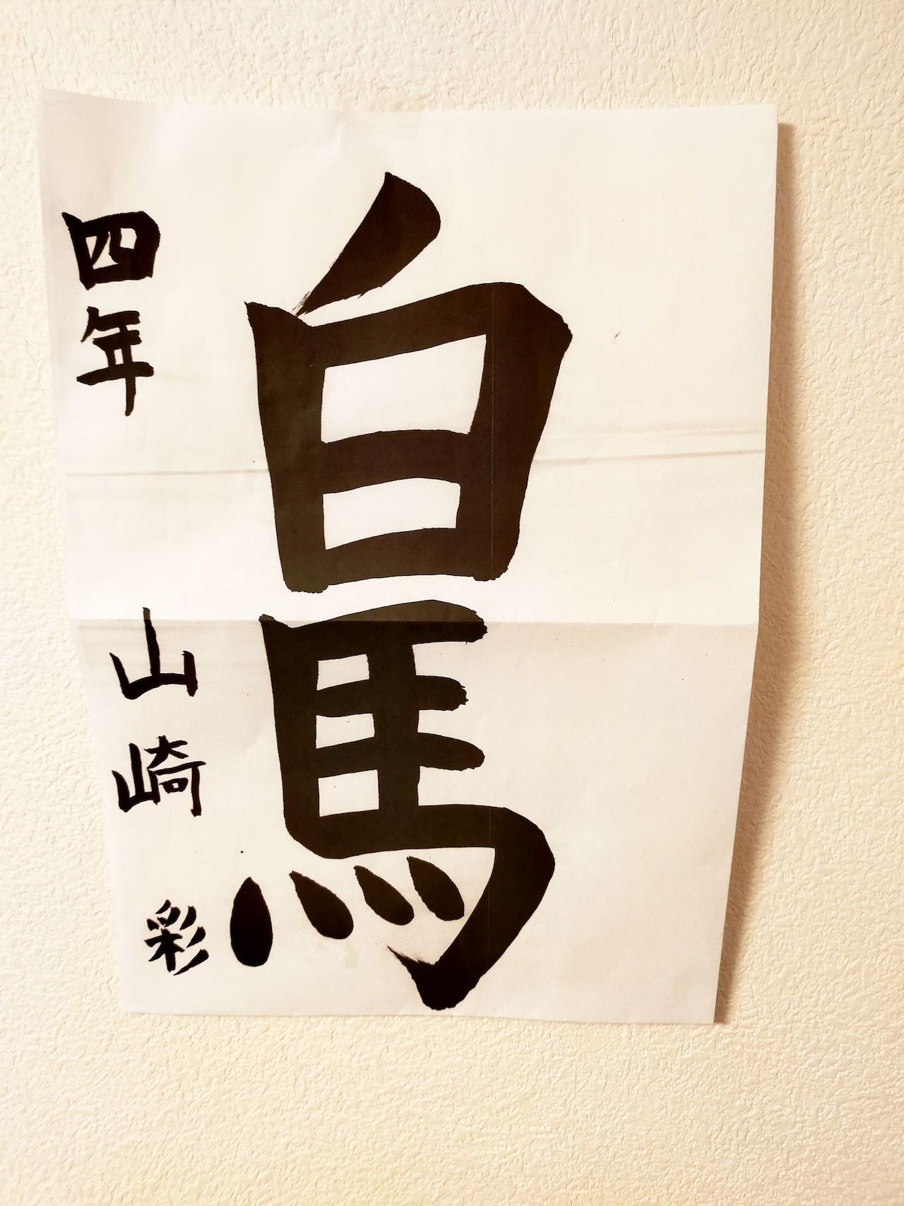 (ちなみに、これは先日、大きな筆で次女が書いたもの)