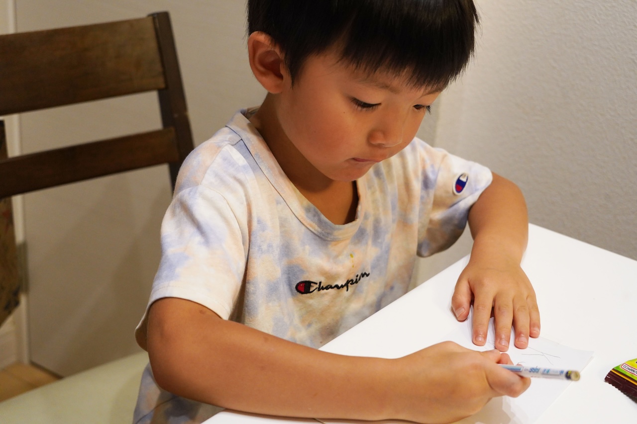それぞれお礼の手紙も書いていましたが、息子はまだ字がしっかりと書けないので下書きをしてあげて上からなぞっていました。