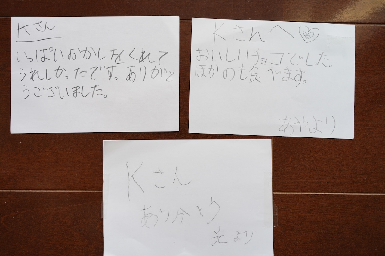 子供達に関してはそれぞれ名前も書いてくださっていて、中身もそれぞれ違ったんです。