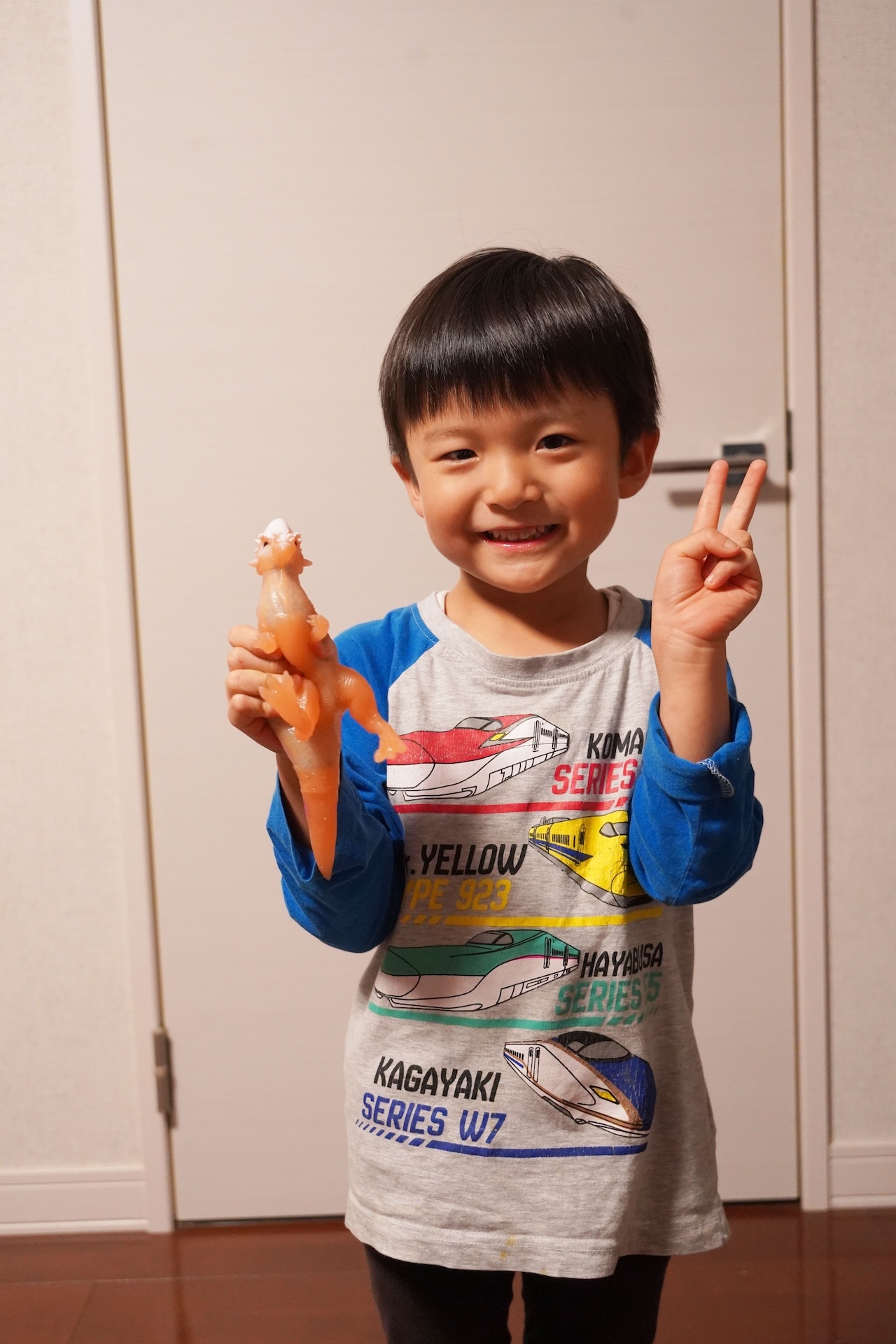 ちなみに、今長女と長男は恐竜に一番興味を持っていて、この恐竜のお菓子とノベルティーにものすごく喜んでいました。