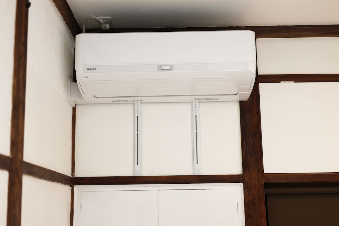 それならすぐにエアコンを新しくすればいいじゃん、という声が聞こえてきそうですが、実はこのエアコンについても設置に際して、色々と制約があったんです。
