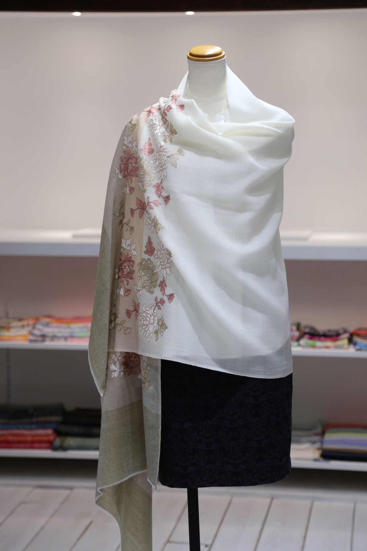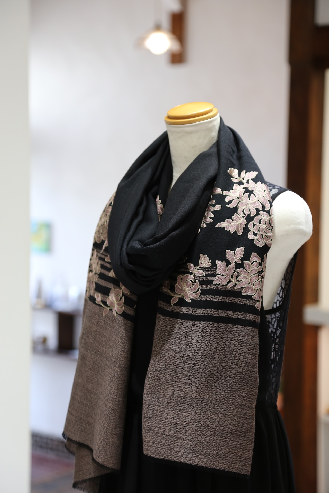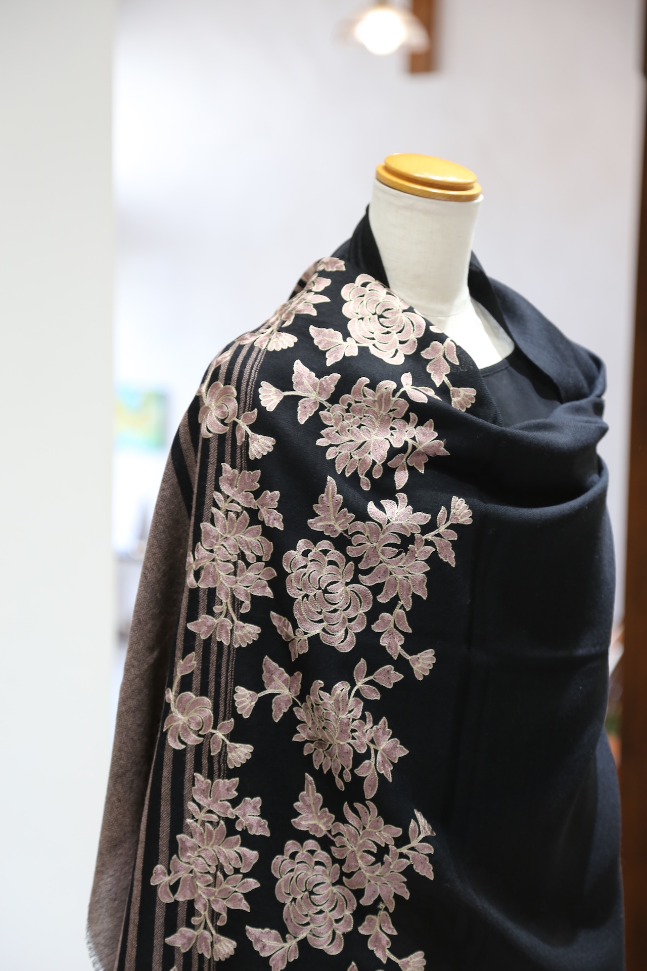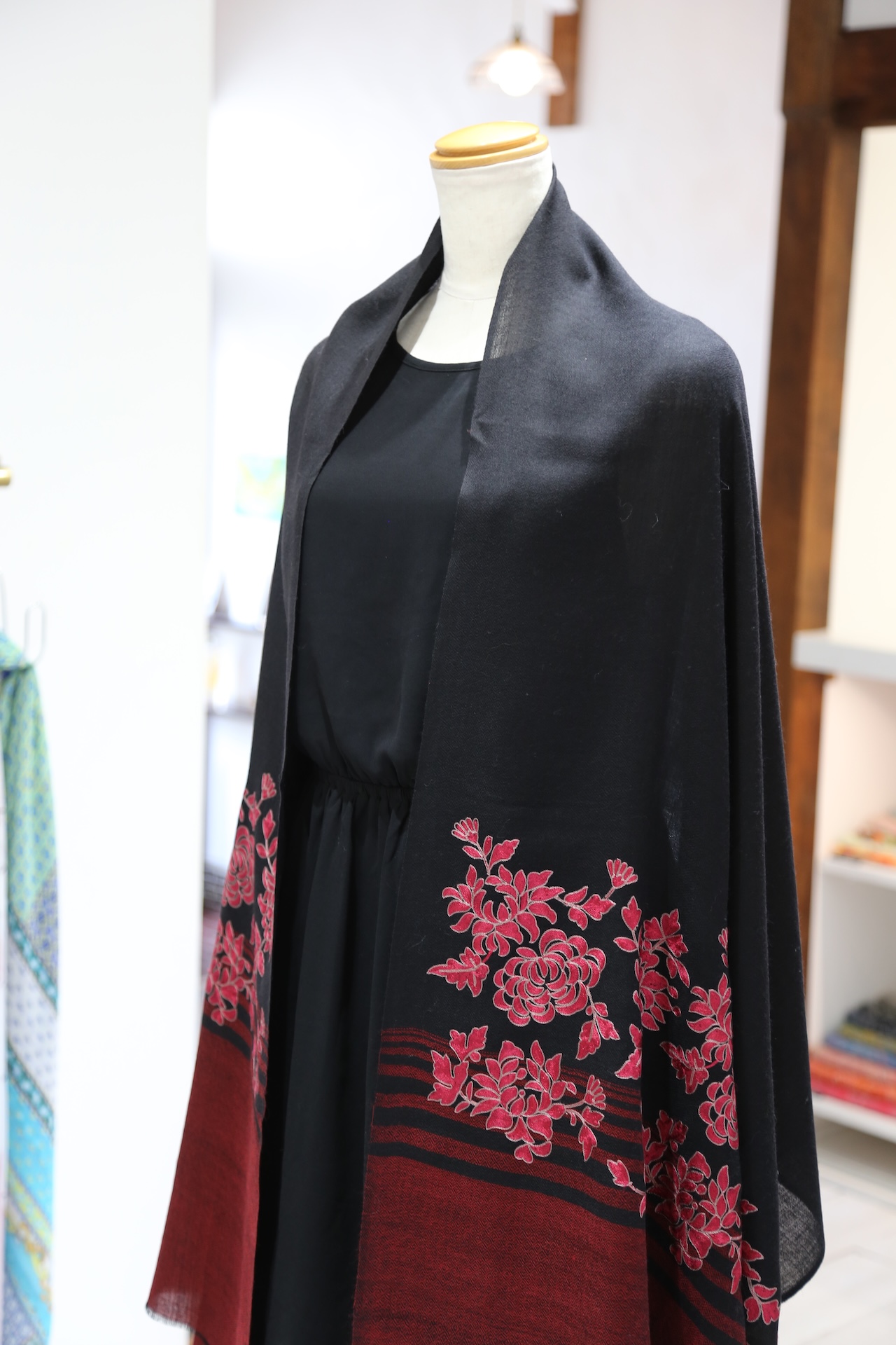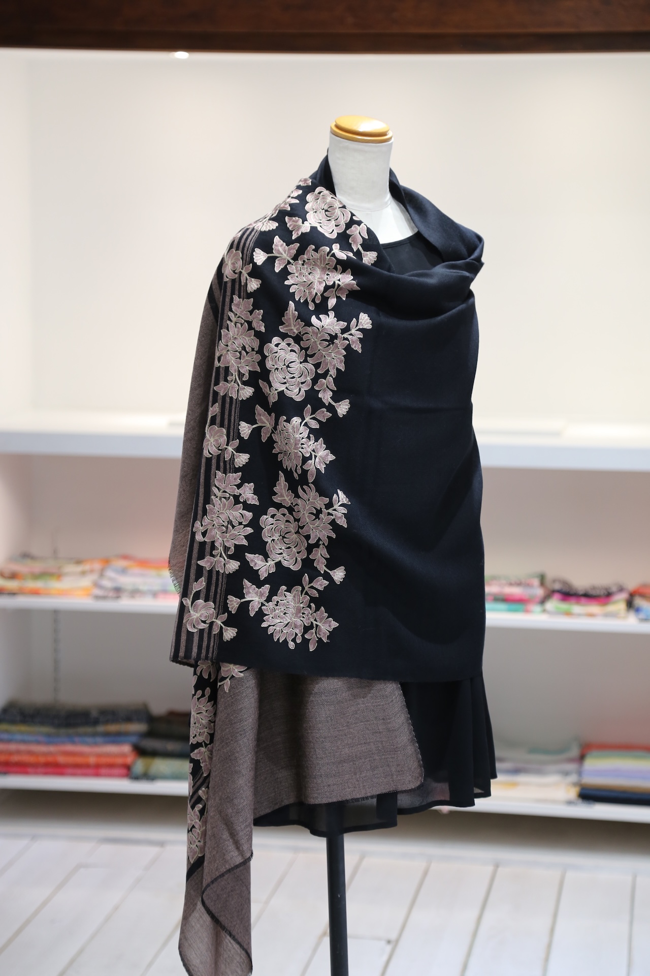 巻いても羽織っても、肩からかけても非常に見栄えますし、施されている刺繍の面積のバランスも良いのでとても扱いやすくなっています。