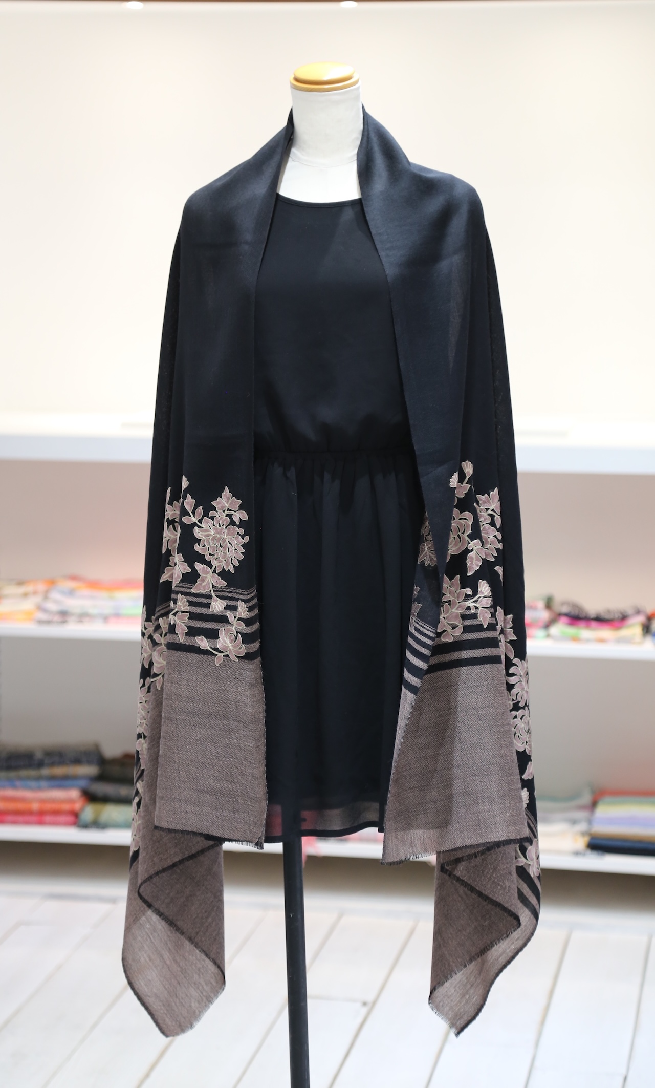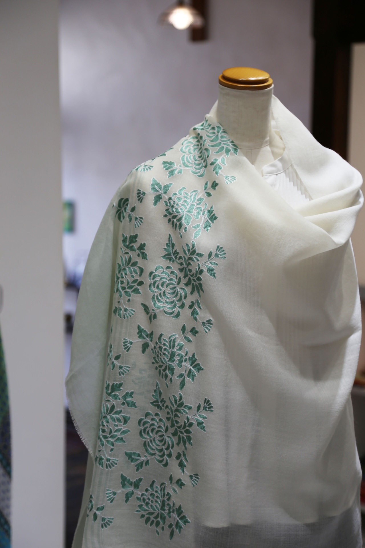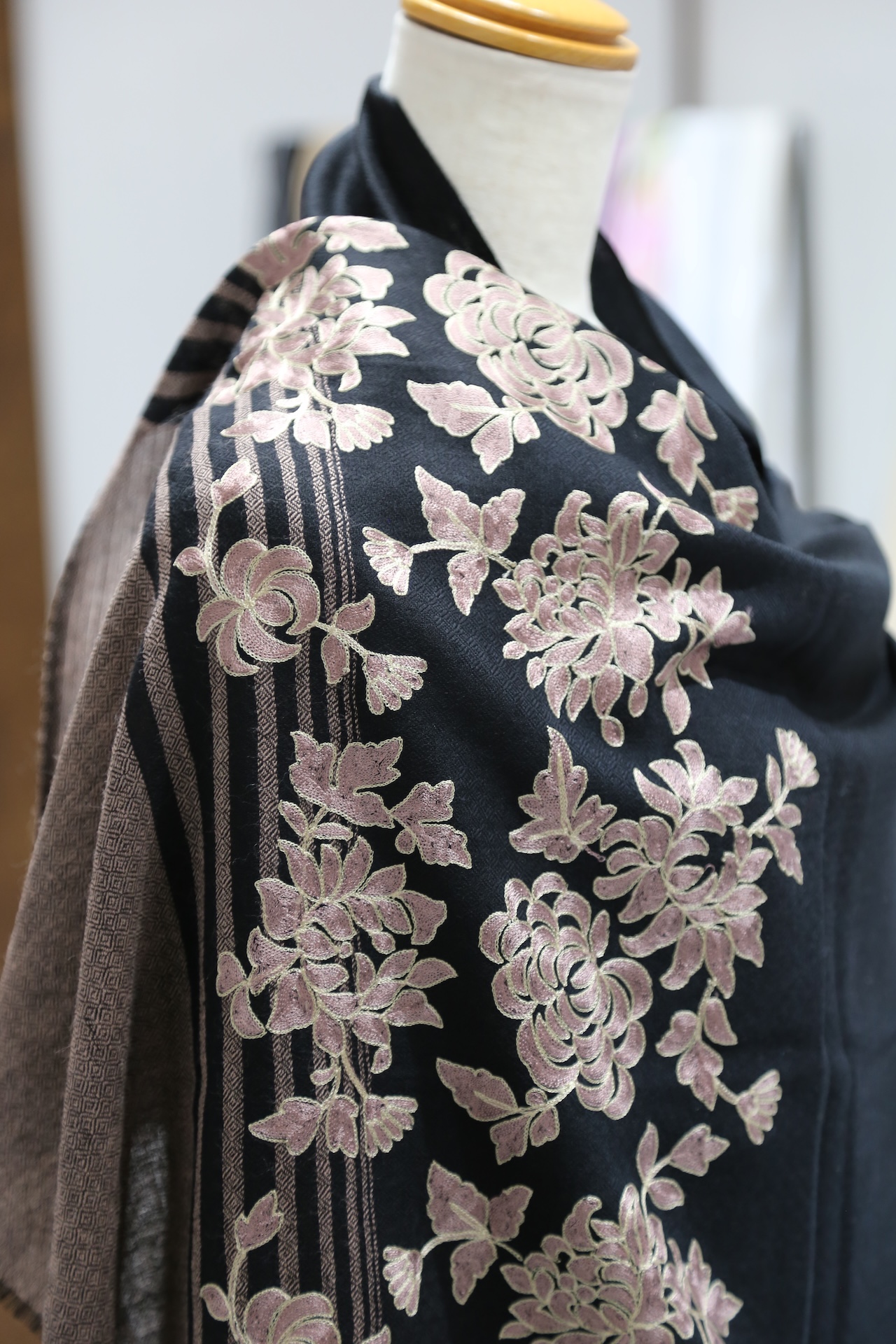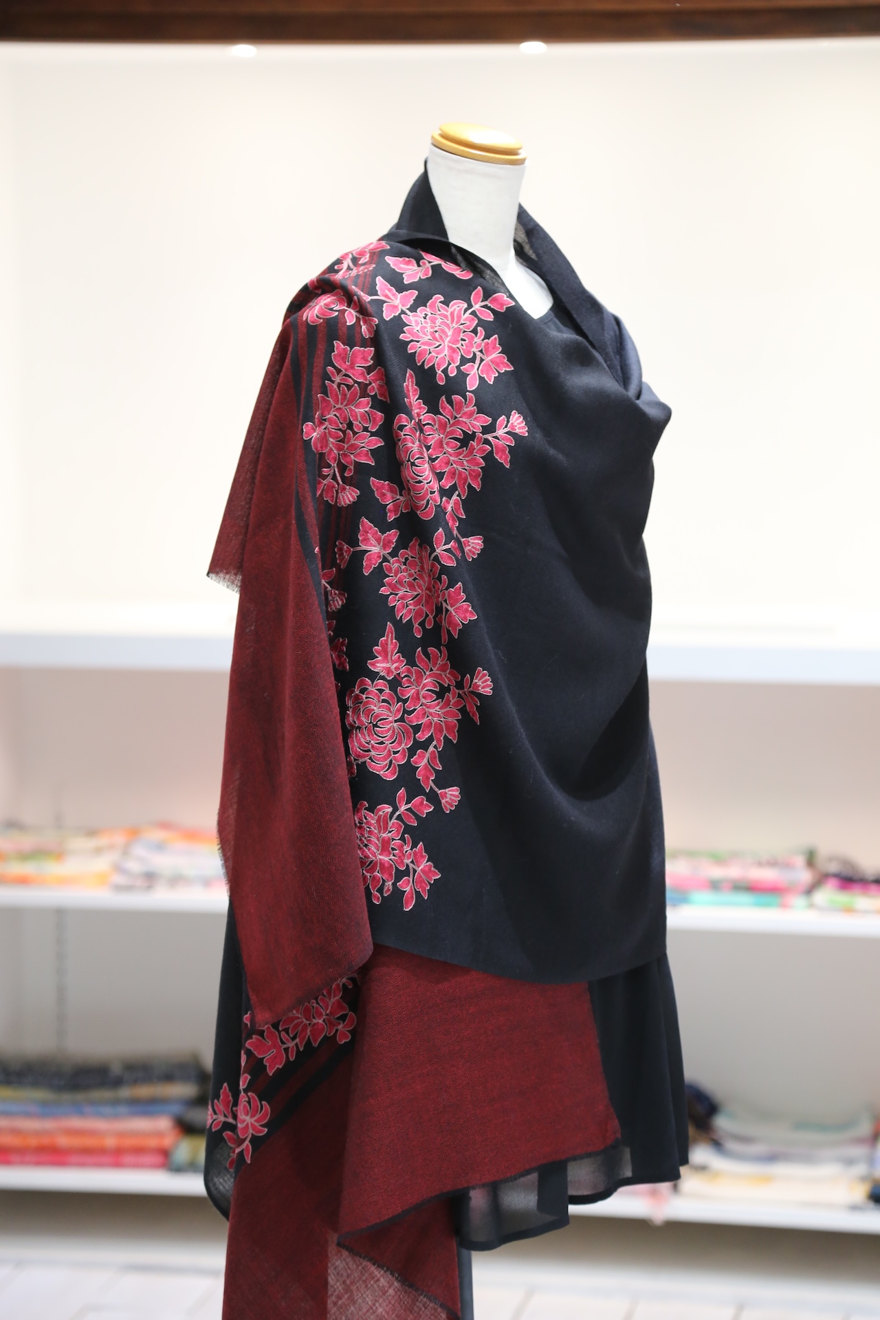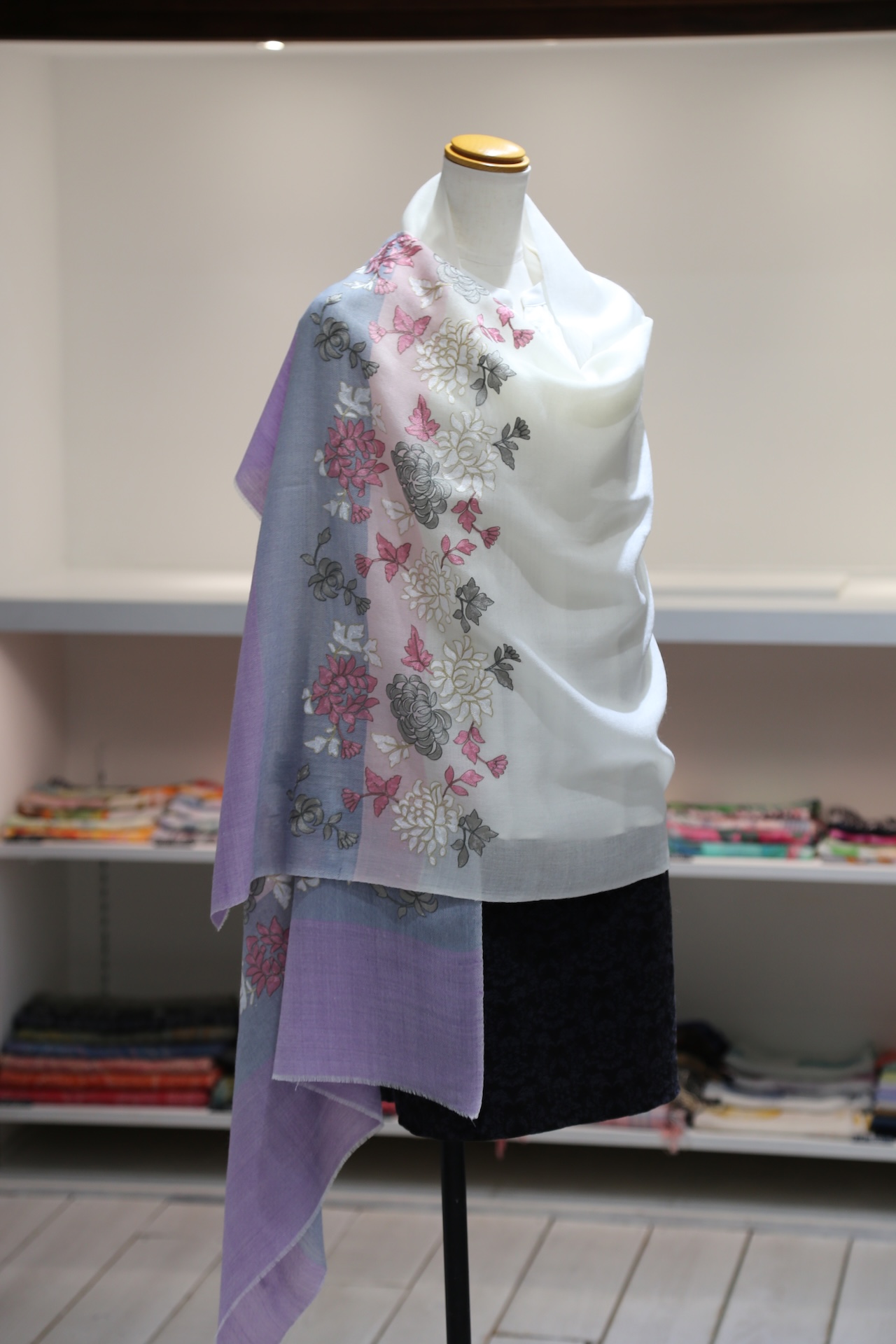 巻いても羽織っても、肩からかけても非常に見栄えますし、施されている刺繍の面積のバランスも良いのでとても扱いやすくなっています。