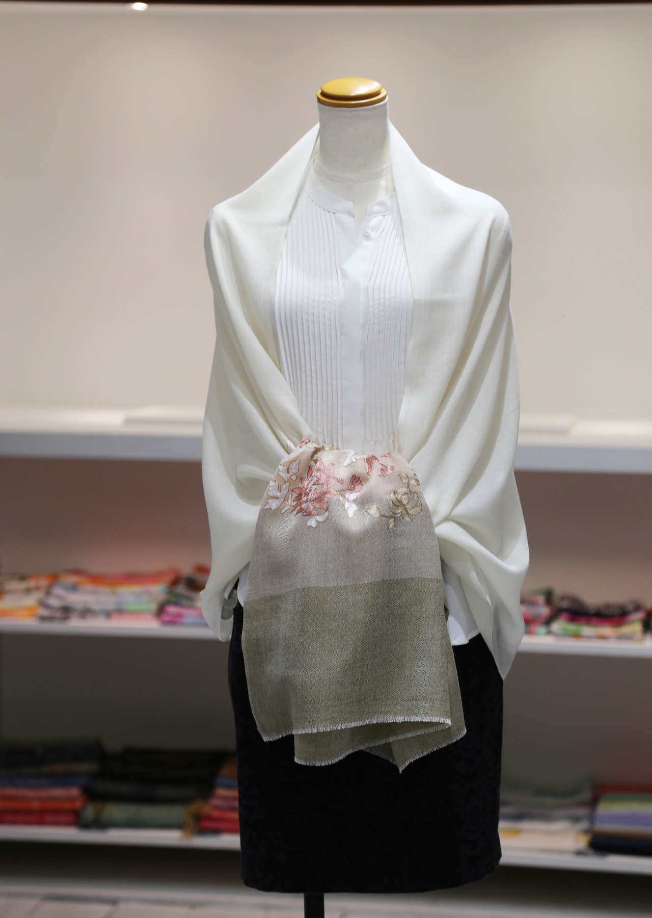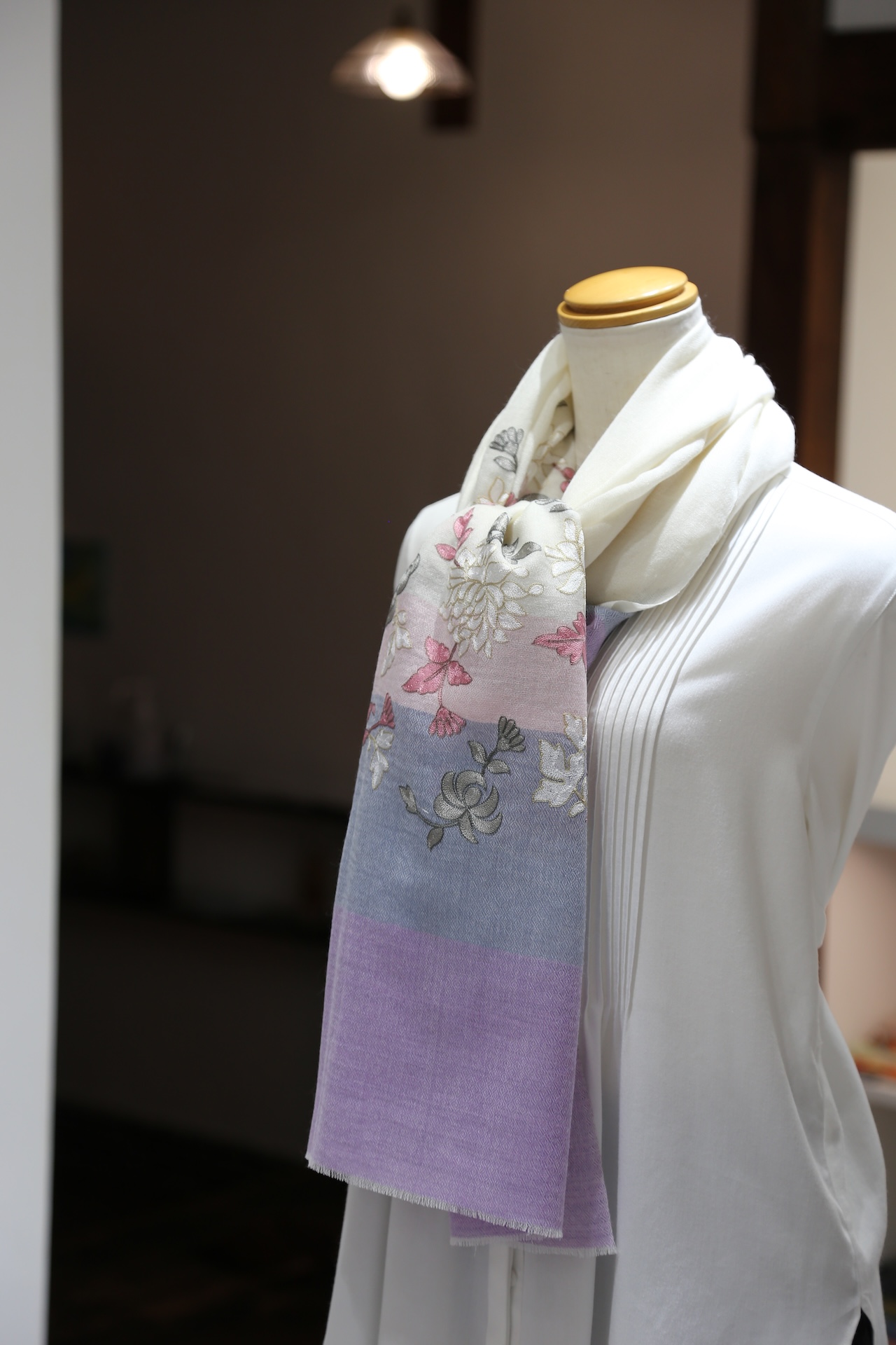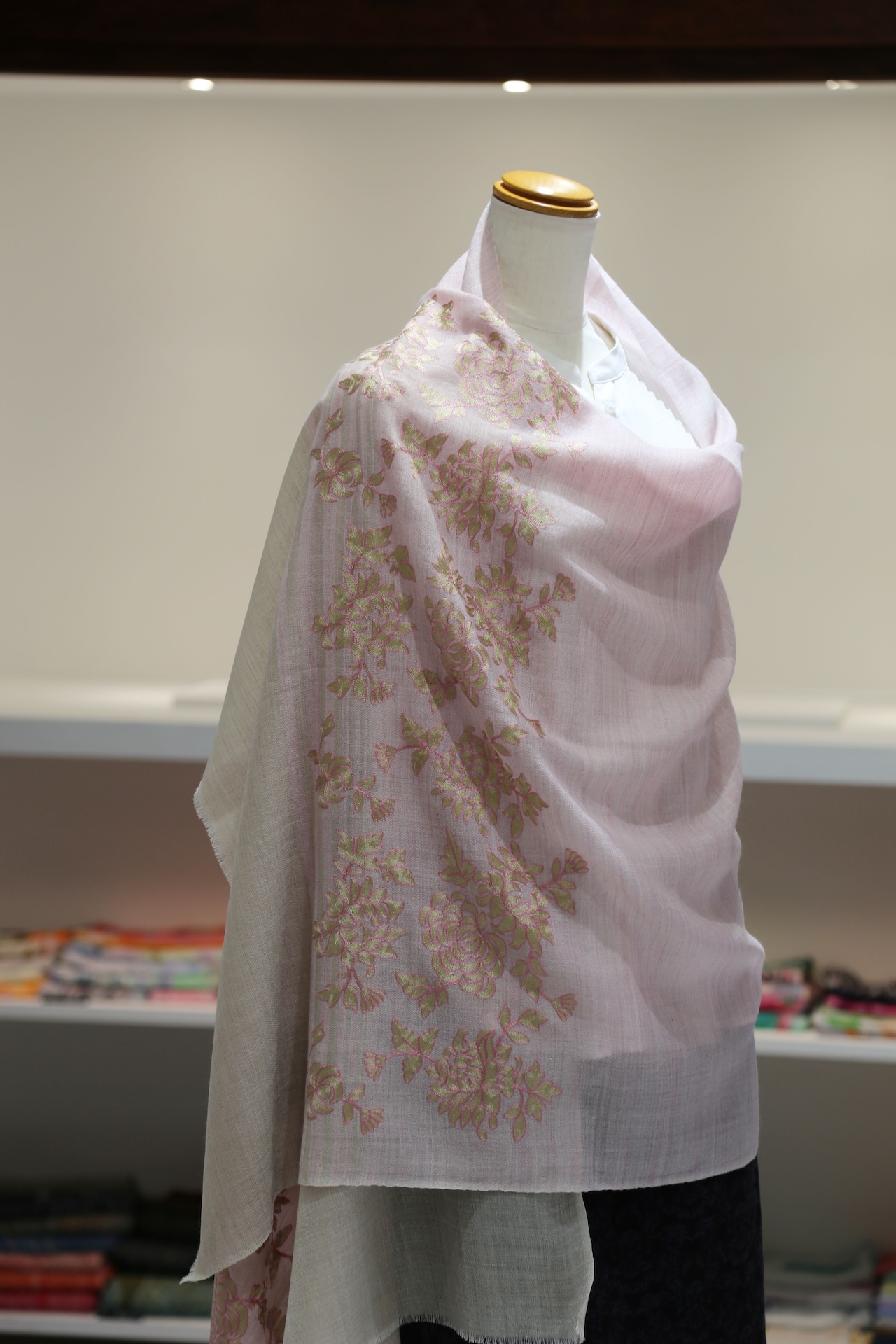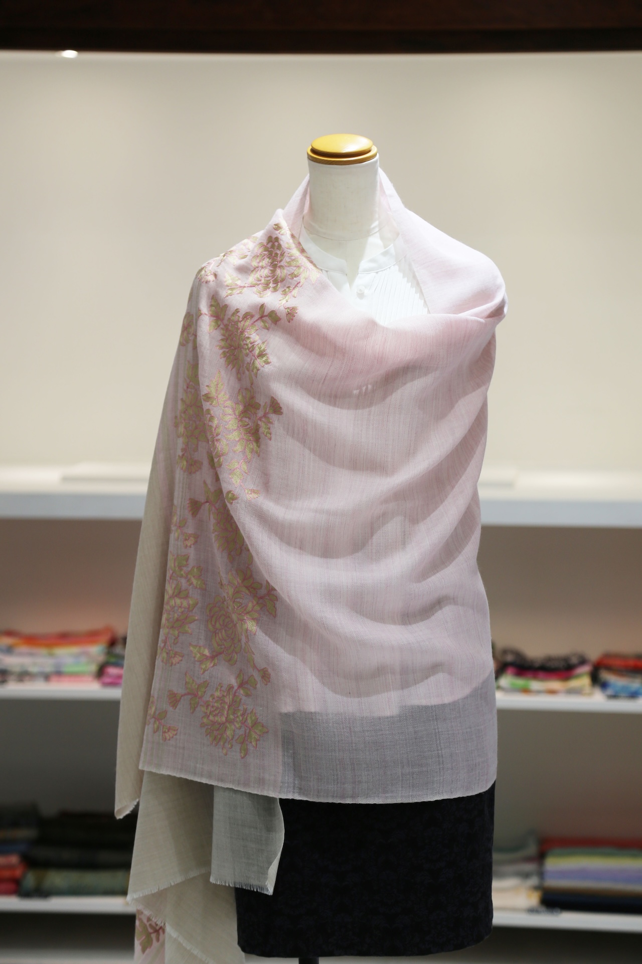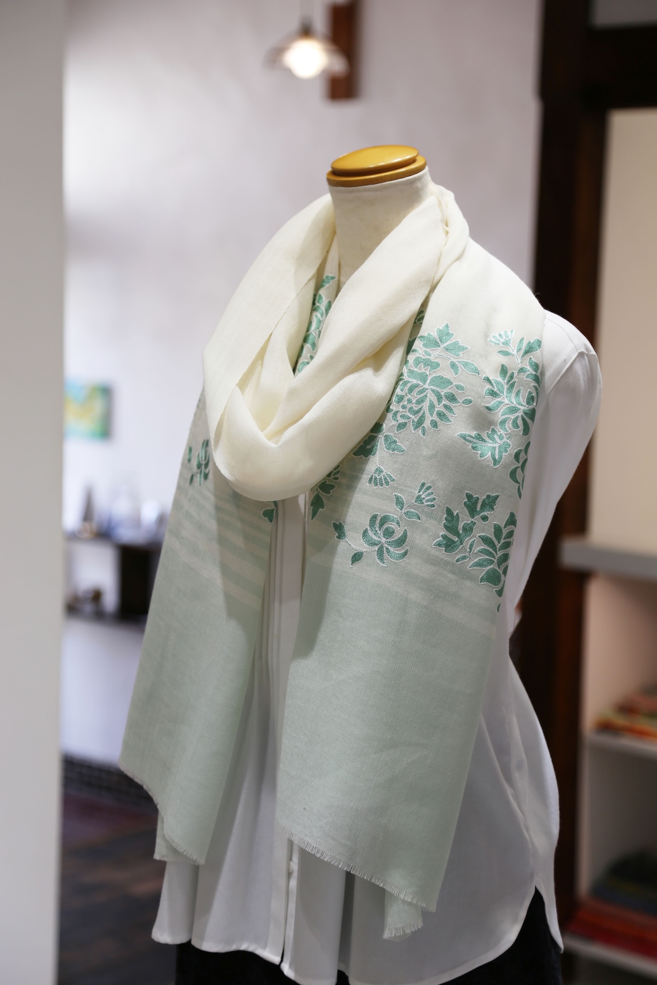 巻いても羽織っても、肩からかけても非常に見栄えますし、施されている刺繍の面積のバランスも良いのでとても扱いやすくなっています。