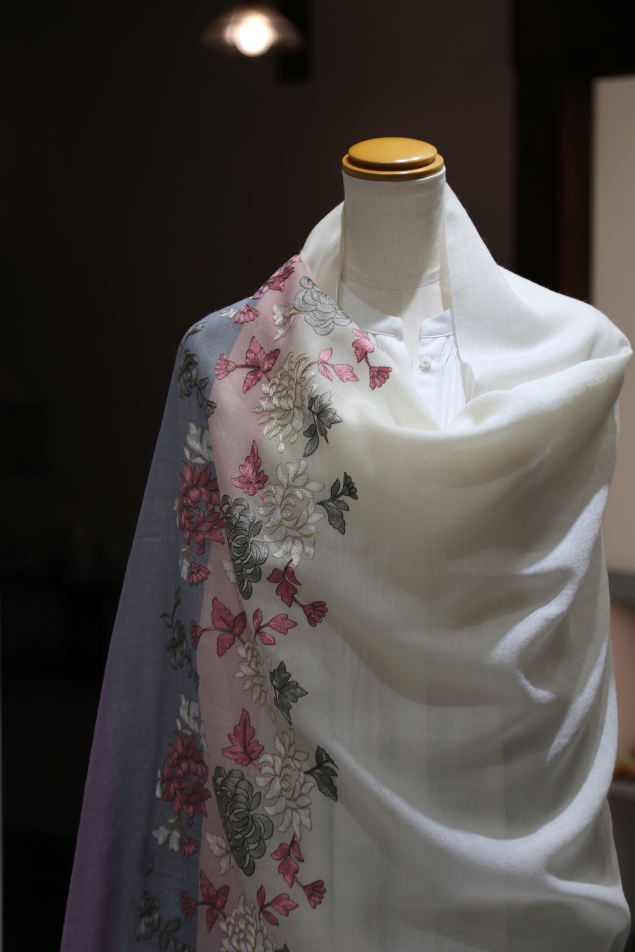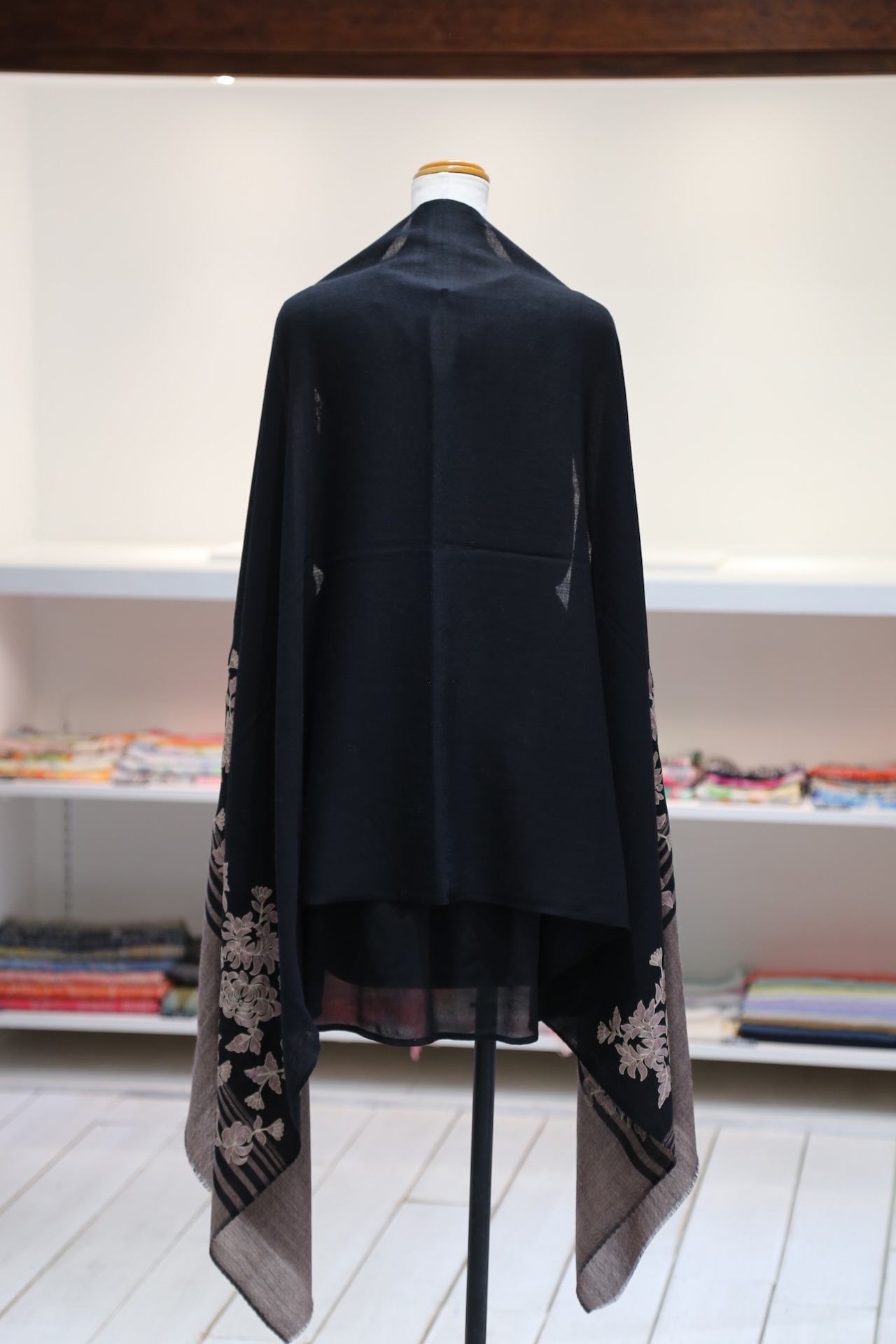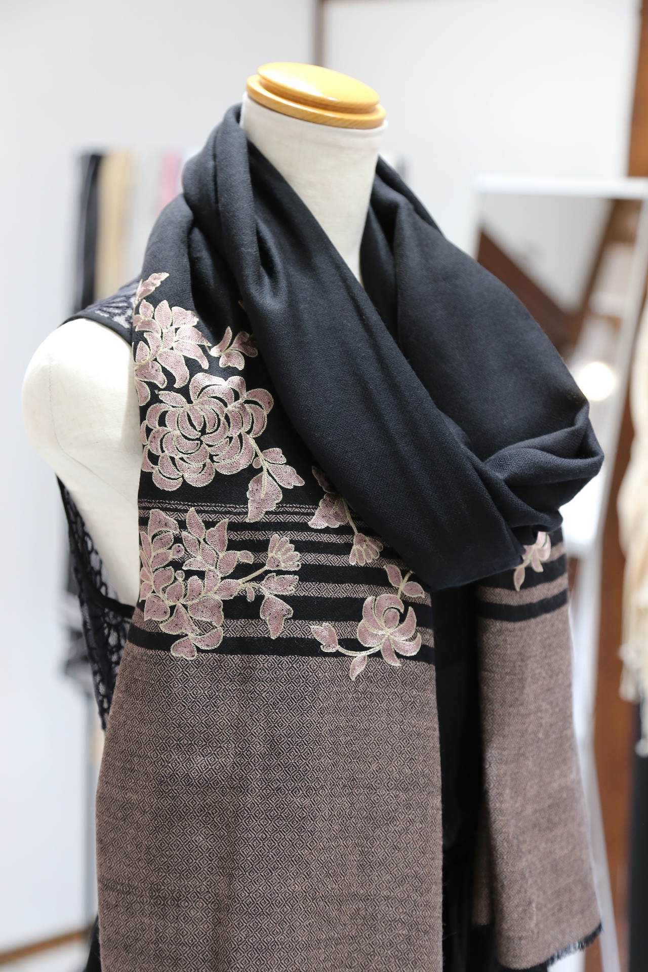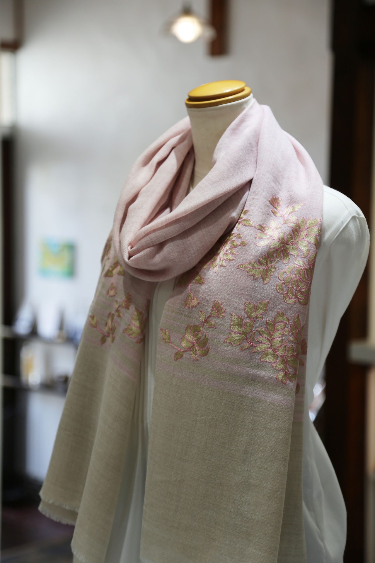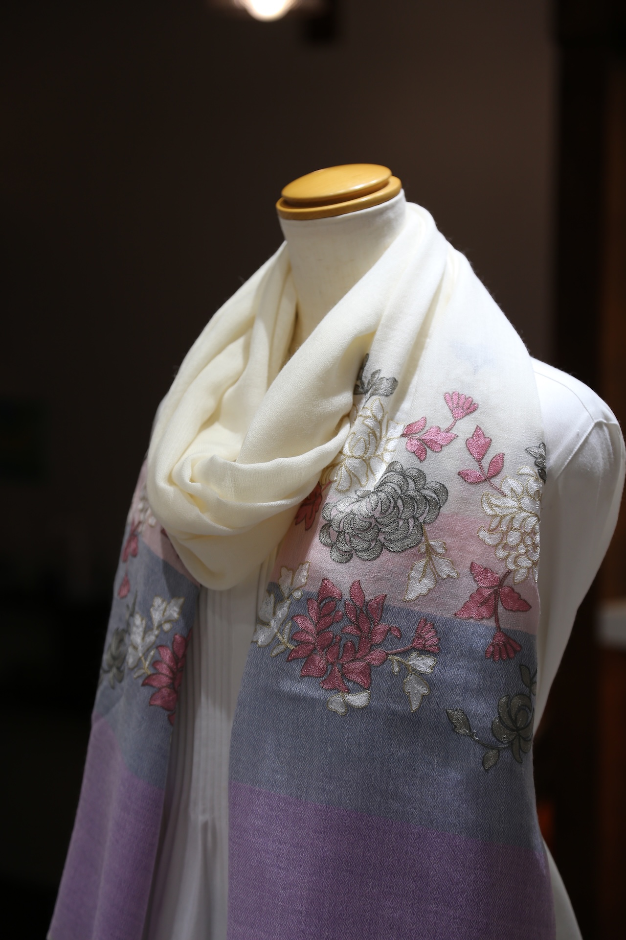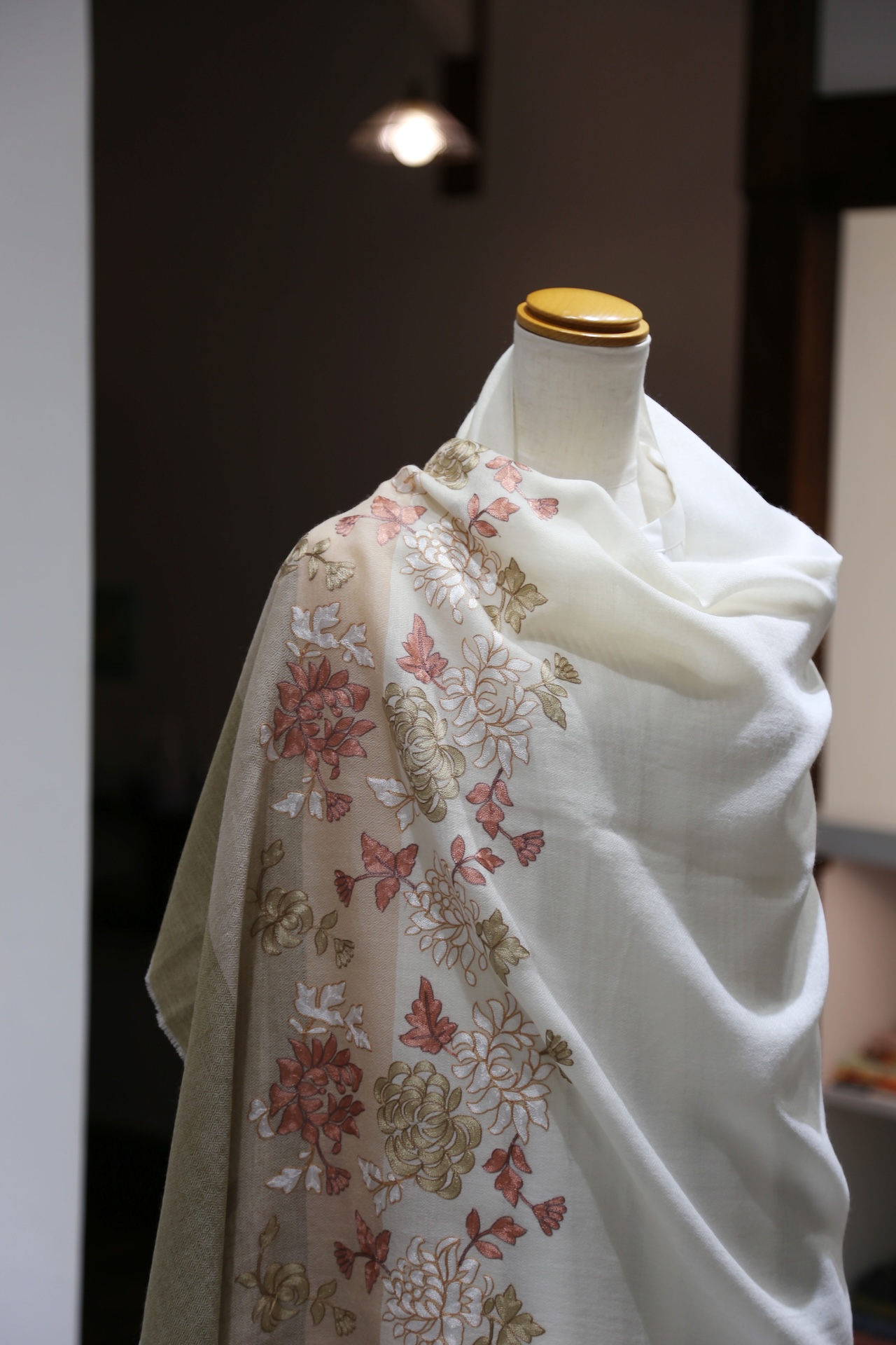 巻いても羽織っても、肩からかけても非常に見栄えますし、施されている刺繍の面積のバランスも良いのでとても扱いやすくなっています。