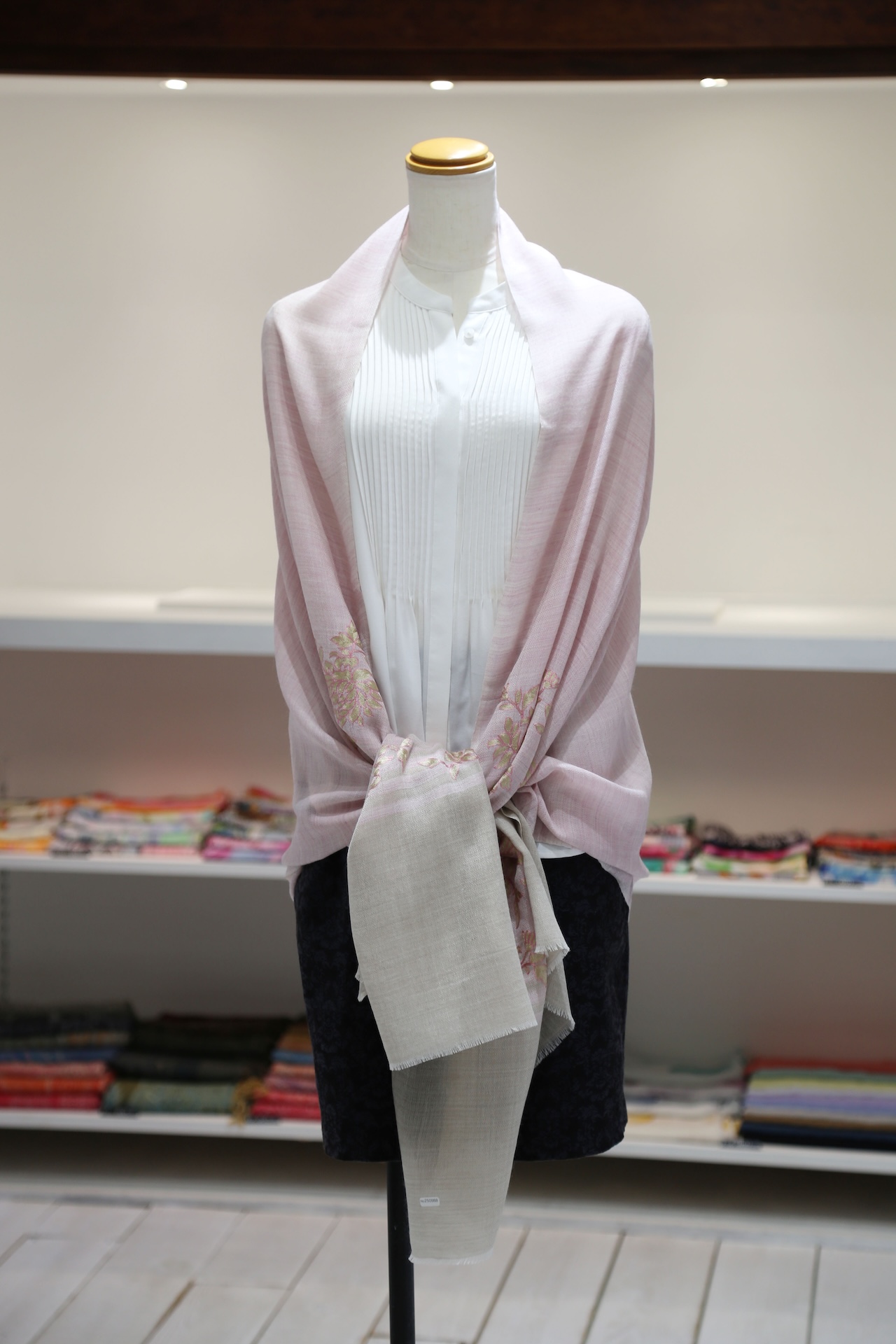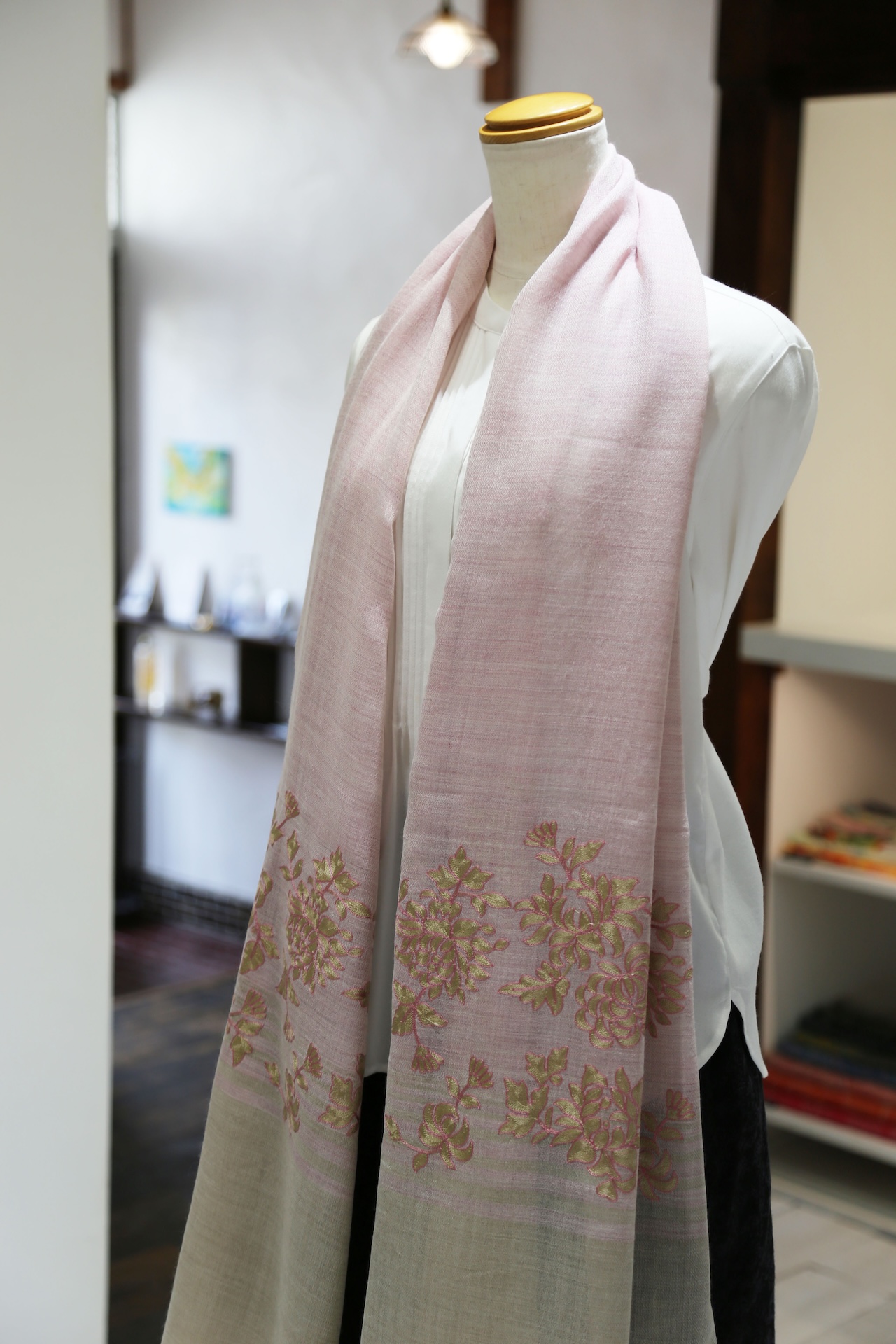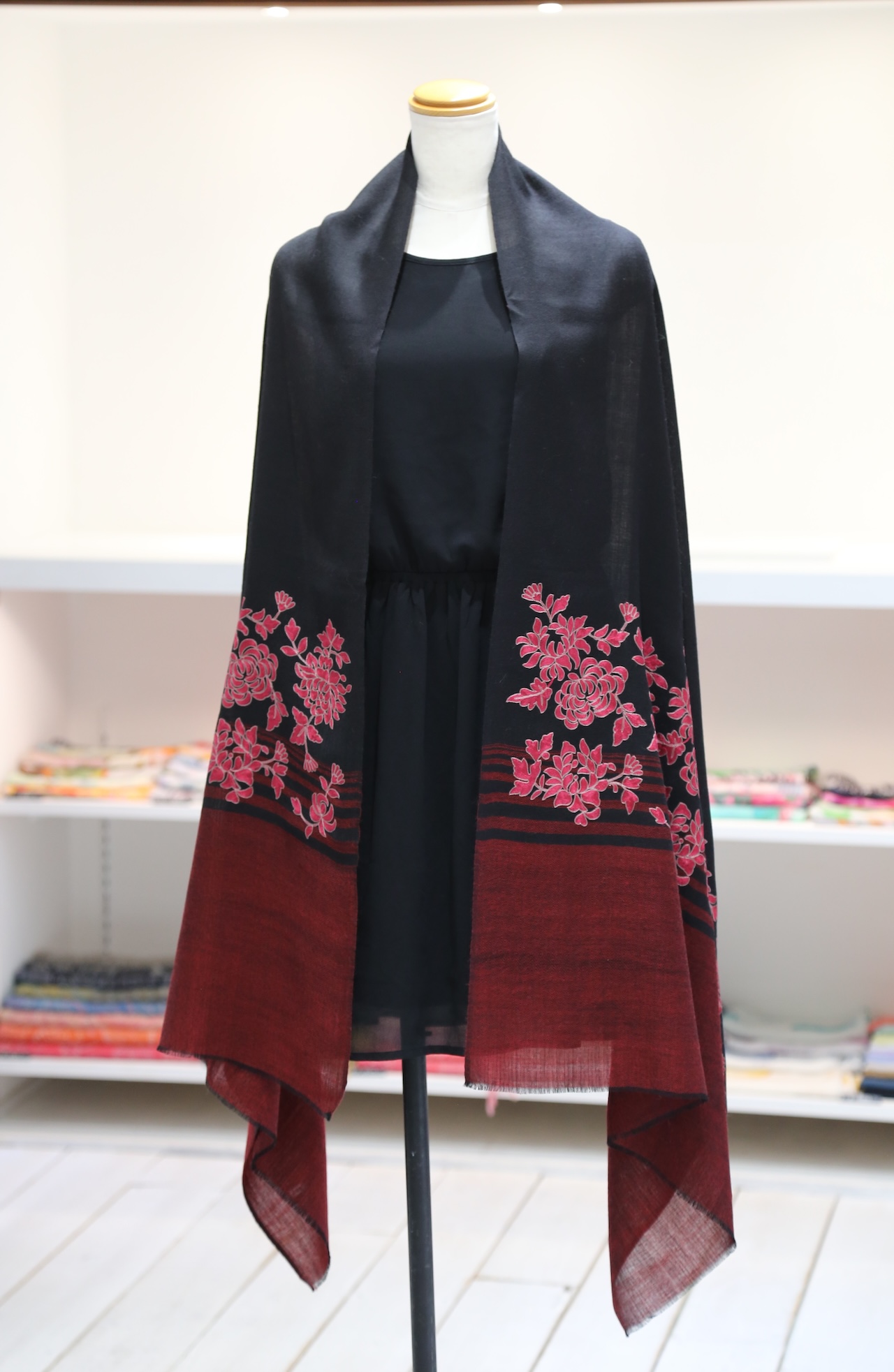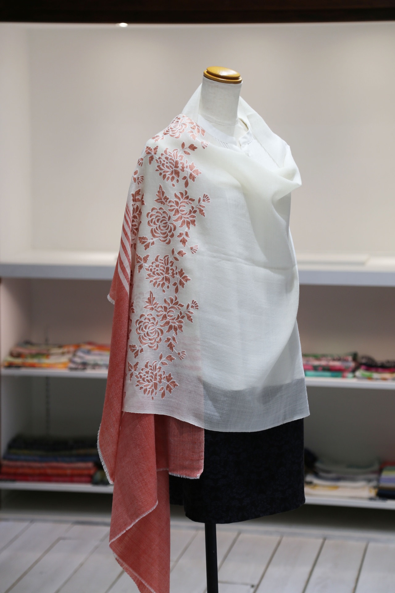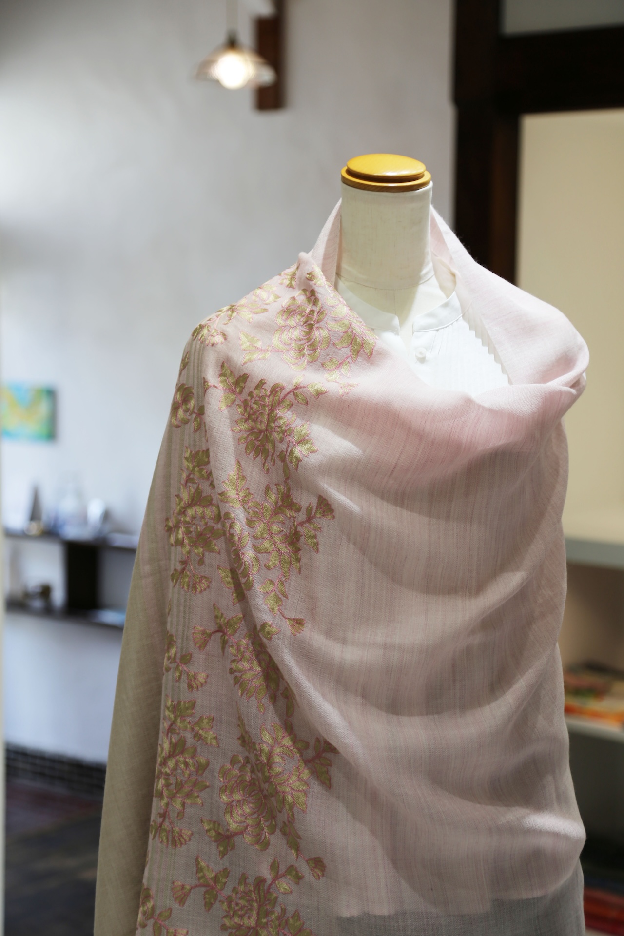 巻いても羽織っても、肩からかけても非常に見栄えますし、施されている刺繍の面積のバランスも良いのでとても扱いやすくなっています。