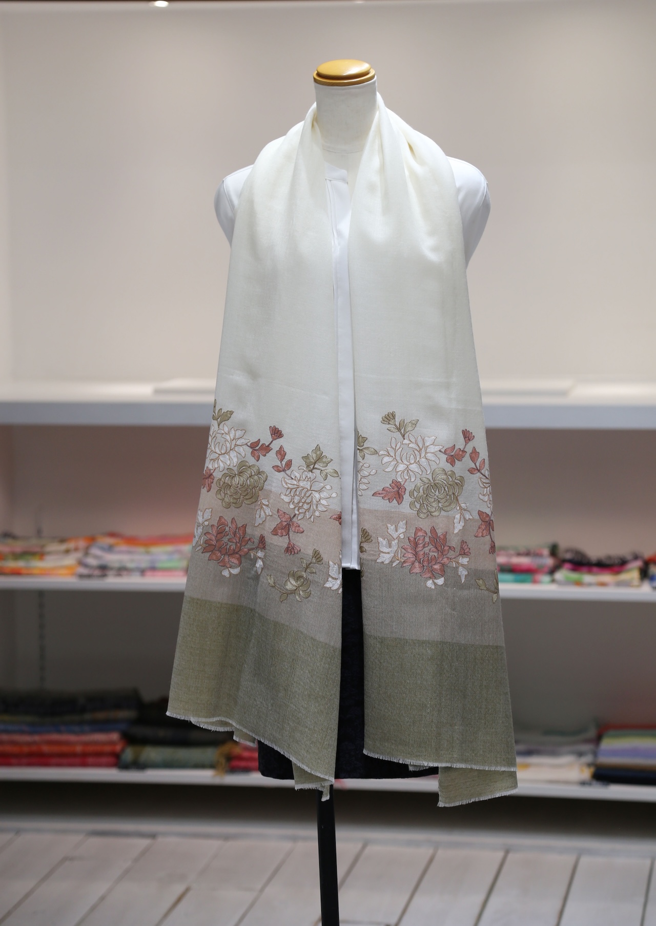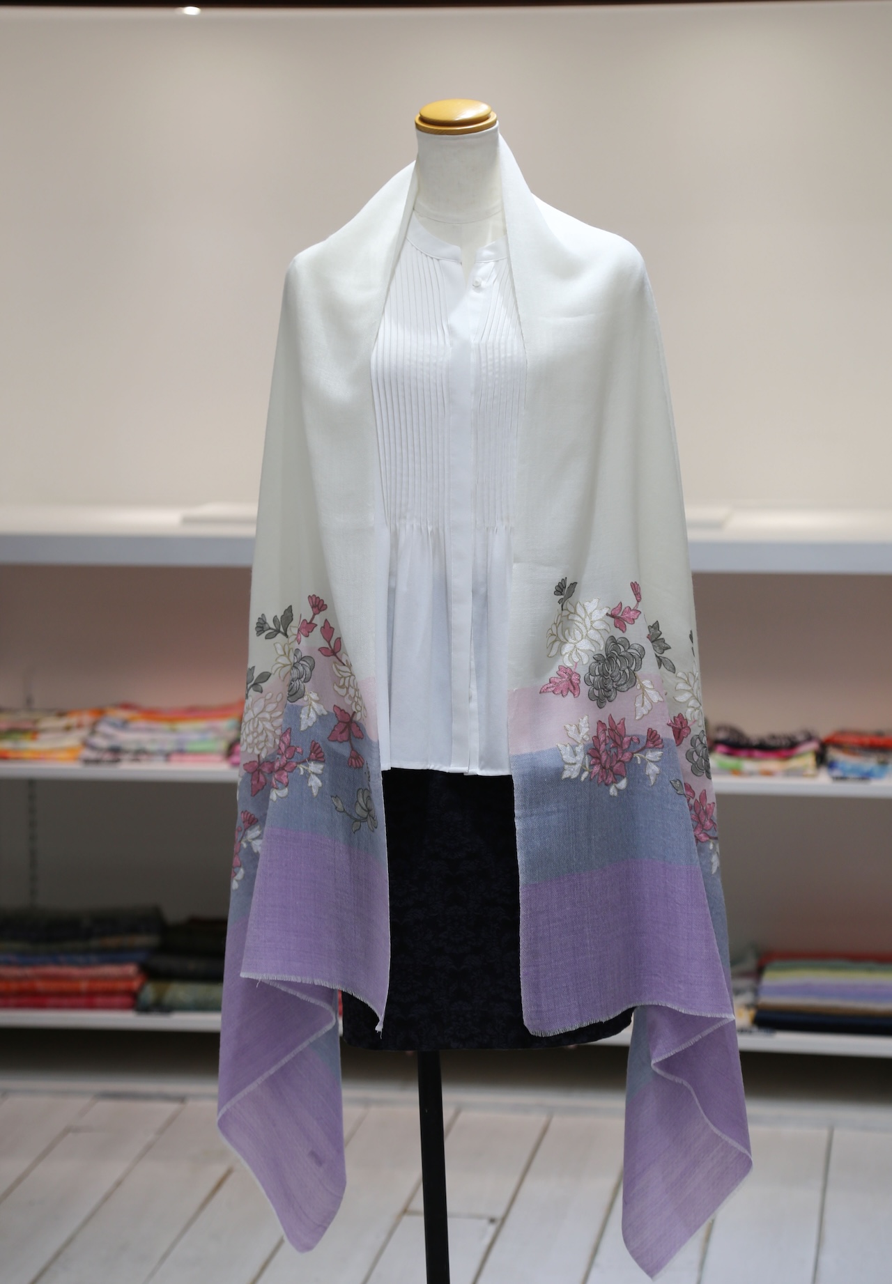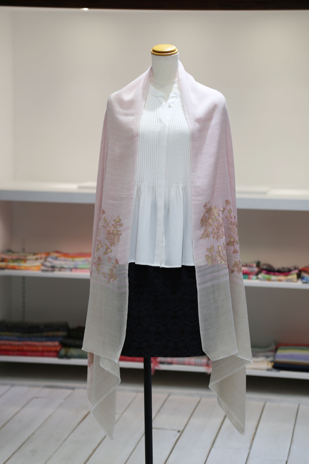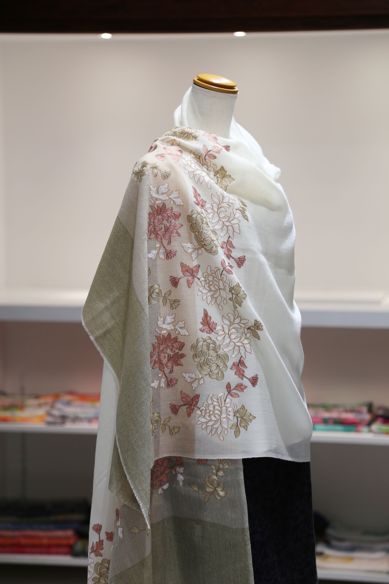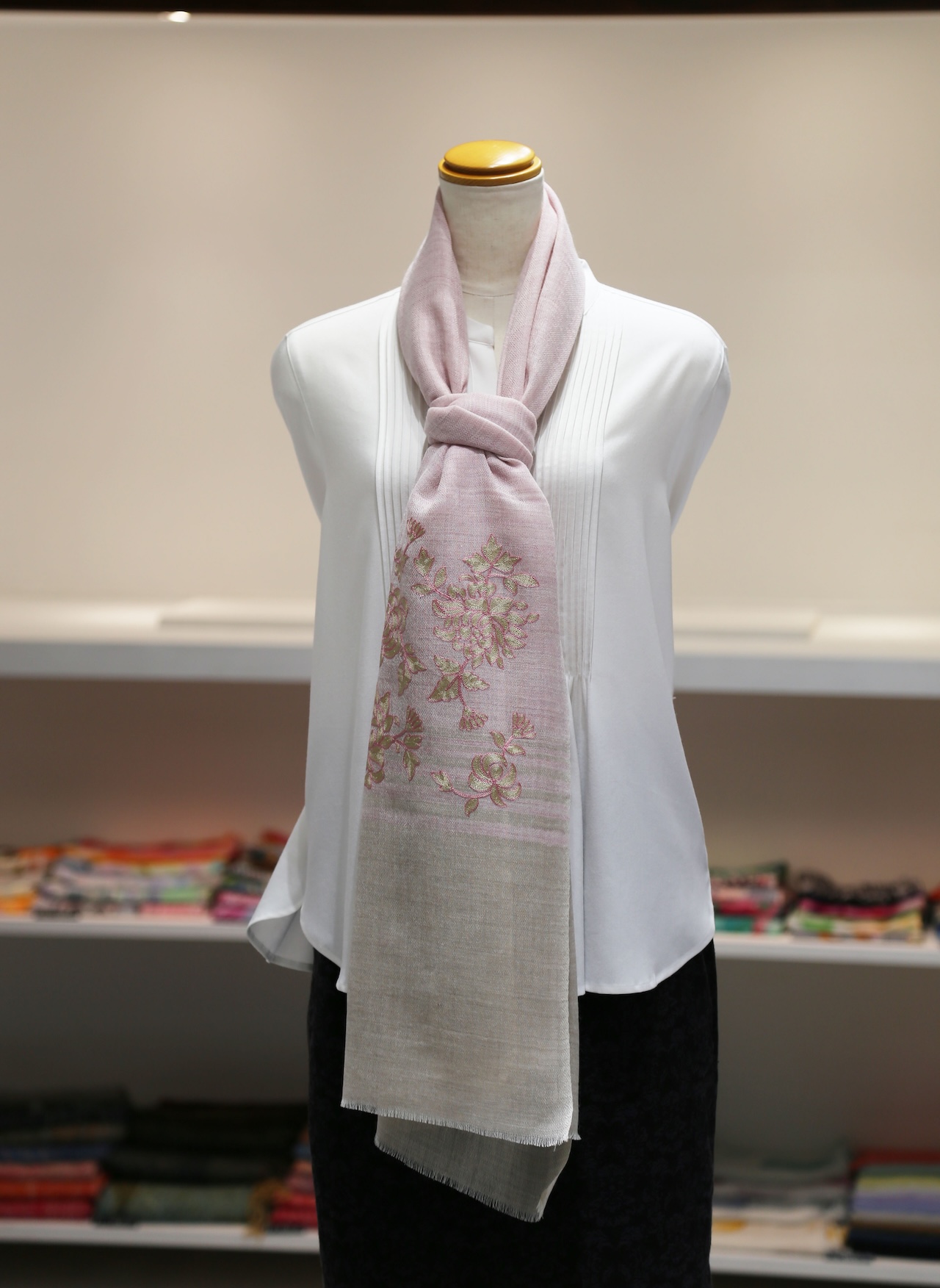 巻いても羽織っても、肩からかけても非常に見栄えますし、施されている刺繍の面積のバランスも良いのでとても扱いやすくなっています。