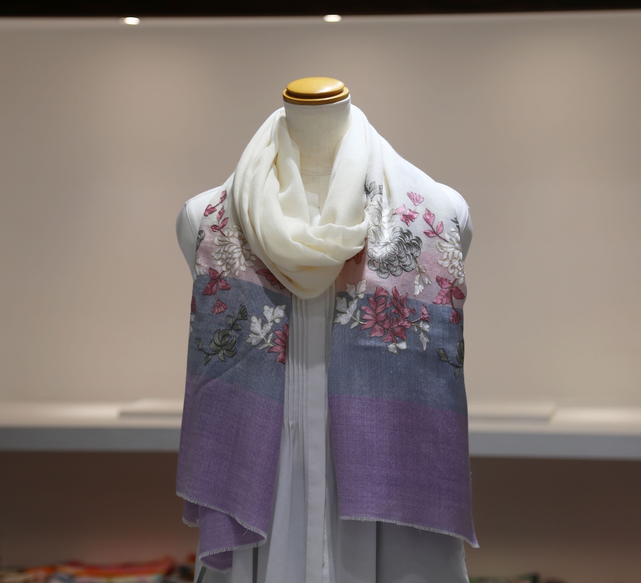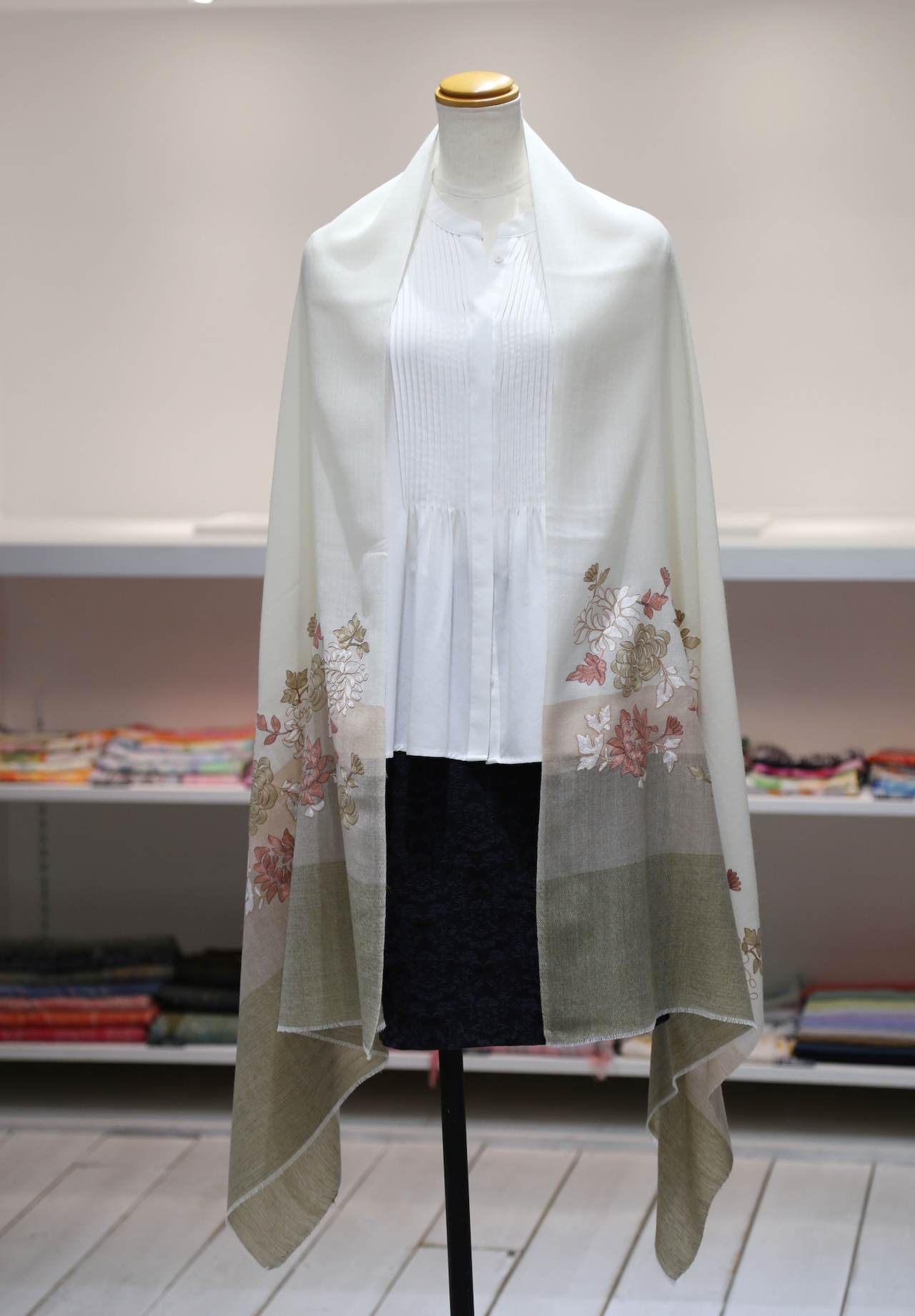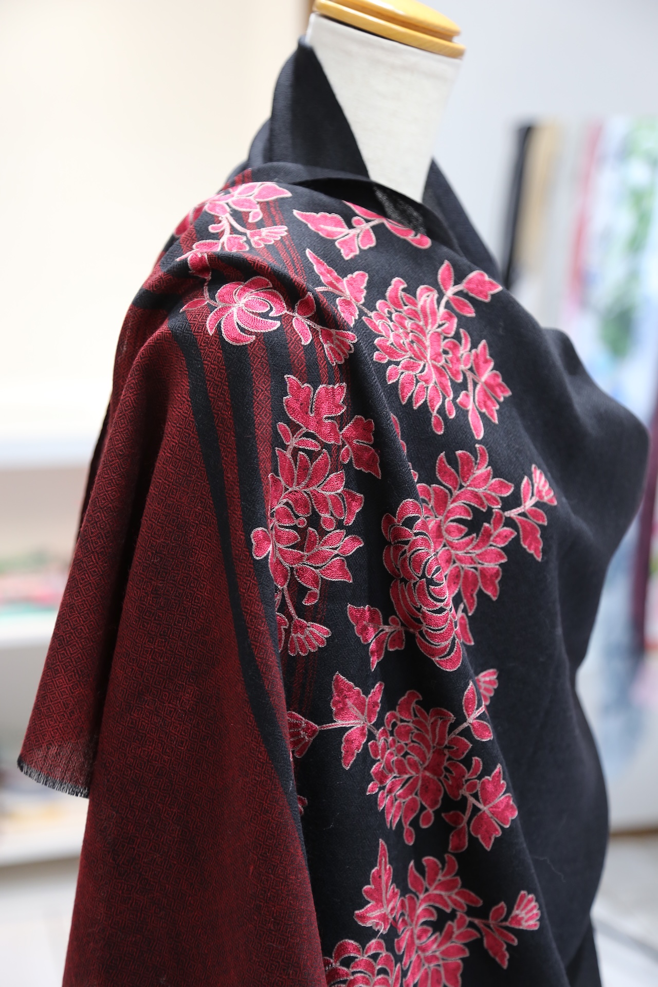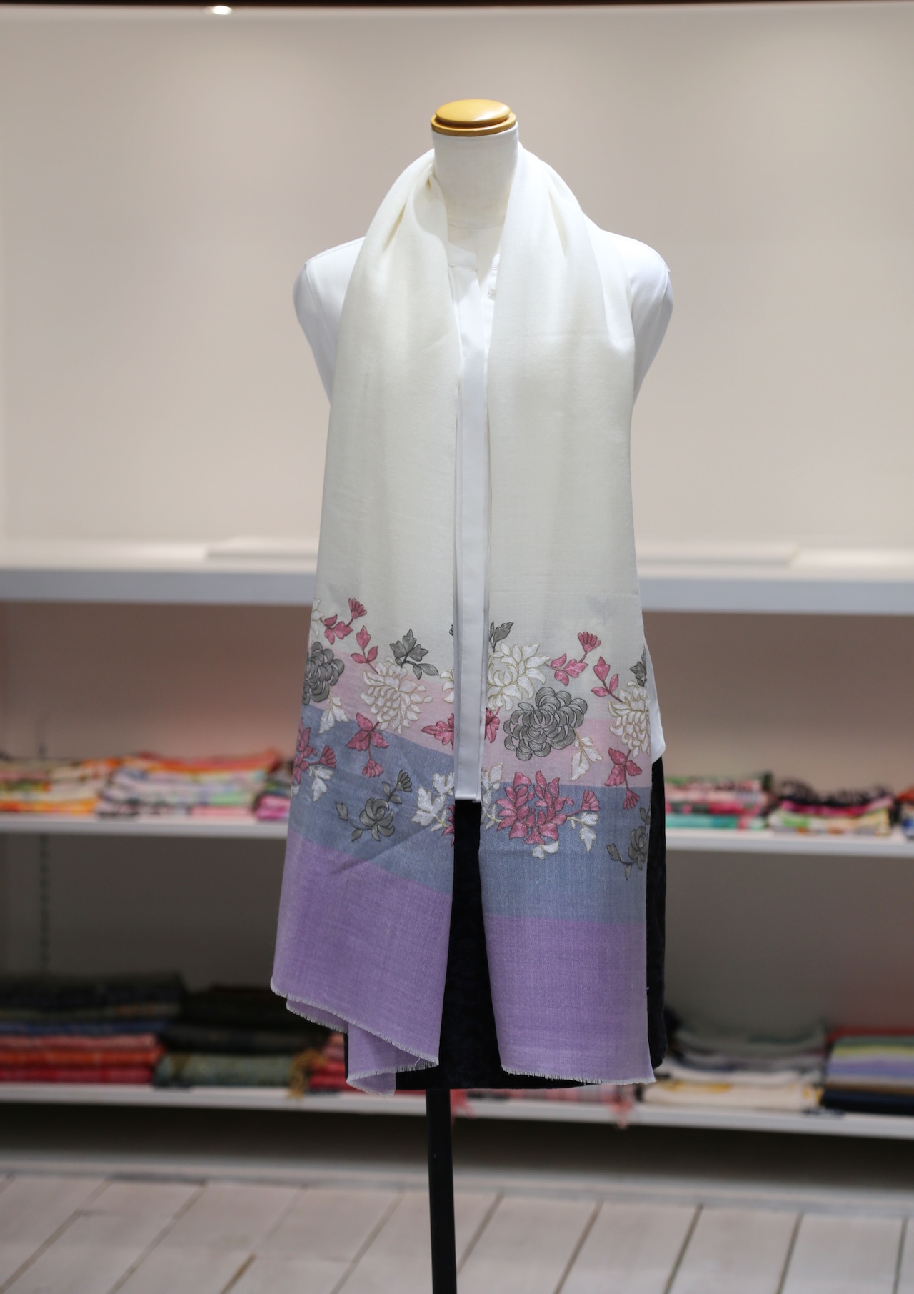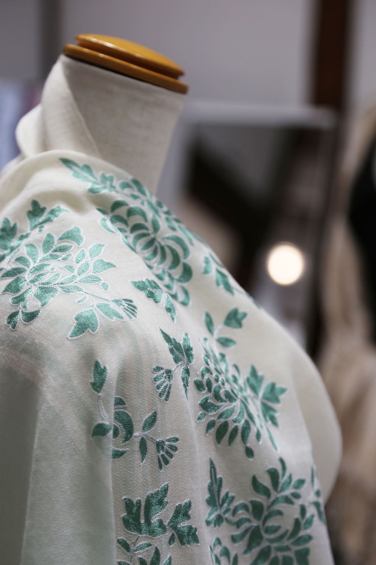 巻いても羽織っても、肩からかけても非常に見栄えますし、施されている刺繍の面積のバランスも良いのでとても扱いやすくなっています。