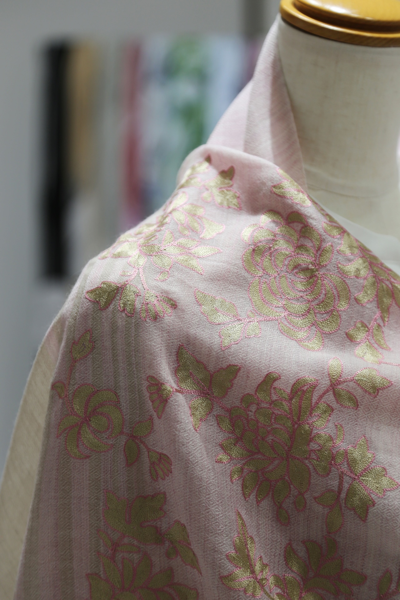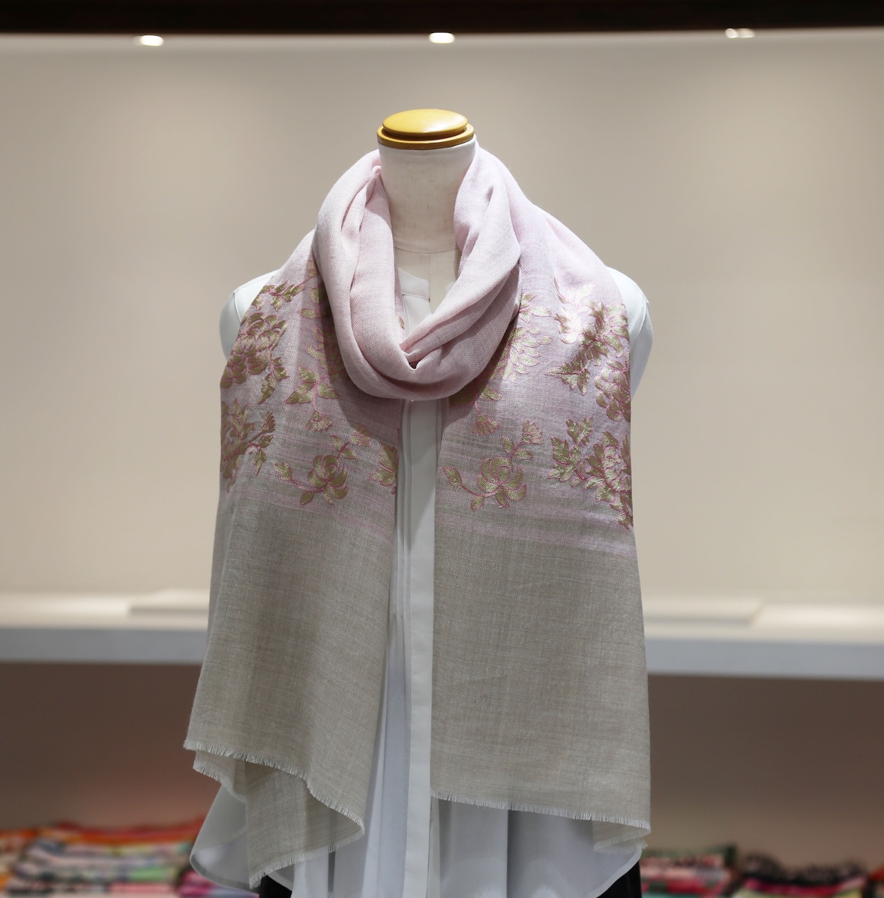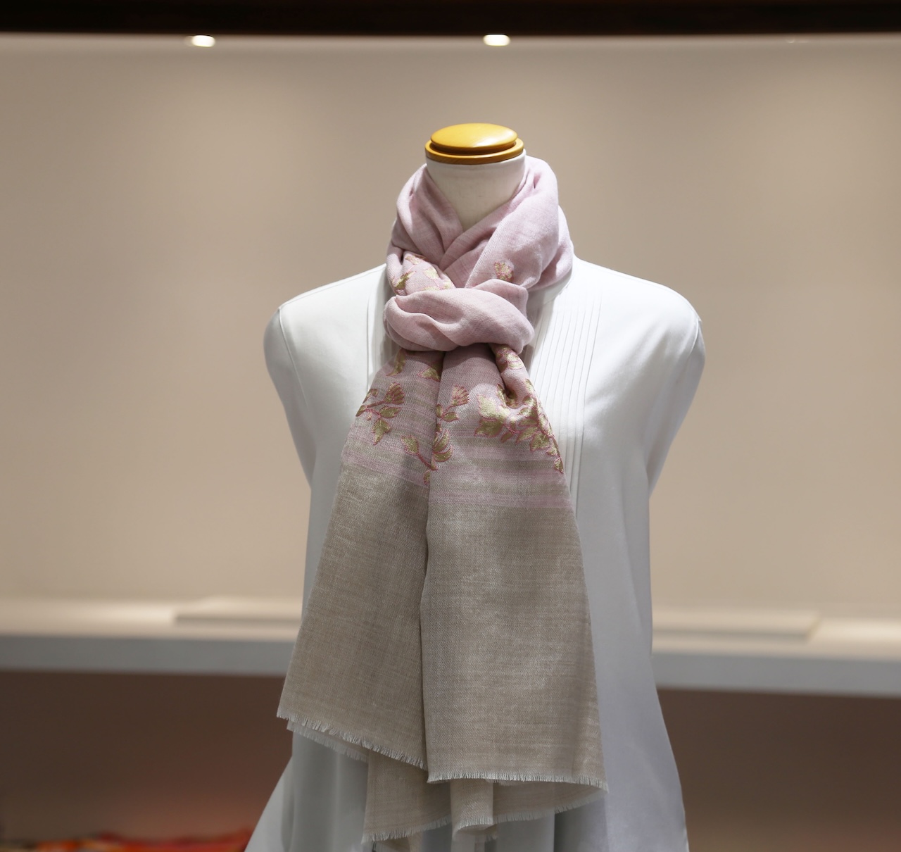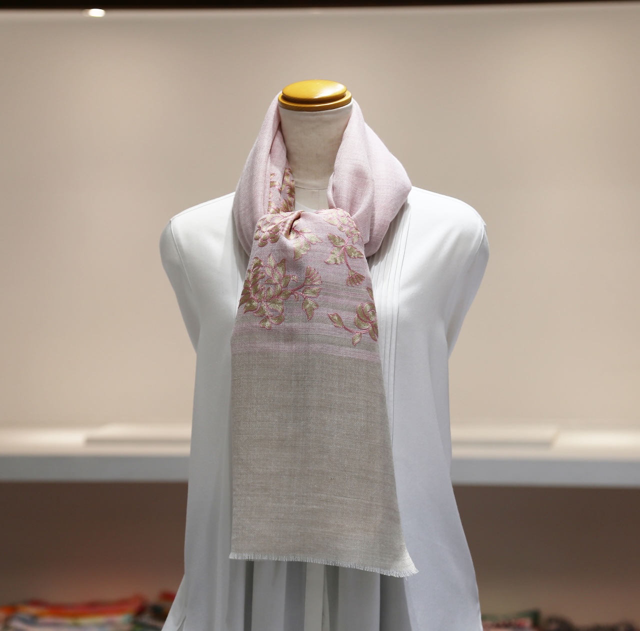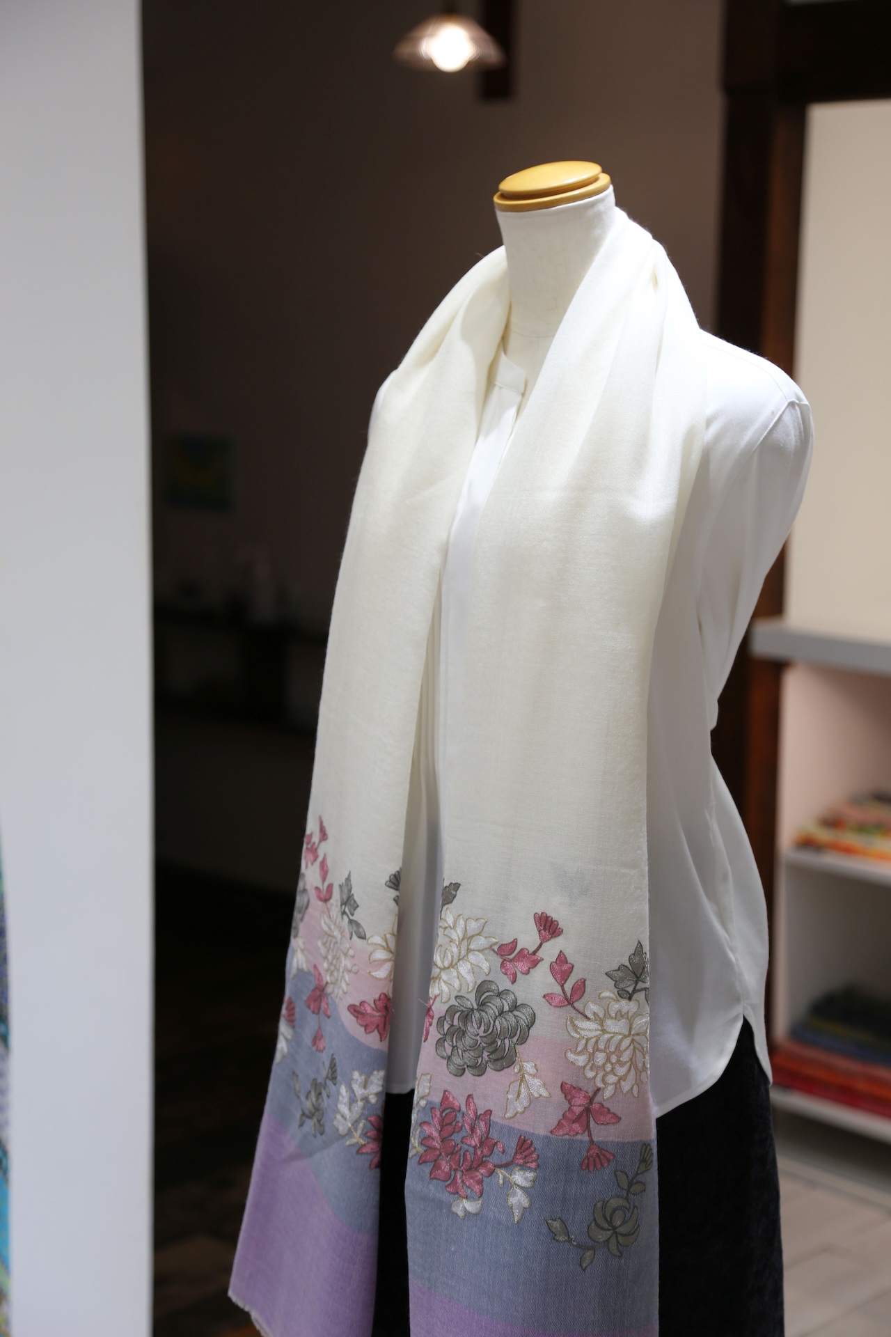巻いても羽織っても、肩からかけても非常に見栄えますし、施されている刺繍の面積のバランスも良いのでとても扱いやすくなっています。