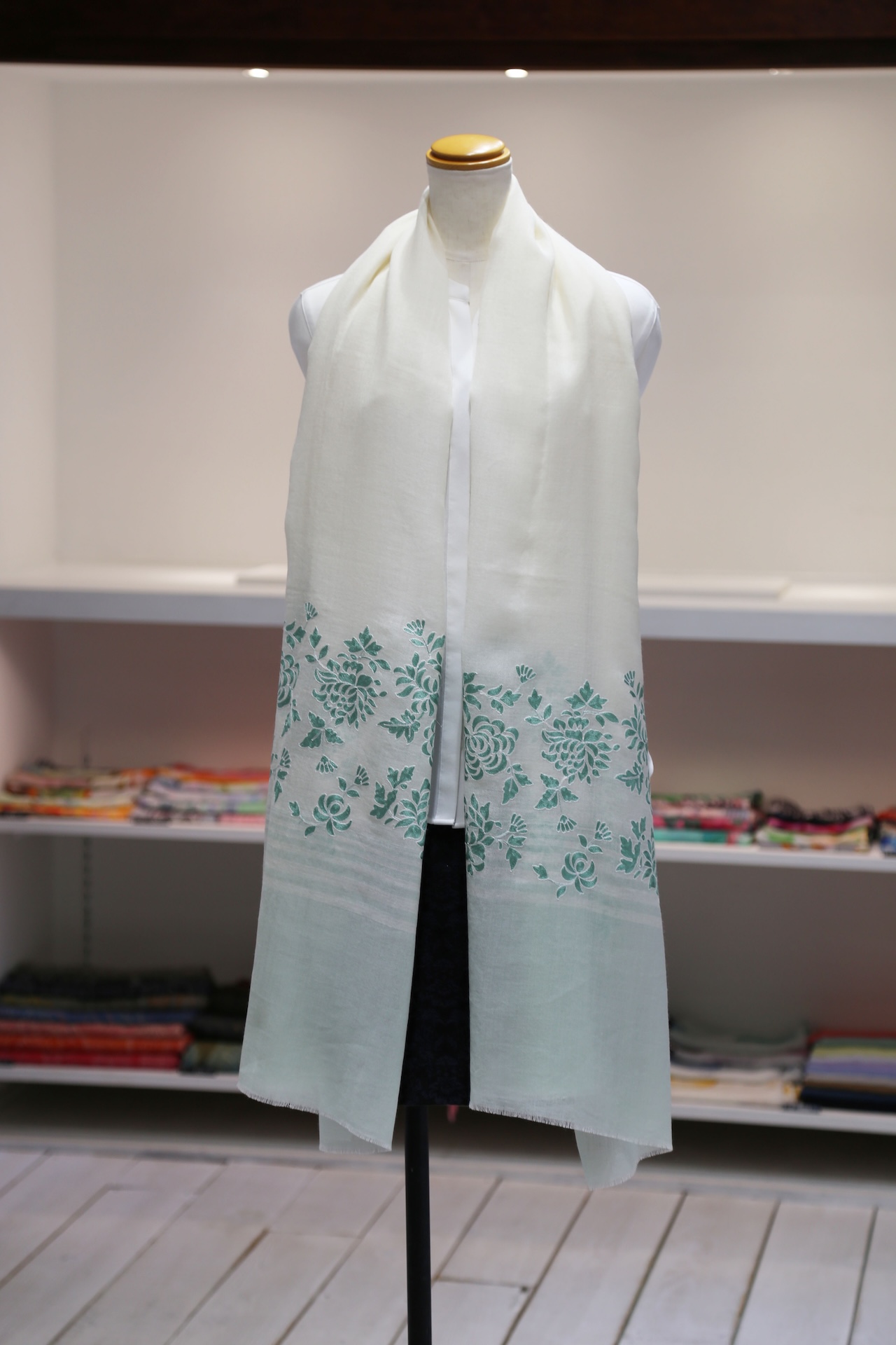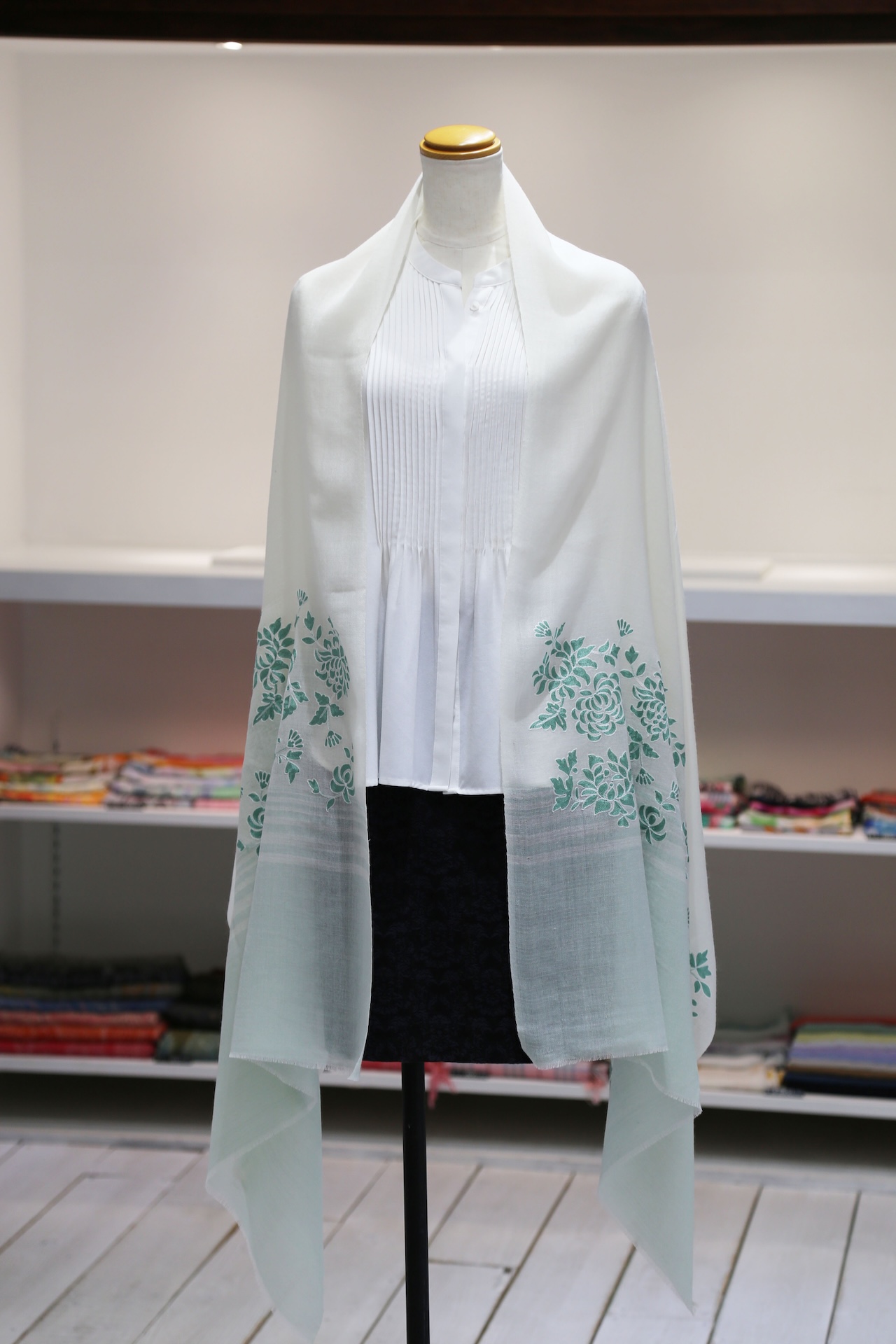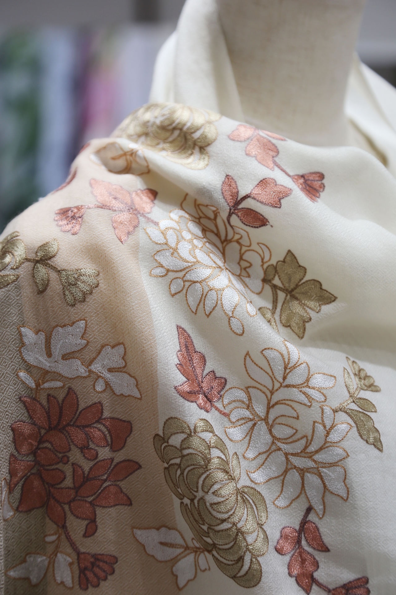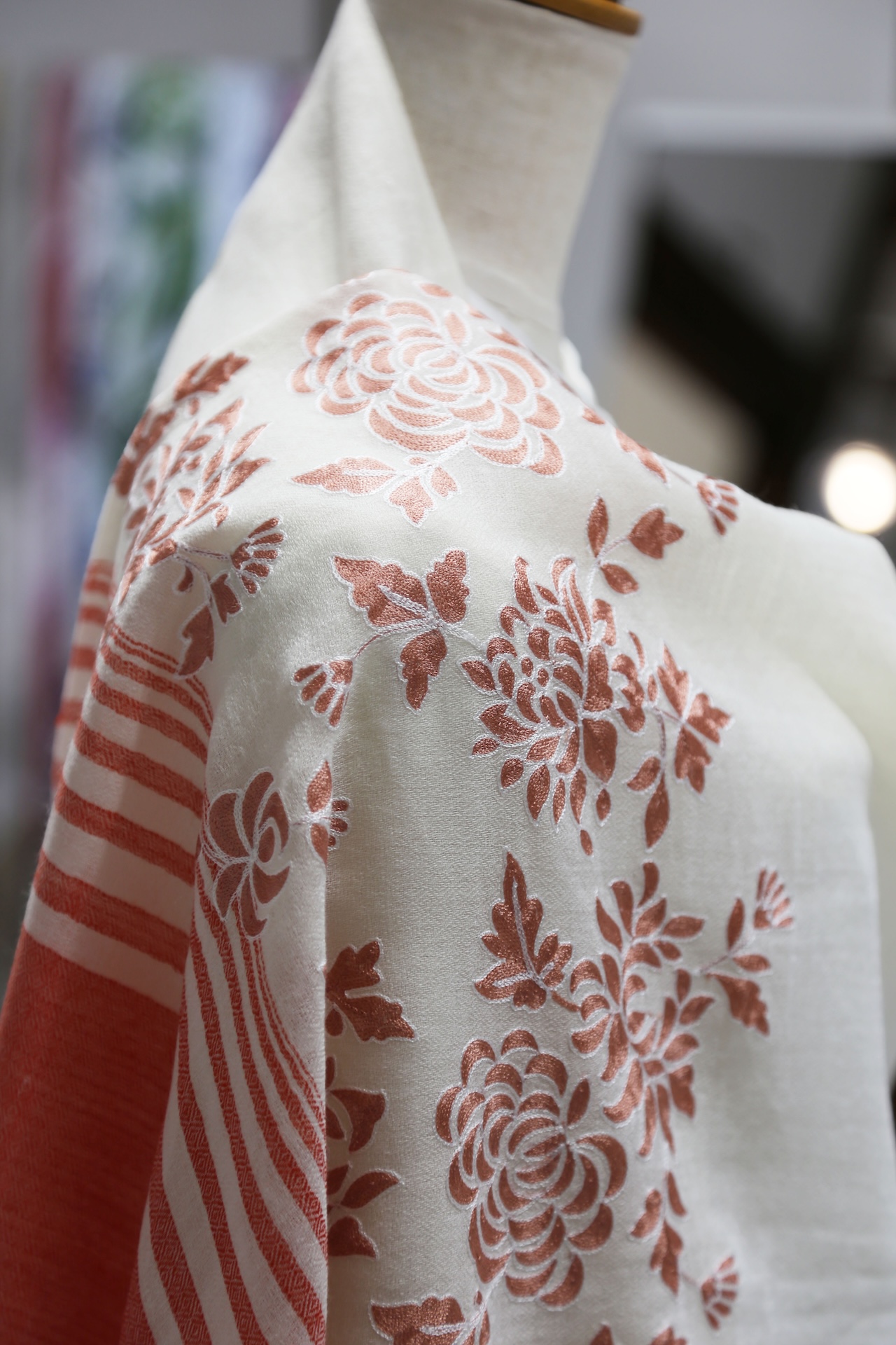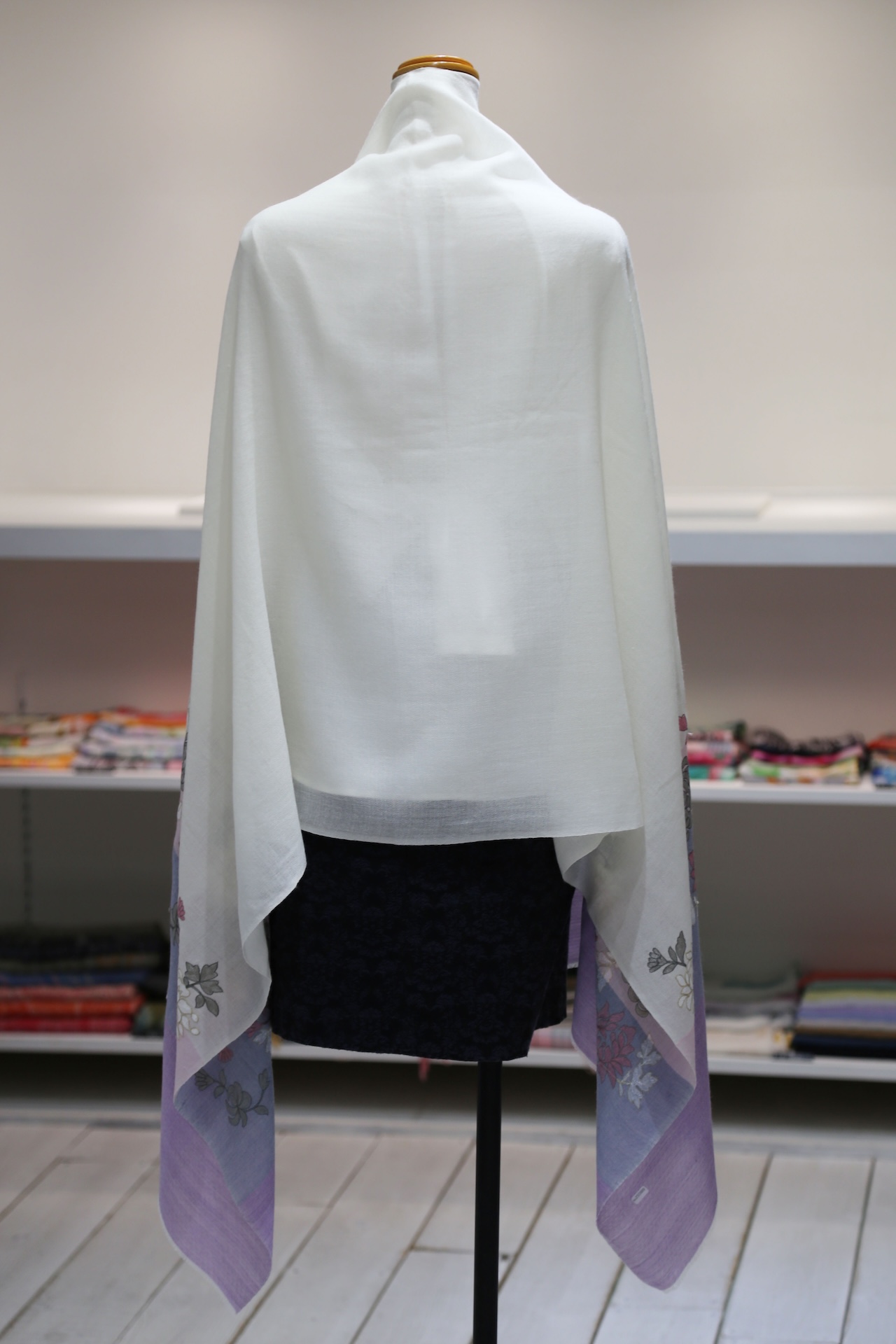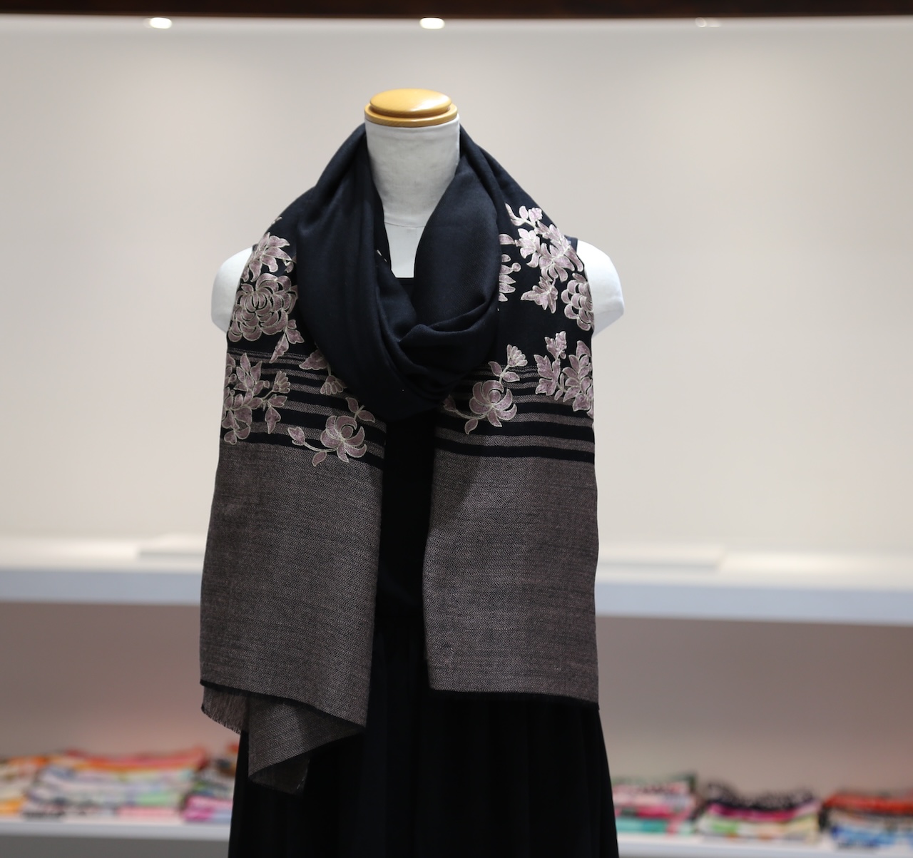 巻いても羽織っても、肩からかけても非常に見栄えますし、施されている刺繍の面積のバランスも良いのでとても扱いやすくなっています。