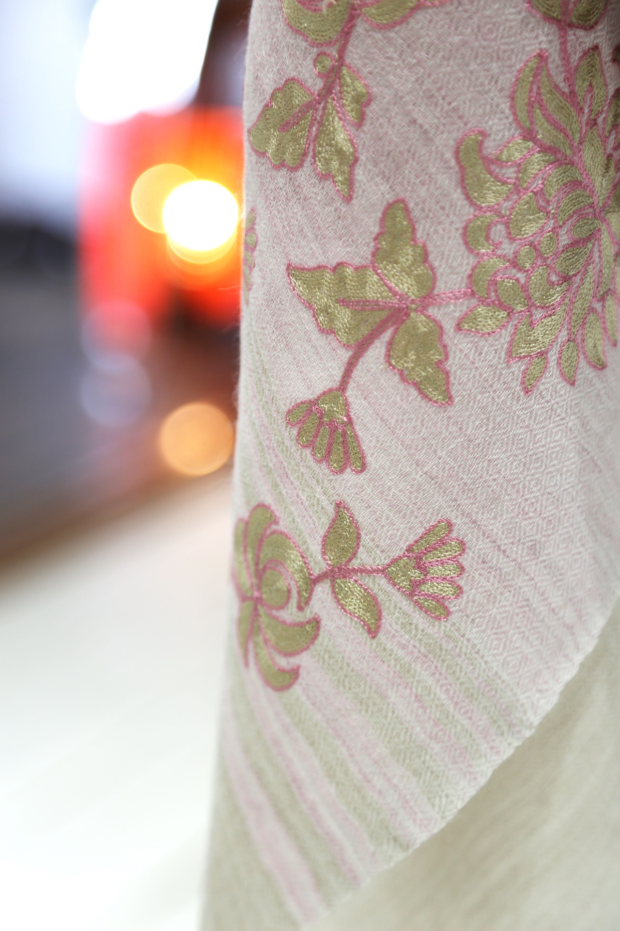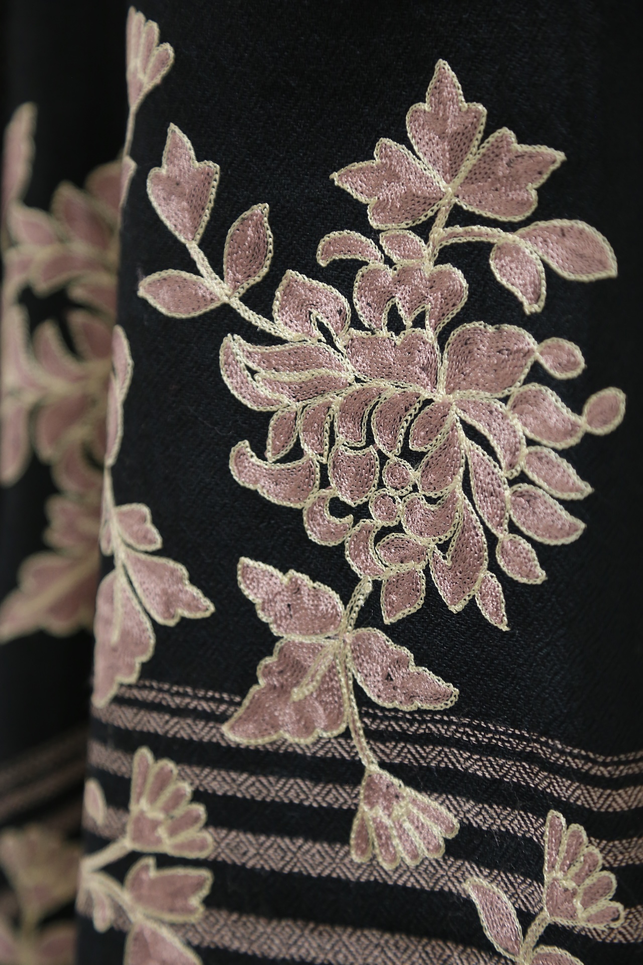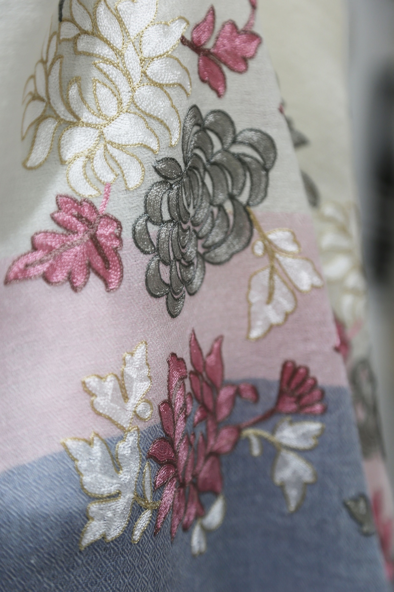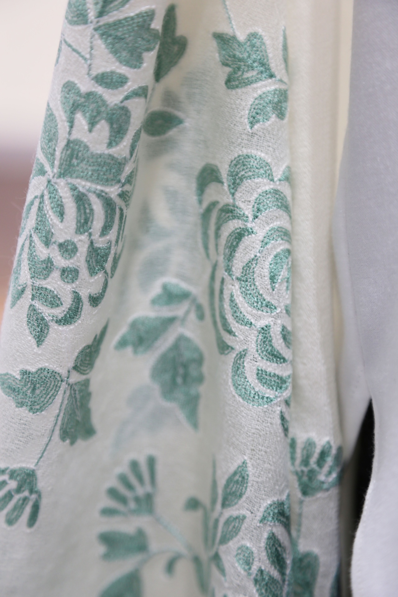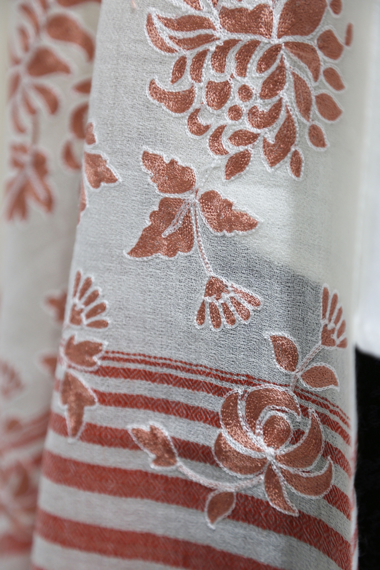 巻いても羽織っても、肩からかけても非常に見栄えますし、施されている刺繍の面積のバランスも良いのでとても扱いやすくなっています。