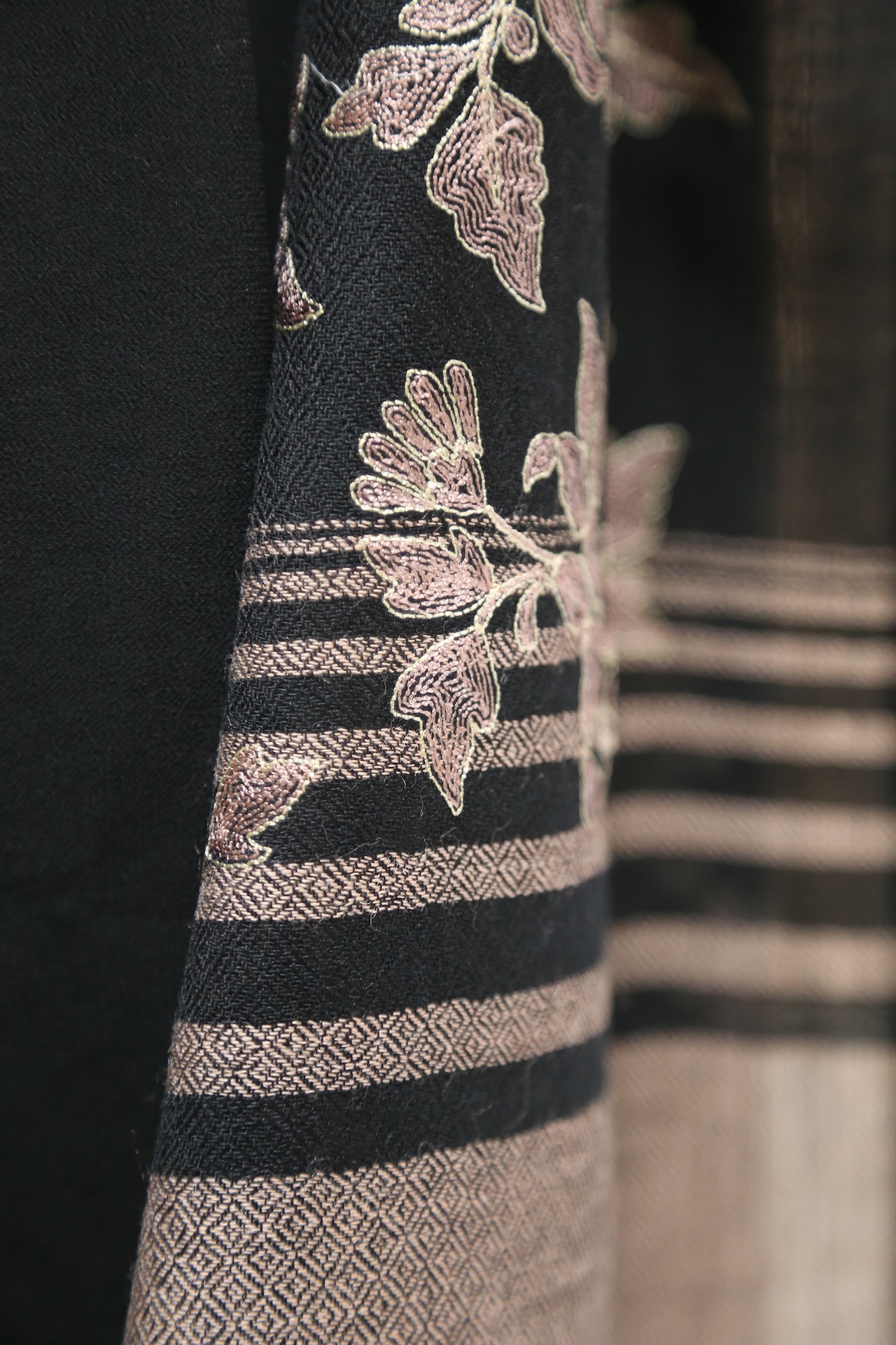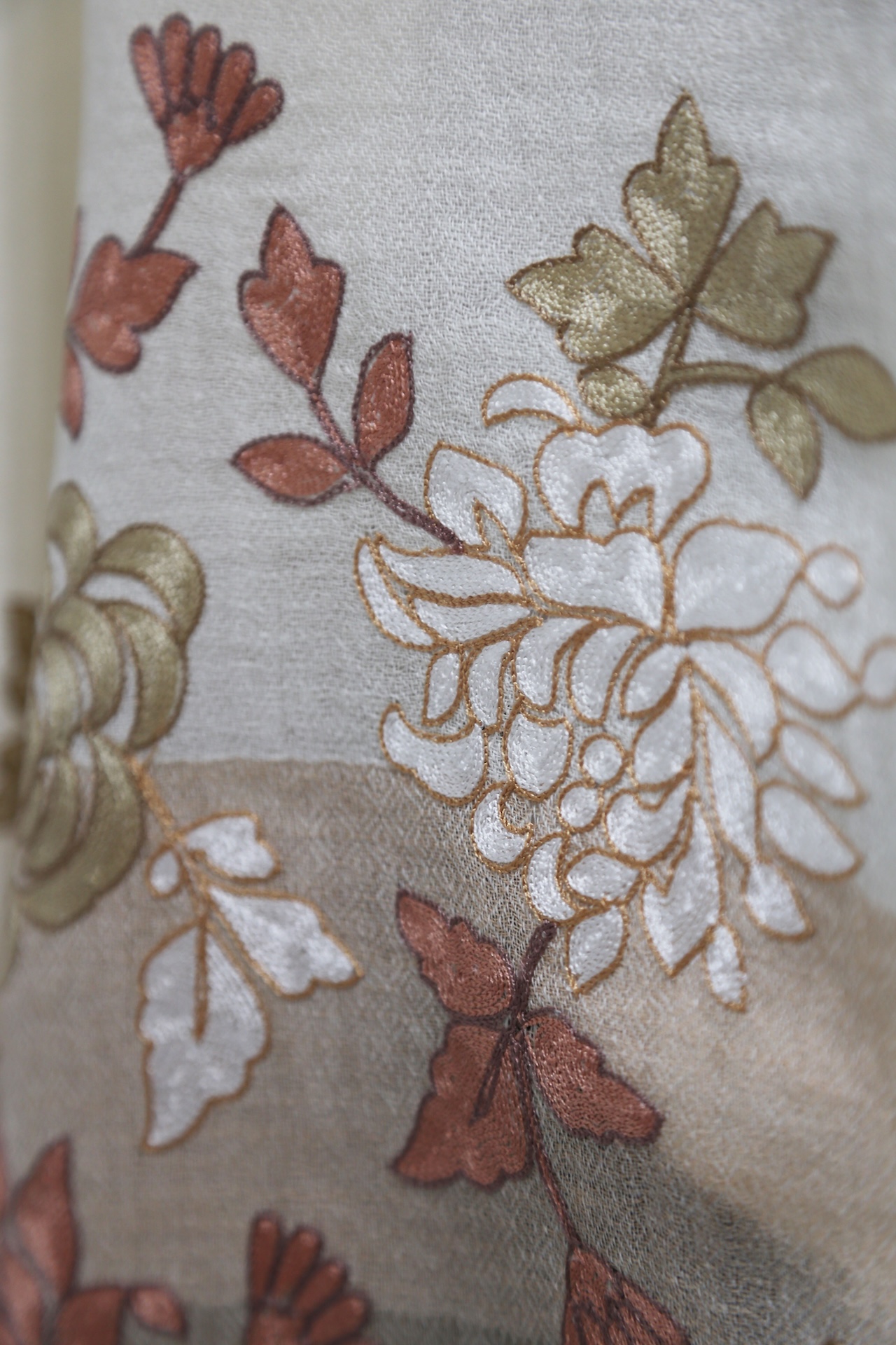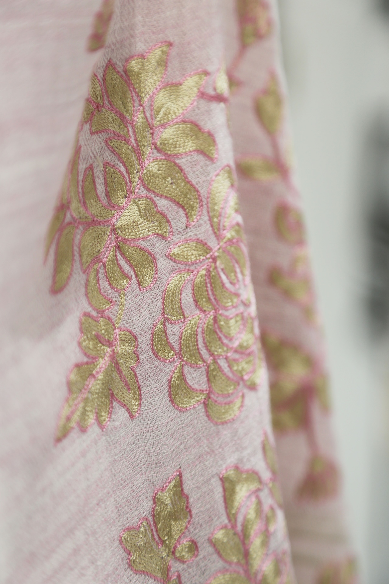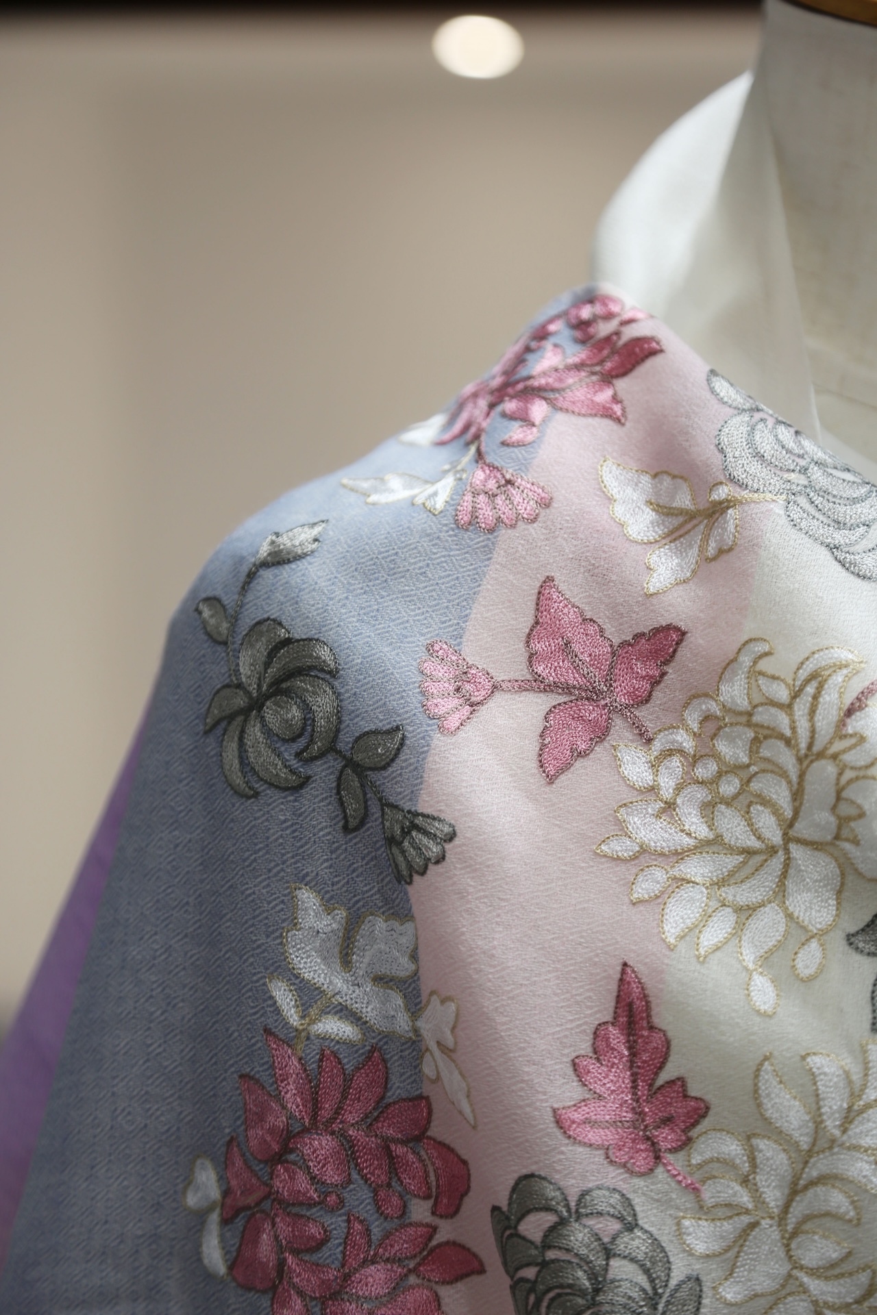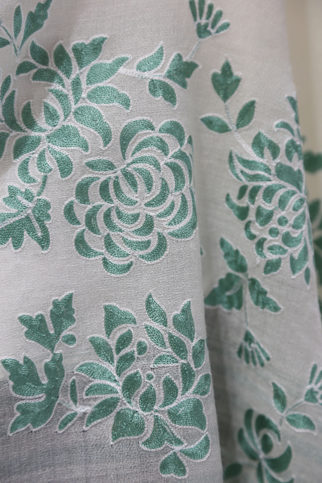 巻いても羽織っても、肩からかけても非常に見栄えますし、施されている刺繍の面積のバランスも良いのでとても扱いやすくなっています。