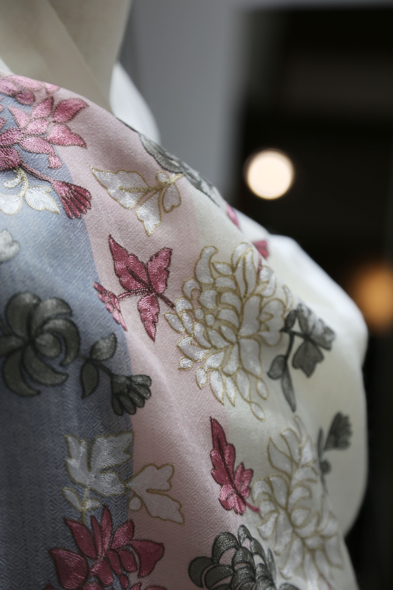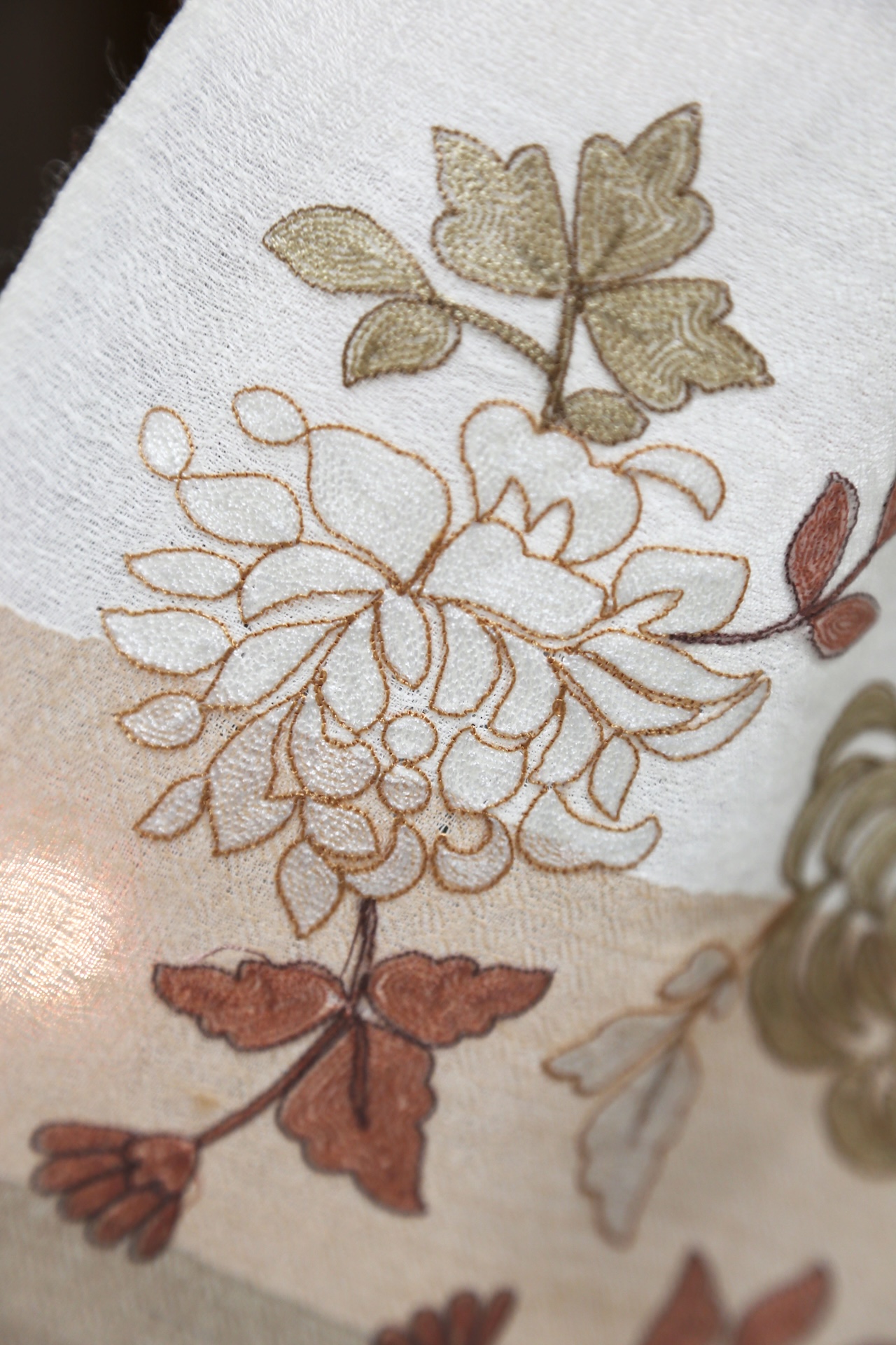 色とりどりの糸で施された煌びやかな刺繍がとても美しい。