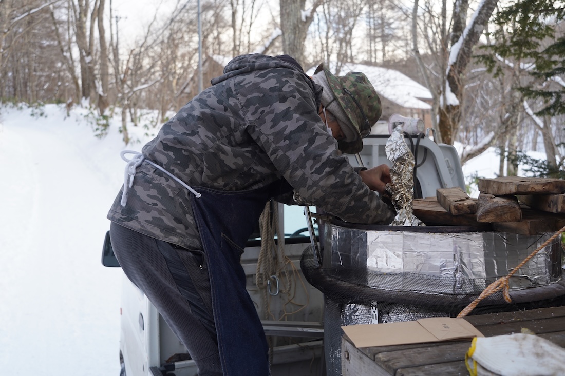 ちょうどタイミングよく石焼き芋の業者さんが通りかかり。