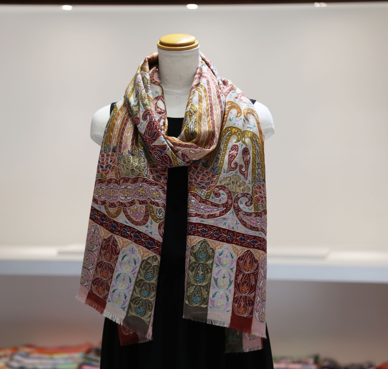 歴史と伝統を守りながら、膨大な時間をかけて作り込まれたストール。