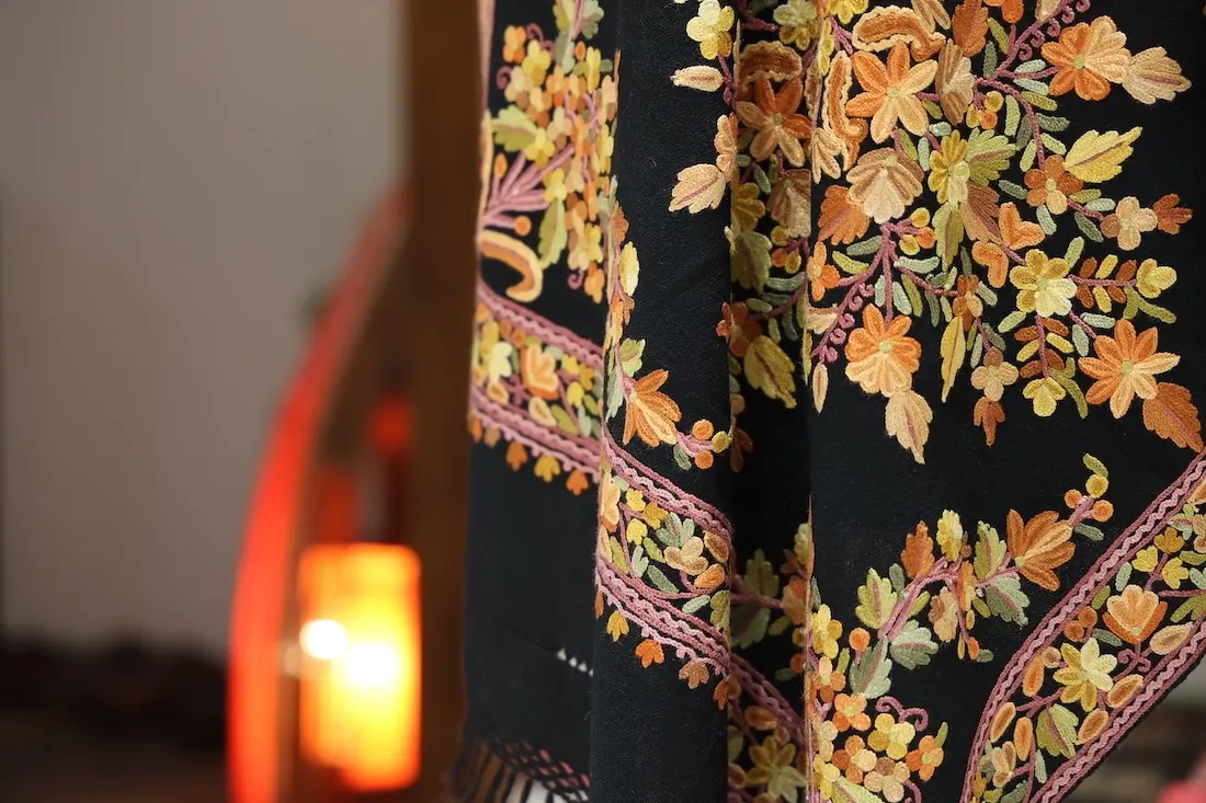 今日は、先日送り出したアーリ手刺繍ストールのご紹介です。