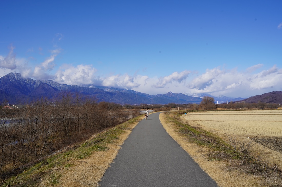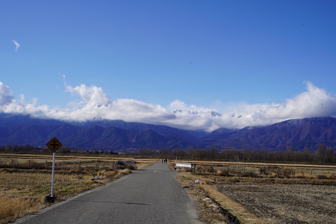 北アルプスはもちろん、このただの農道ですらずっと住んでいると愛着が湧くんですよね。