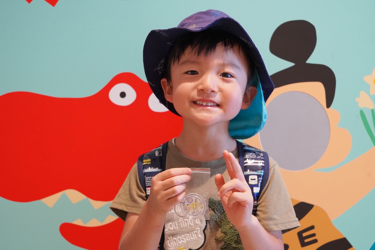 博物館内では記念の恐竜バッチを作ることができるワークショップも開催されていて、これも息子と一緒に取り組みました。