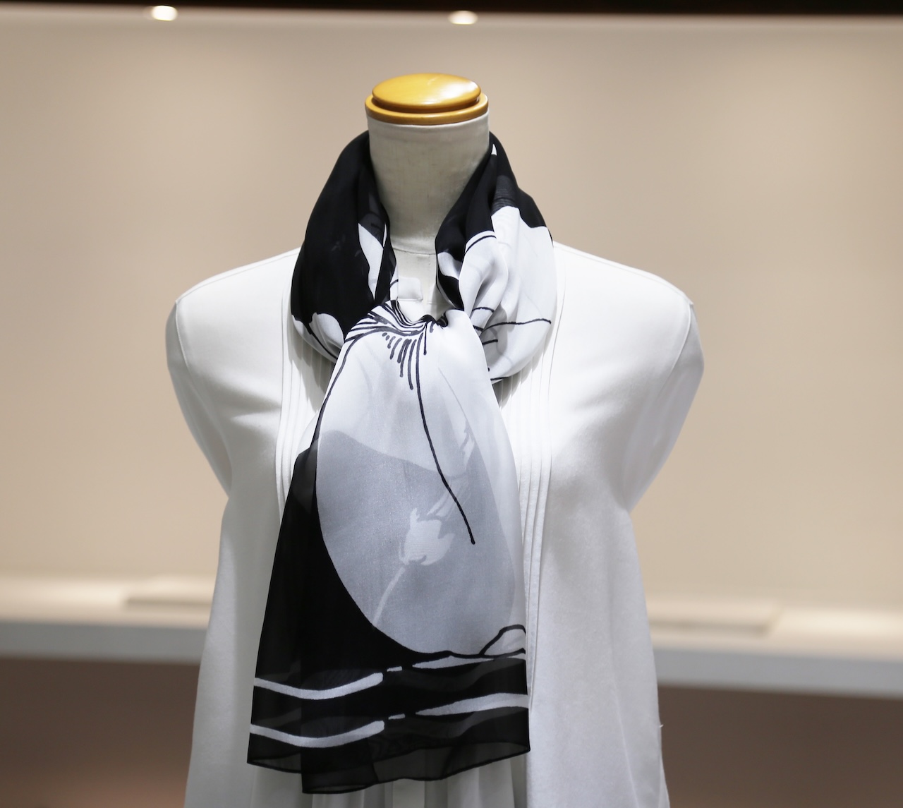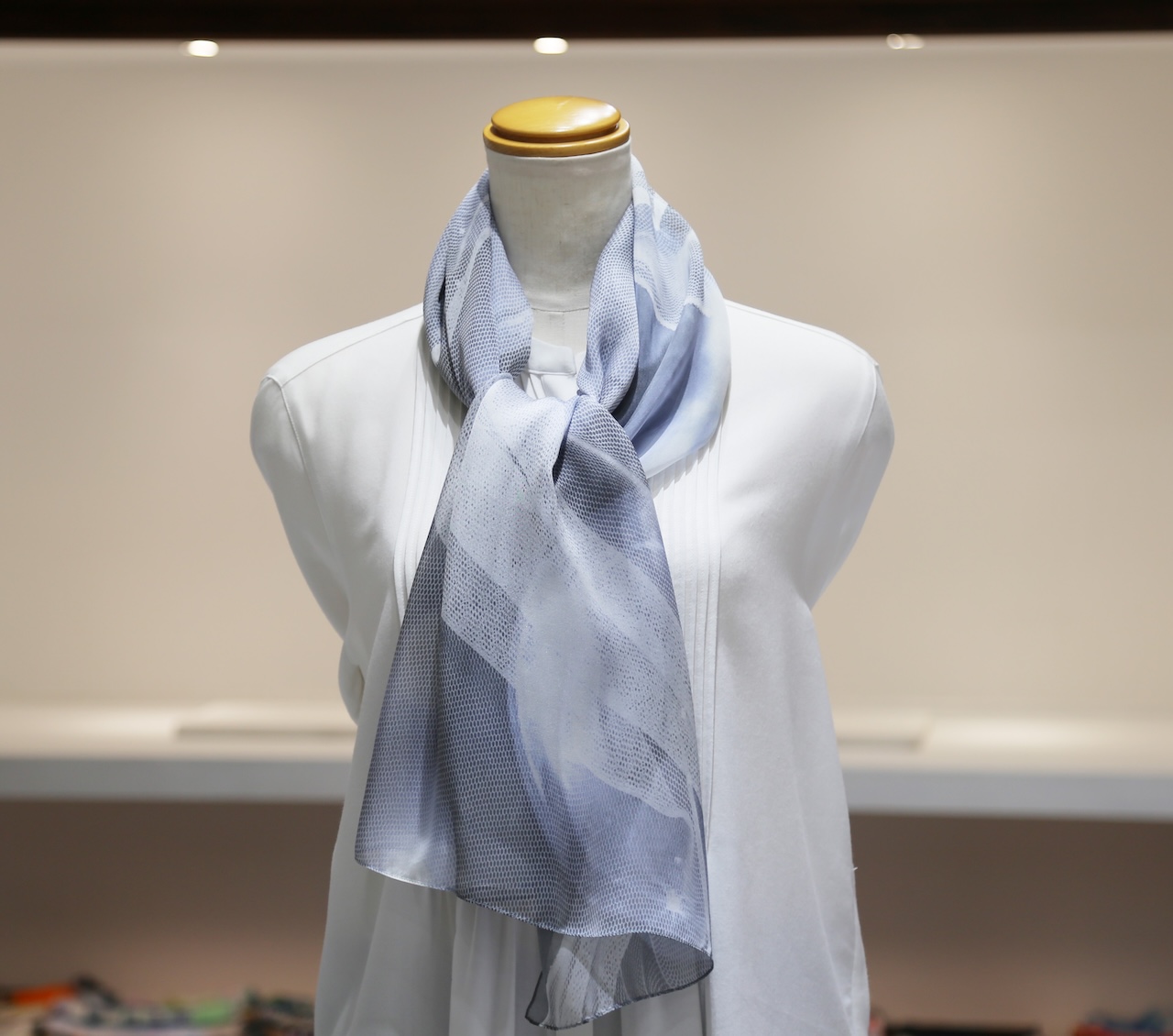 こうした大柄のタイプは巻くとどんな柄なのかはわからなくなり、とてもモダンな印象になります。
