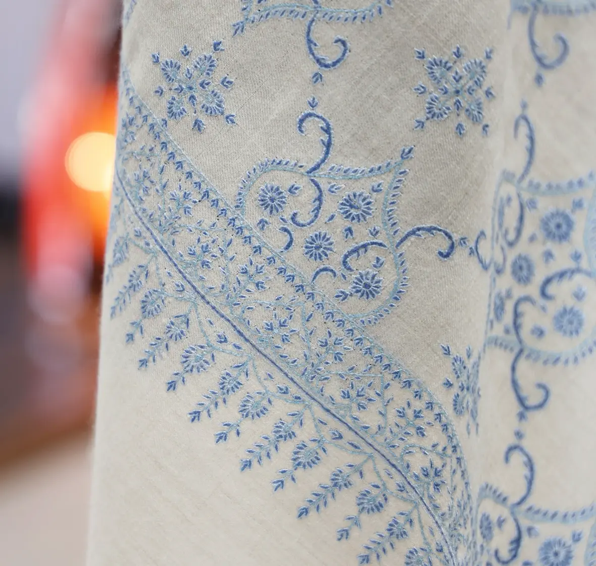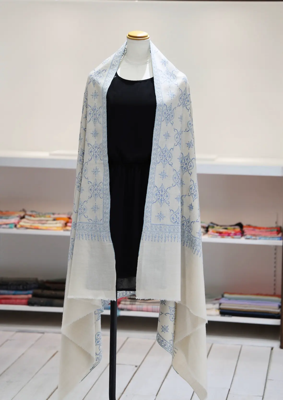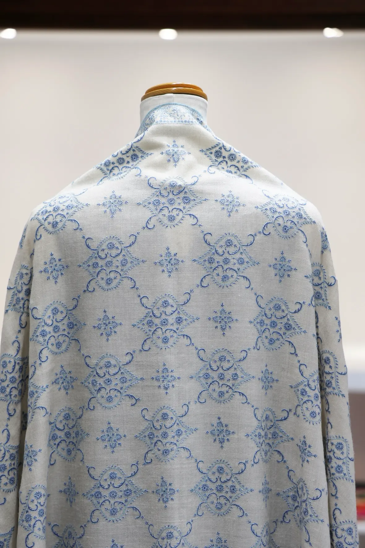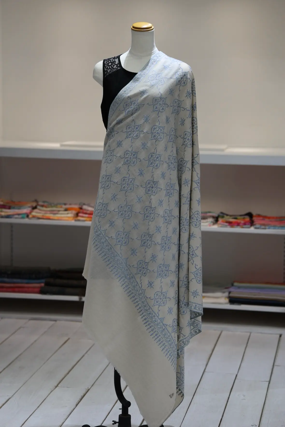 多色使いの手刺繍ストールも素晴らしいですが、あえて色数を抑えた引き算のデザインもとても上品です。