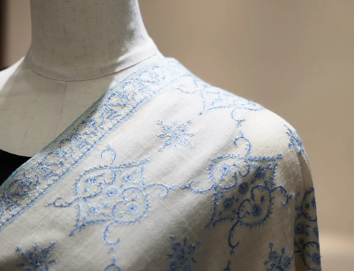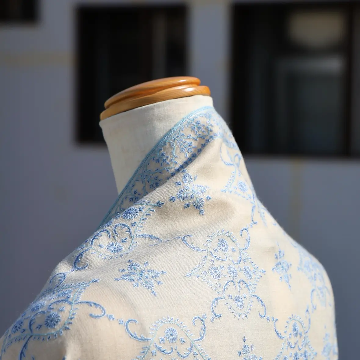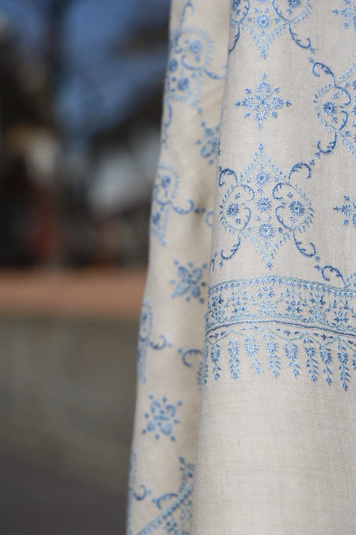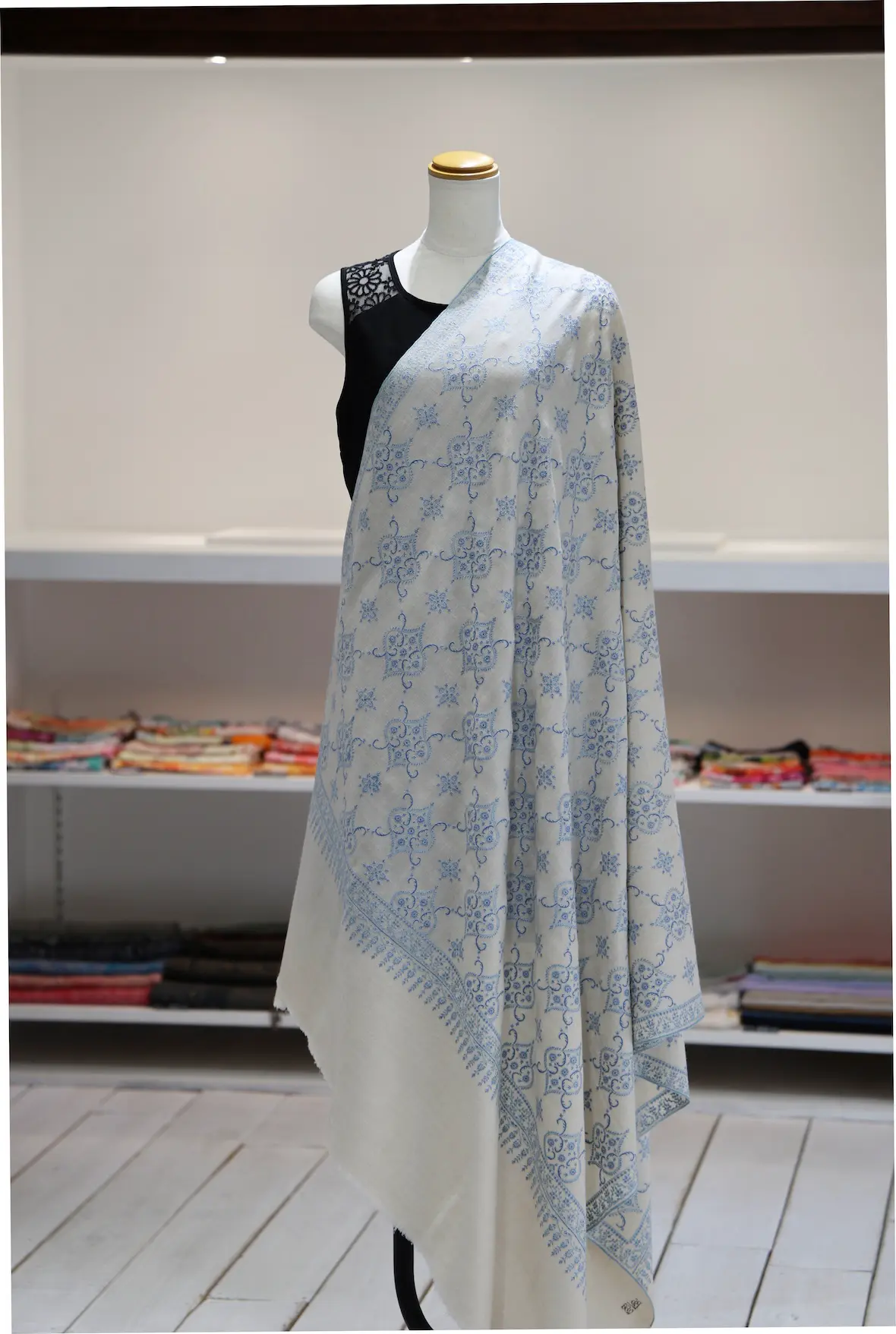 多色使いの手刺繍ストールも素晴らしいですが、あえて色数を抑えた引き算のデザインもとても上品です。