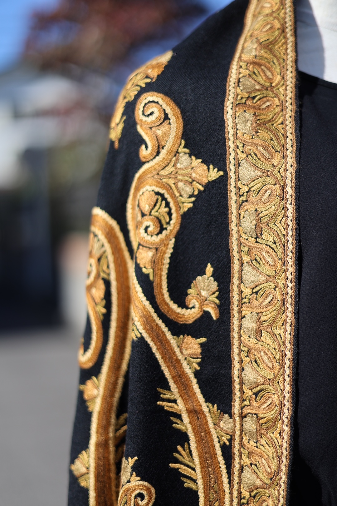 深みのあるベースカラーに煌びやかな手刺繍が輝きます。