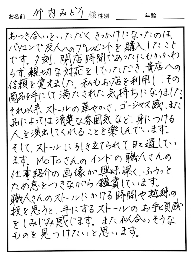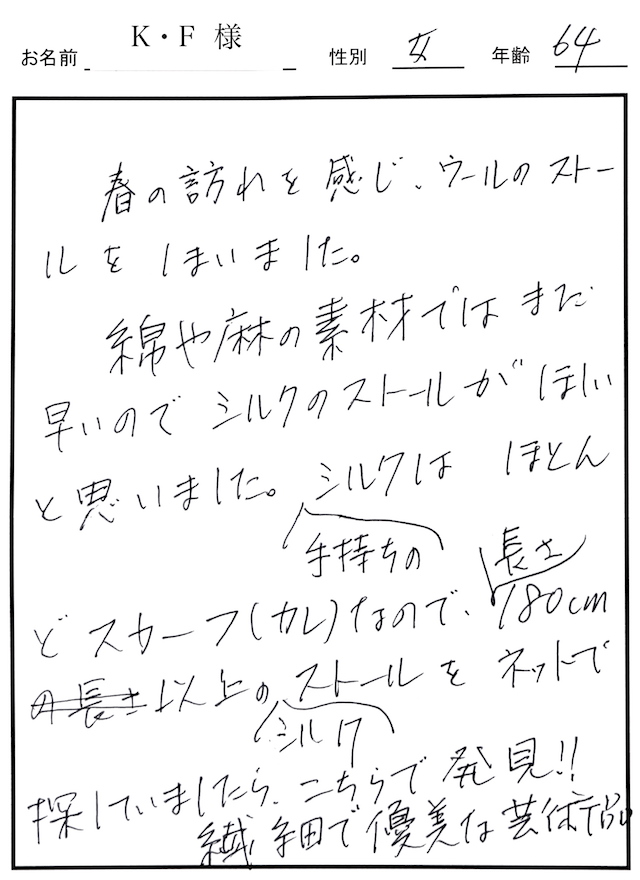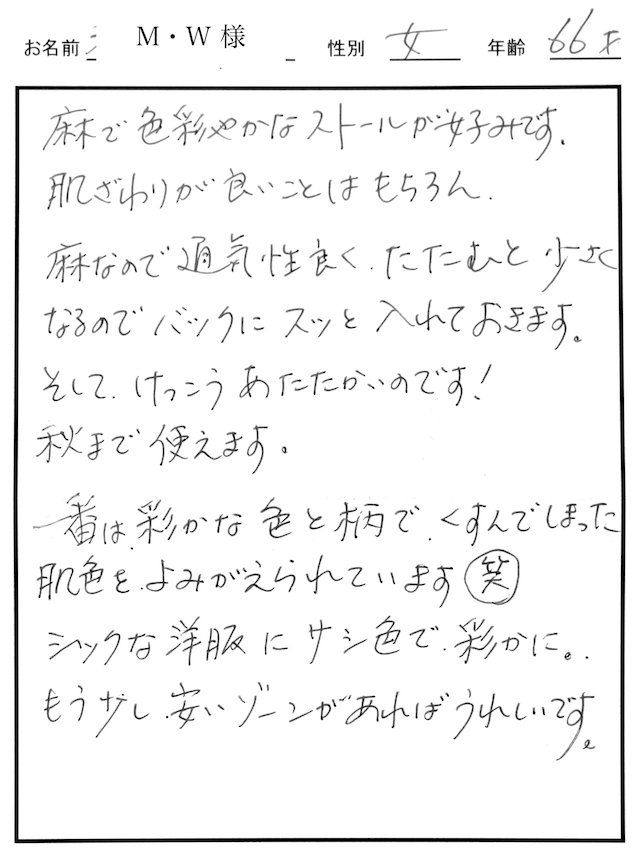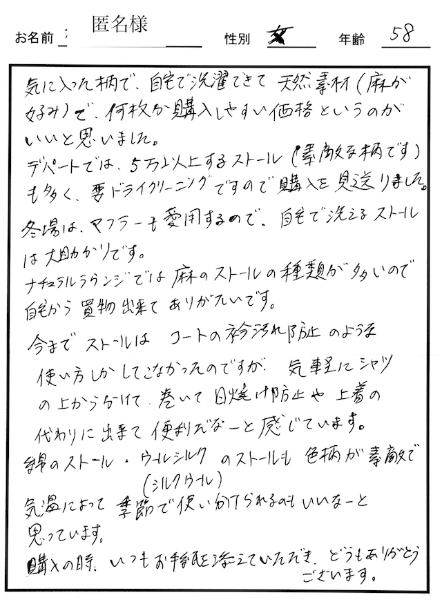 職人さんのストールに時間や熟練の技を思うと、手にするストールのお手頃感をしみじみ感じます。