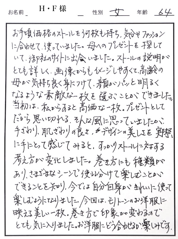 購入したものは「ストール」だけではなく、「愛」