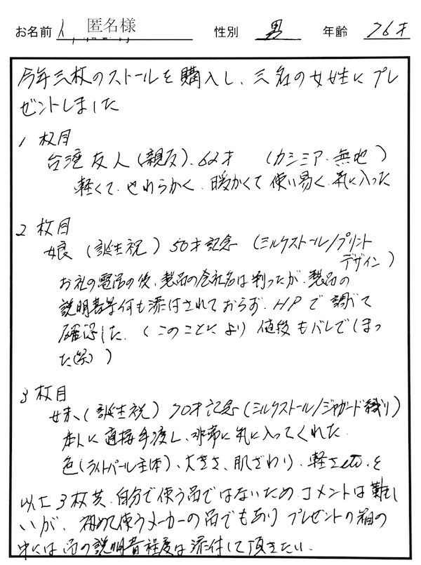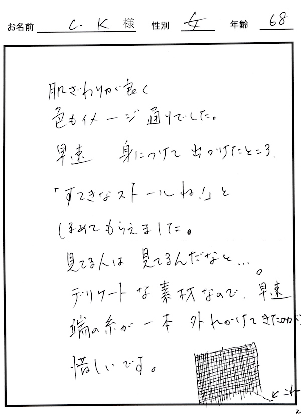 御社のストールを巻くつんく♂さんに憧れて使うようになりました。