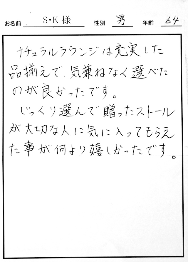 家族や親しい人へのプレゼントは全てこちらのストールを贈っていて、とても喜ばれます。