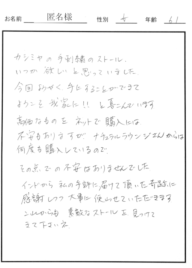 レビューの商品:カシミヤストール:手織り/手刺繍