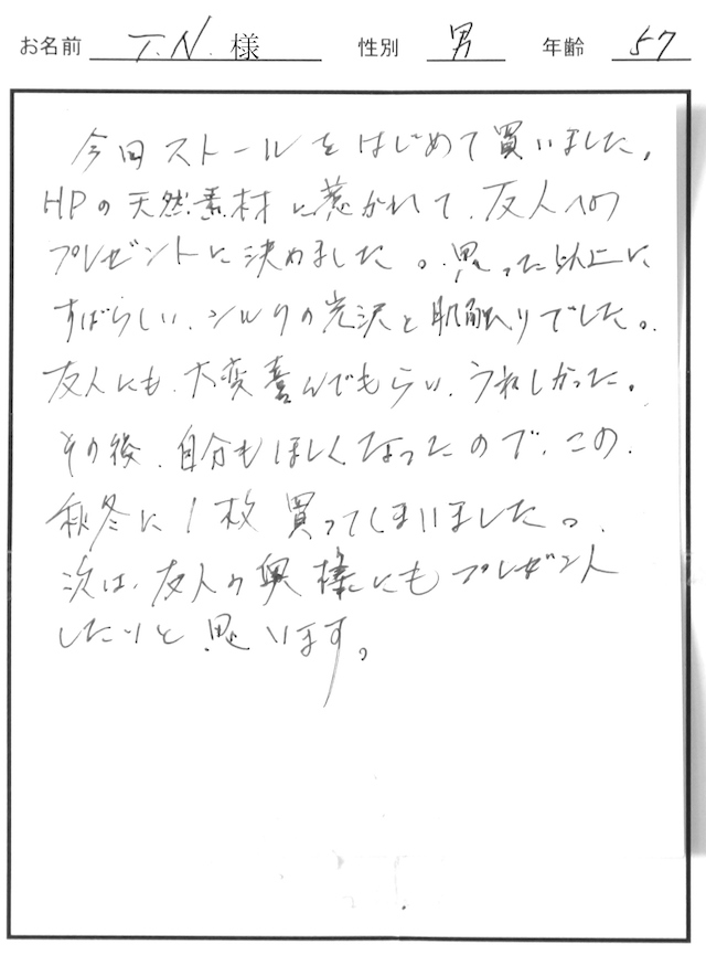 思った以上にすばらしいシルクの光沢と肌触りでした。
