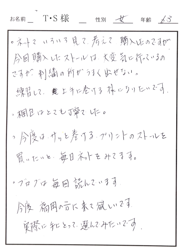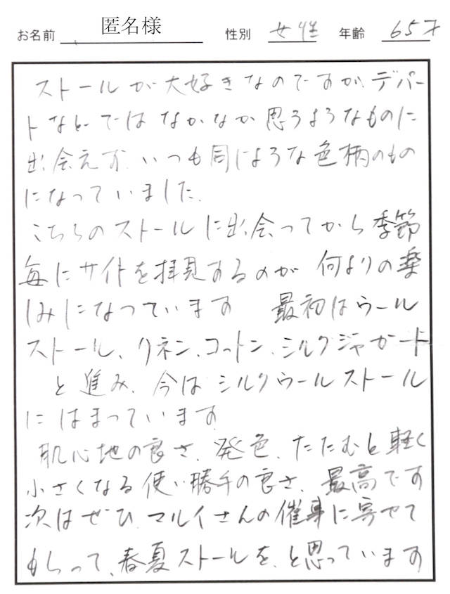 御社のストールと出合ってからは他の品は休眠状態です。