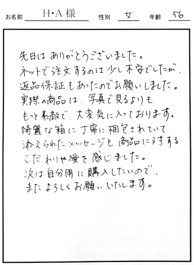 実際の商品は写真で見るよりもっと素敵で大変気に入っています。