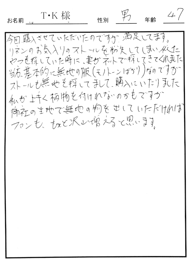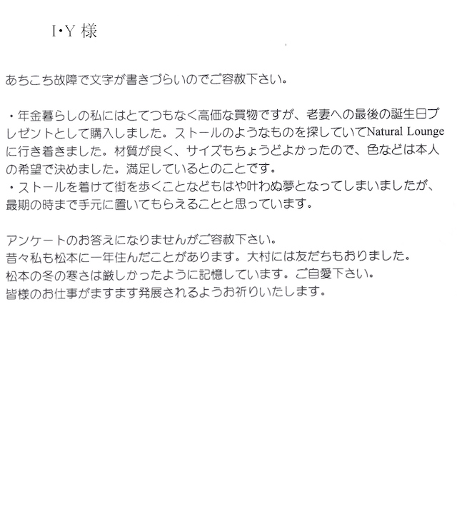本物の素材で勝負しているナチュラルラウンジさんのストールが大好きです。